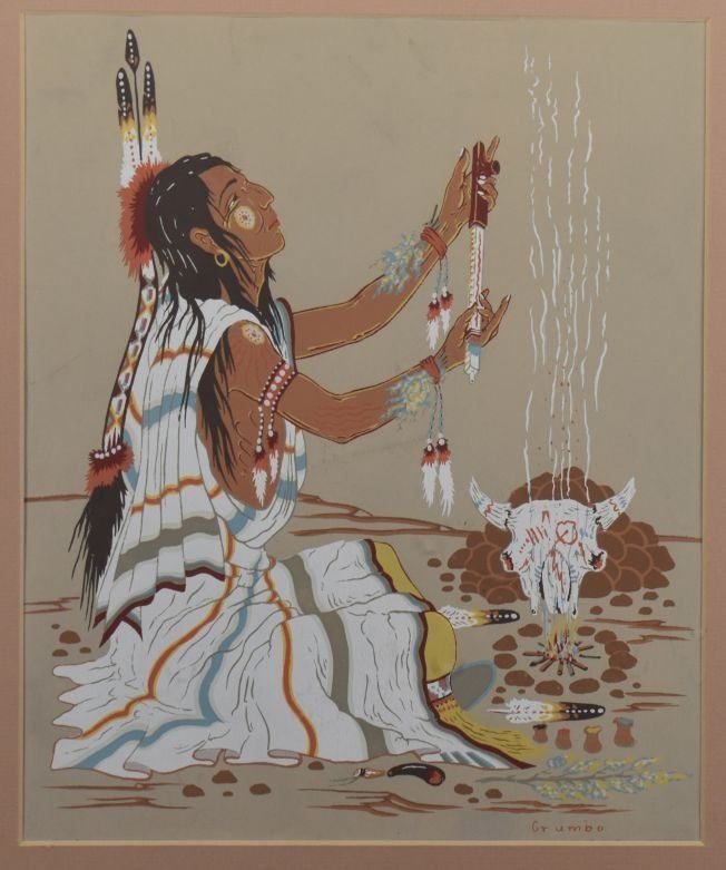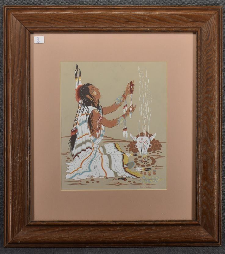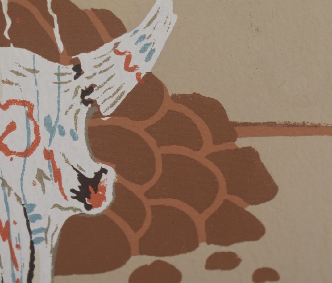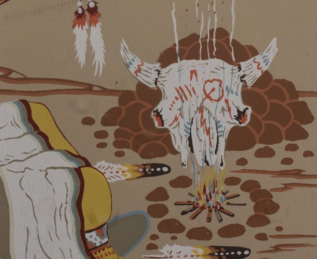 vintage Pottawatomie, silk screen on paper by Woody Crumbo 11.5" x 9.5" matted and framed to 21.5" x 19.5"