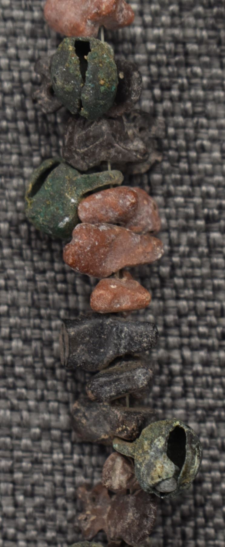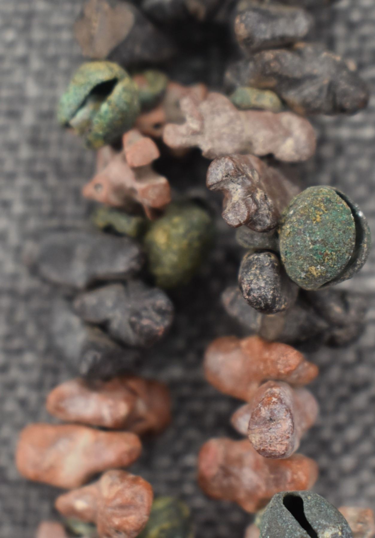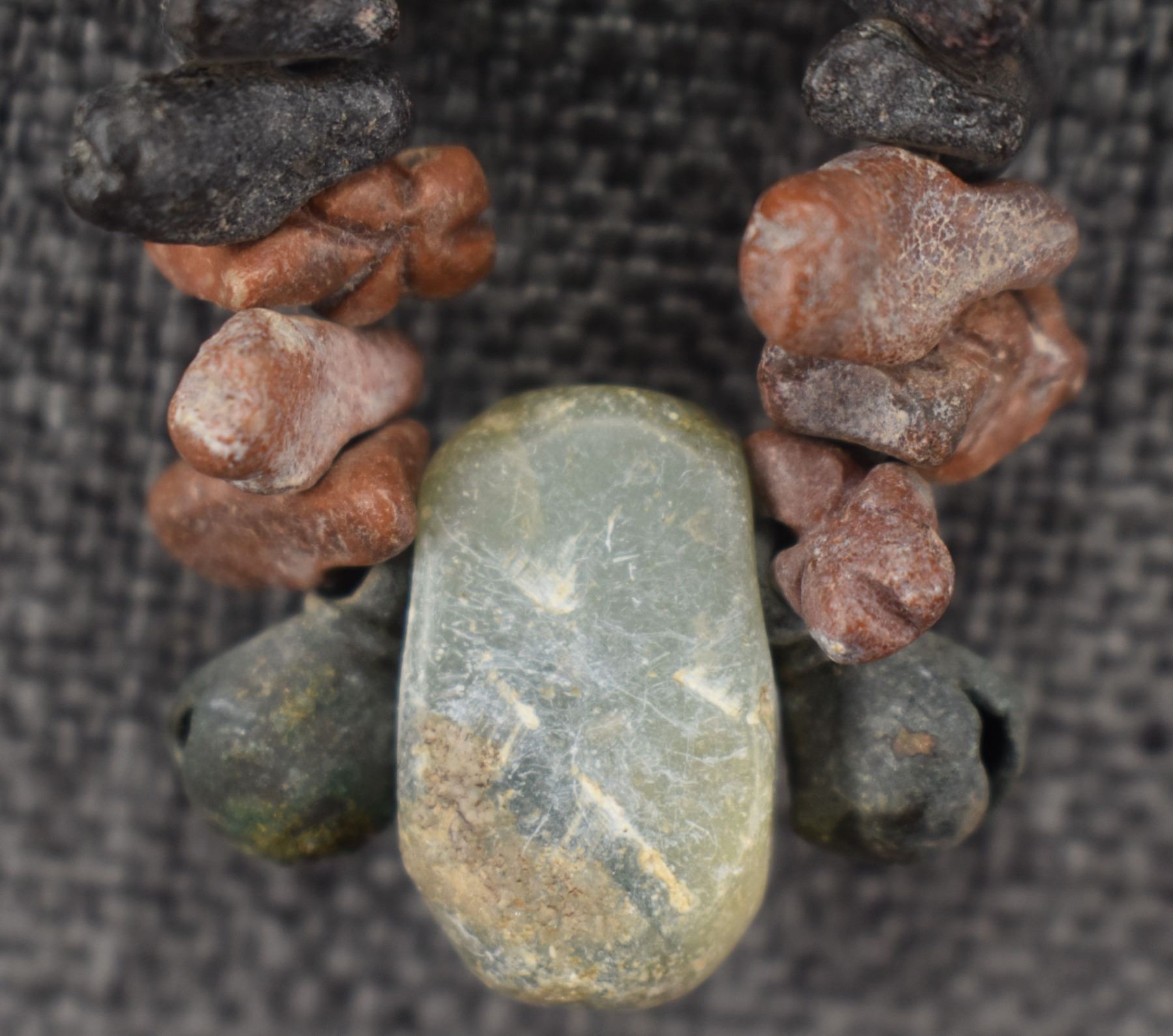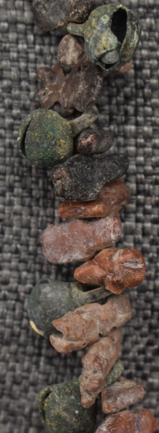 Pre historic. Carved stone fetish and copper bell necklace. 20'' long