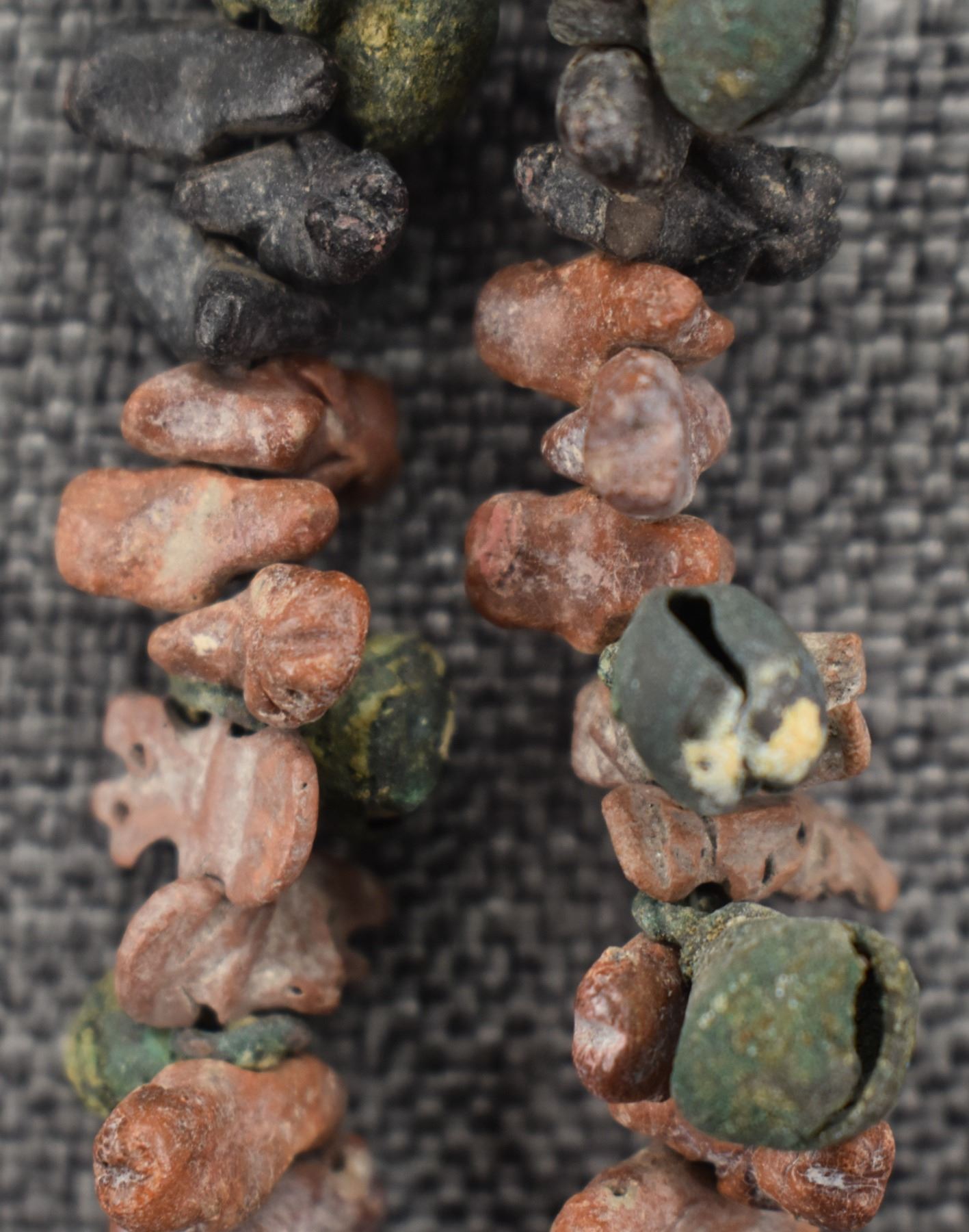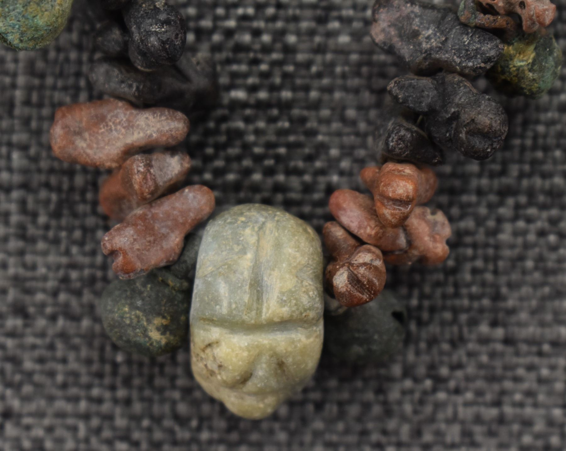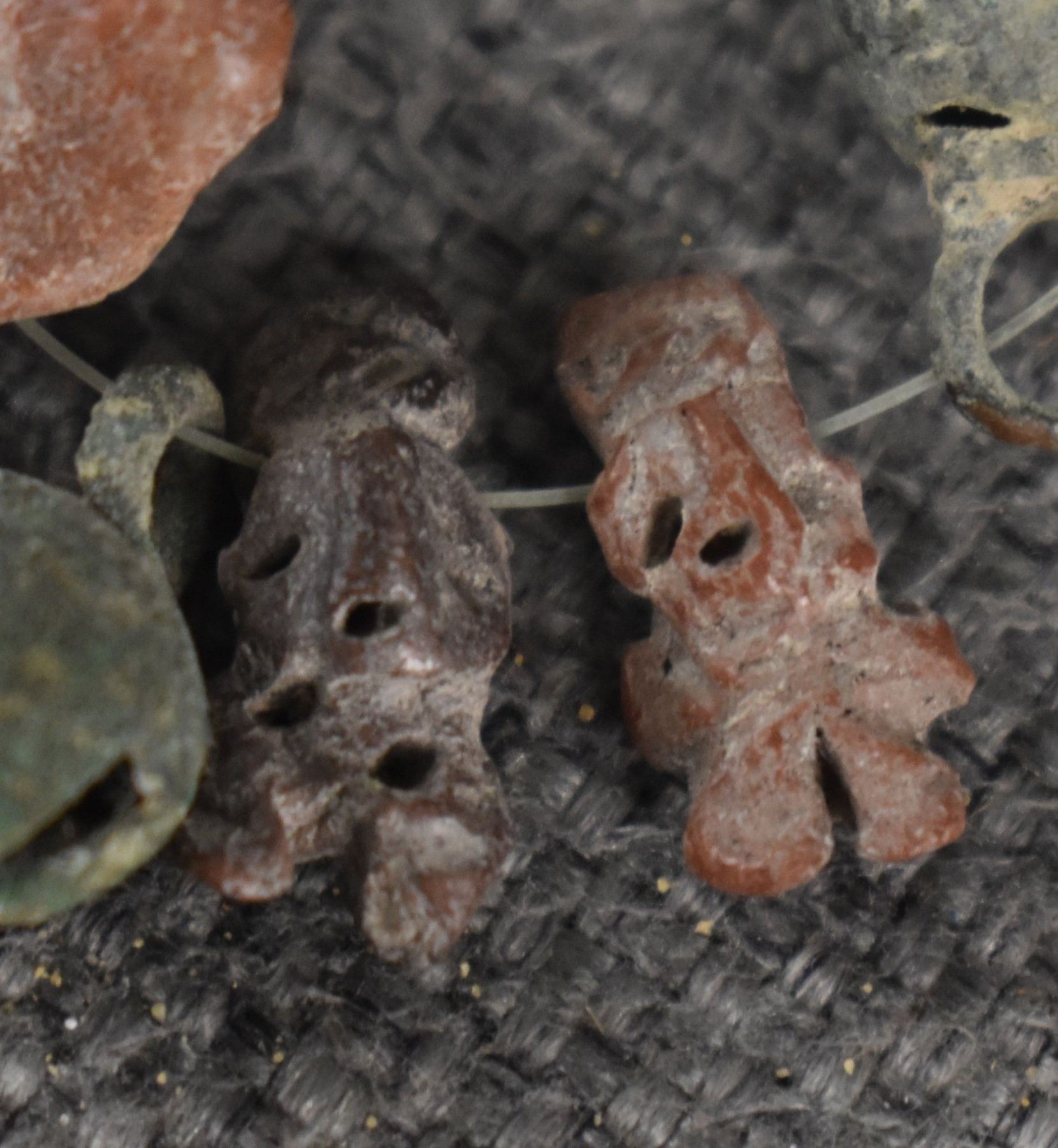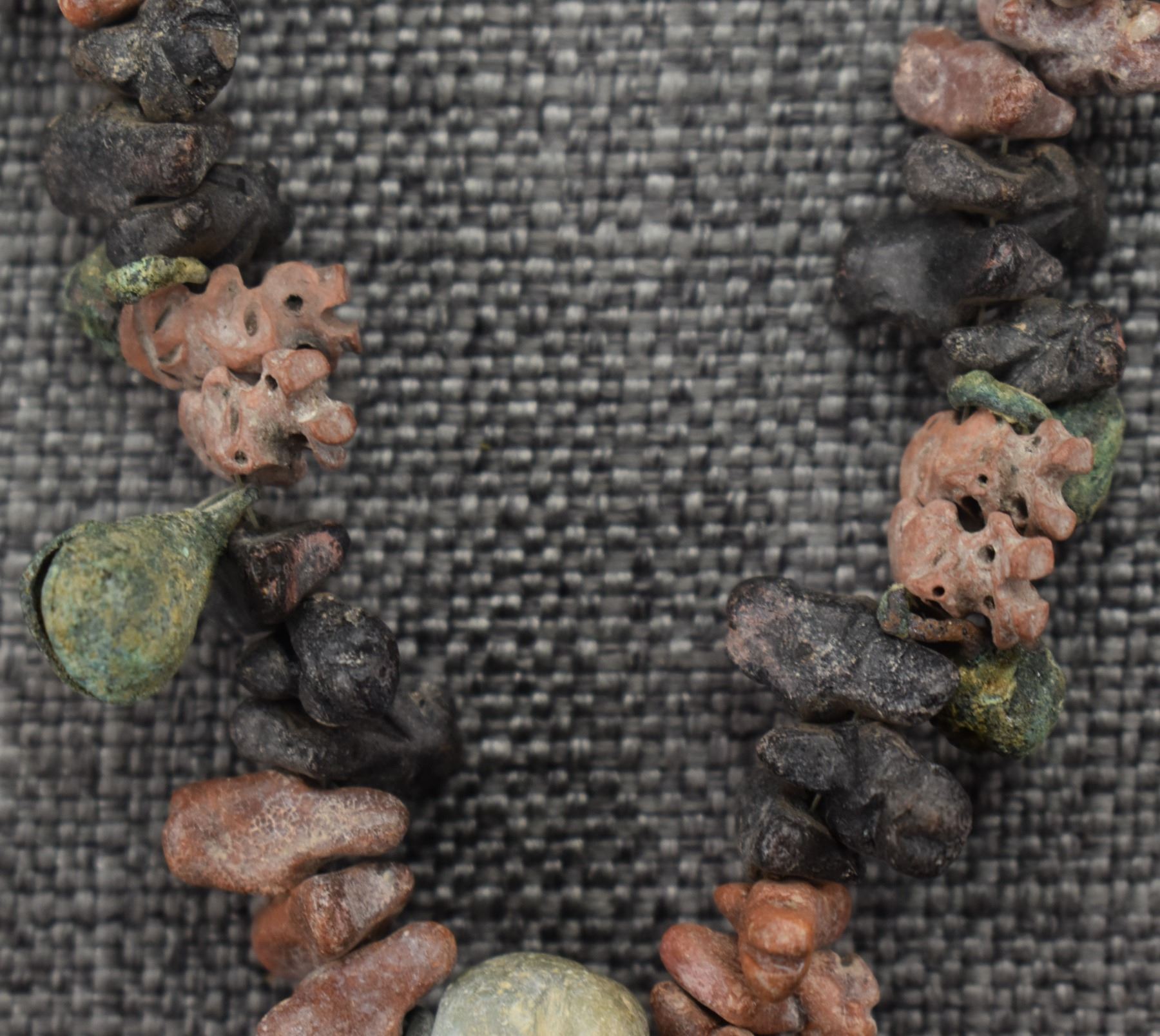 Pre historic. Carved stone fetish and copper bell necklace. 20'' long