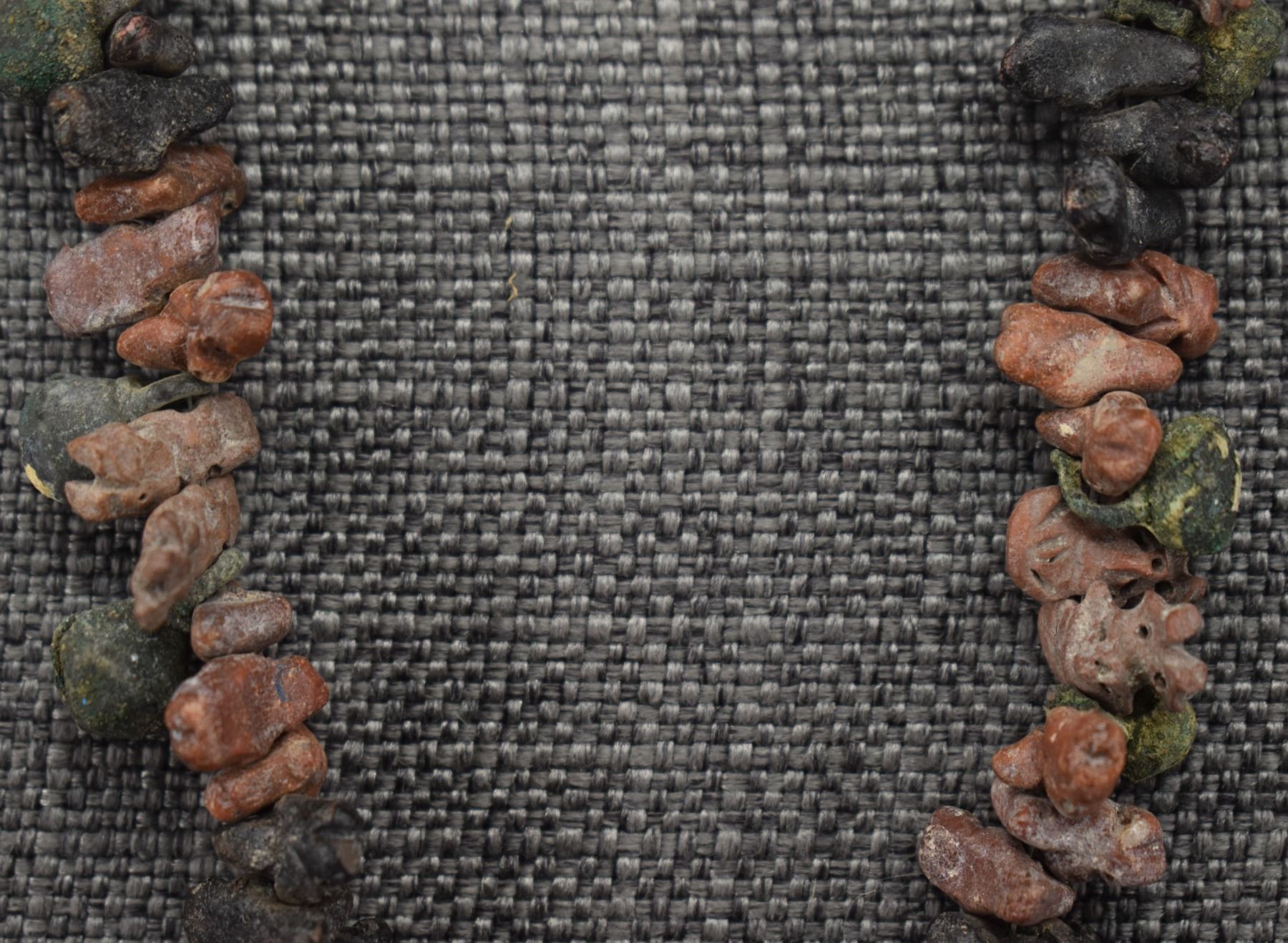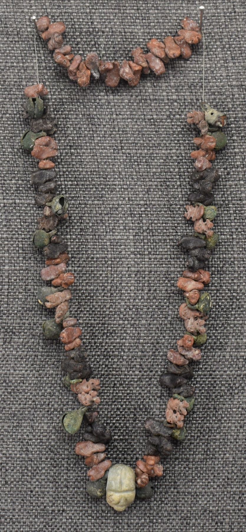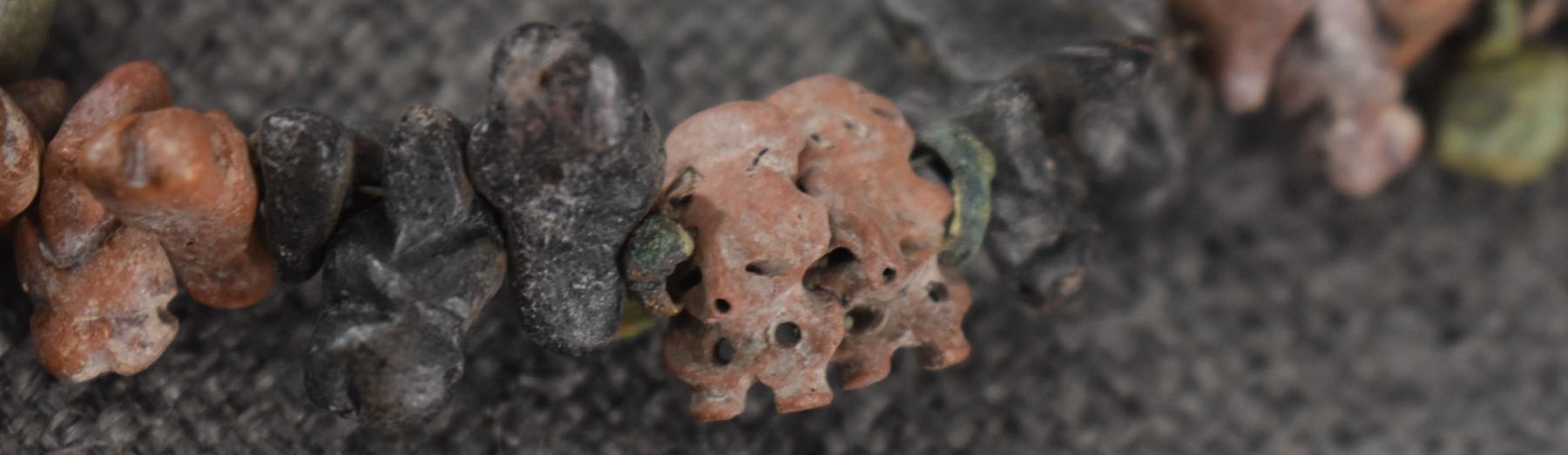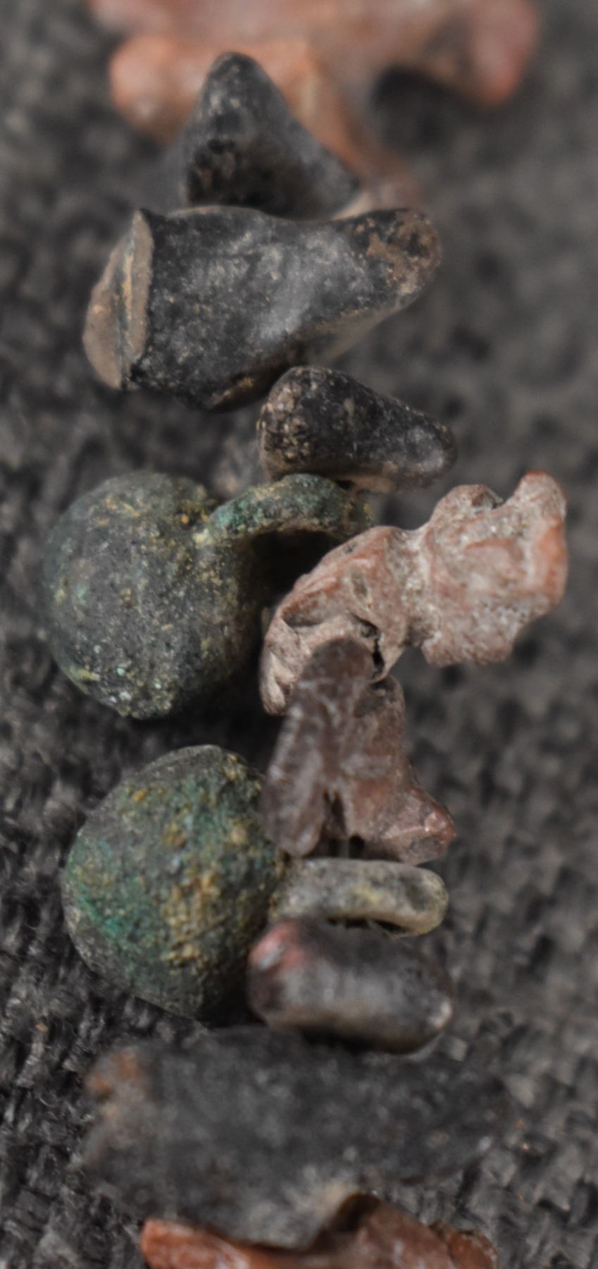 Pre historic. Carved stone fetish and copper bell necklace. 20'' long