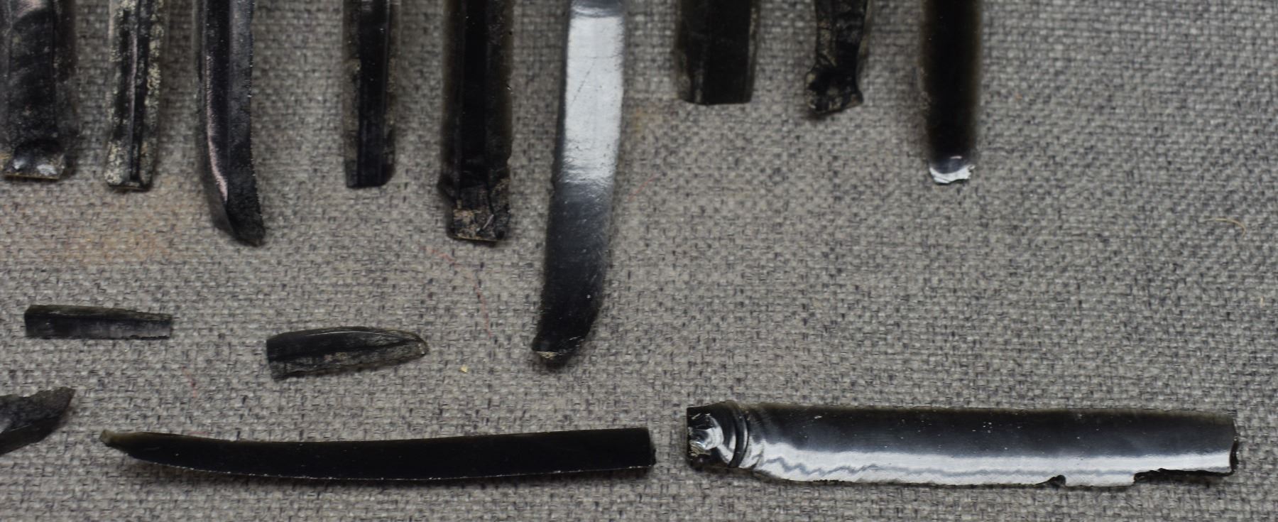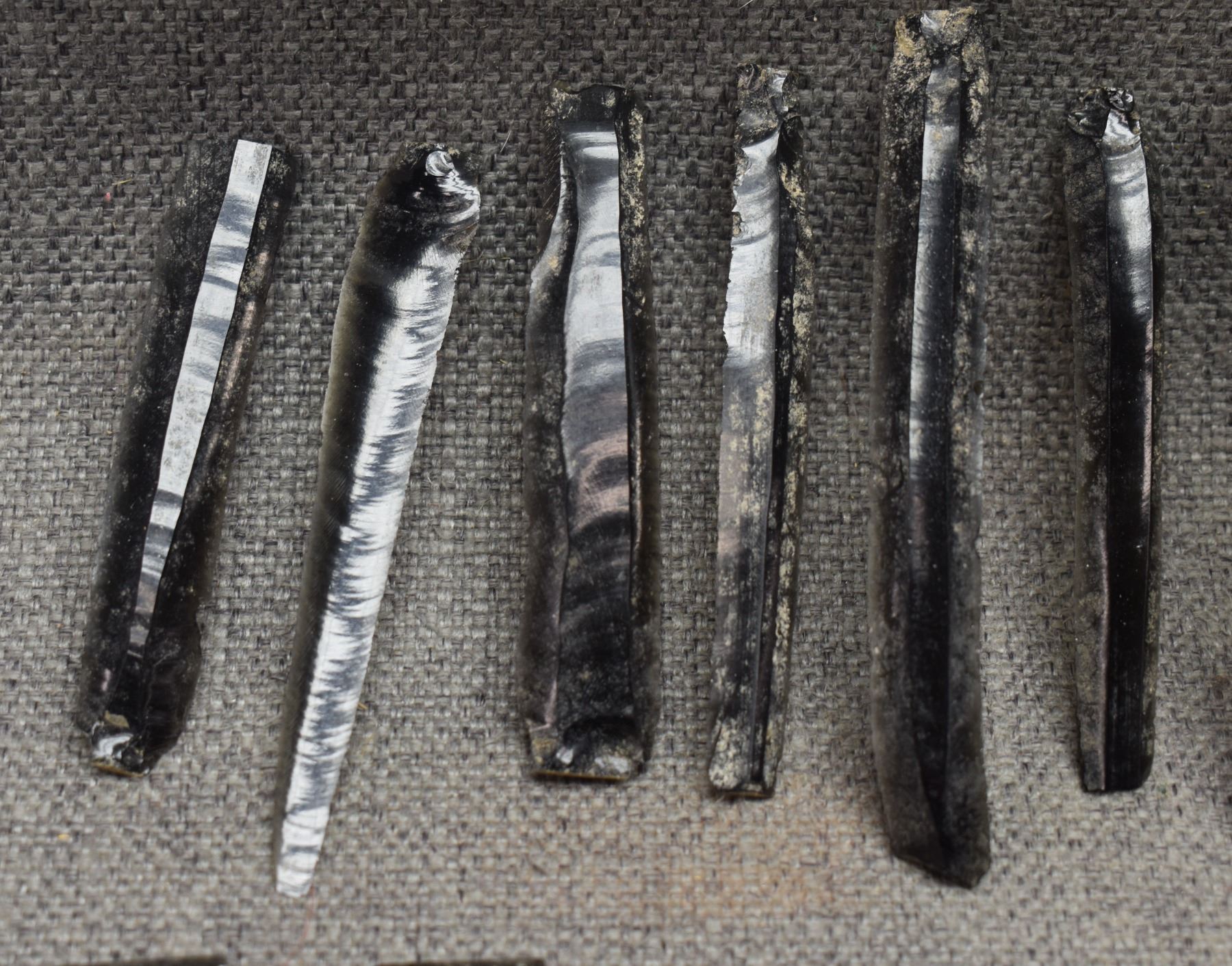 prehistoric pre-Columbian, hand knapped obsidian blades longest 4.5" long