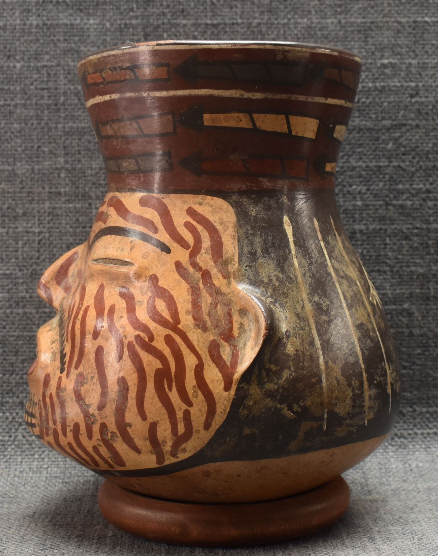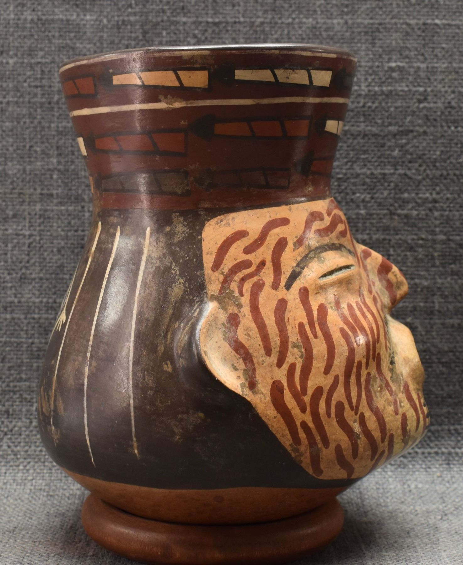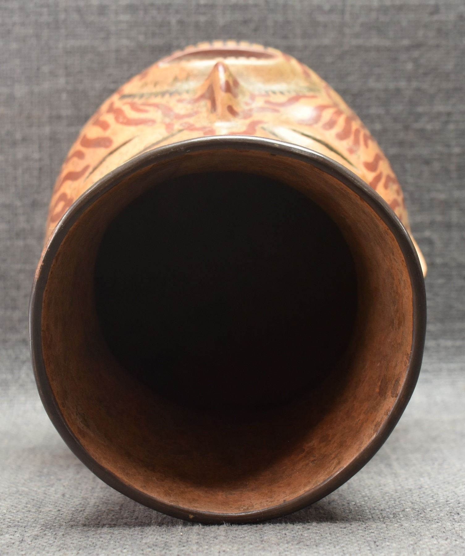 prehistoric Peruvian, hand made with polychrome painted design 6.75" x 5" as found condition