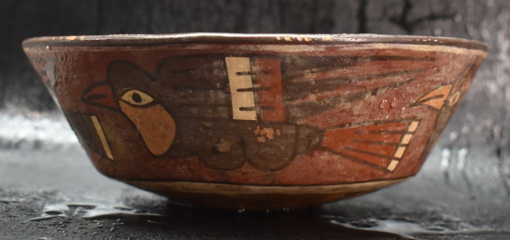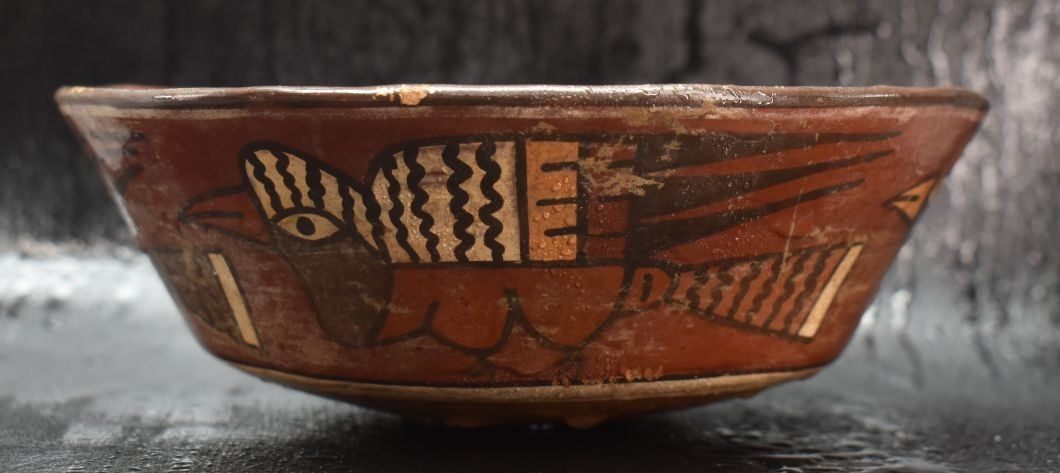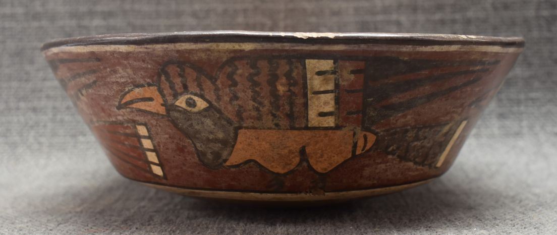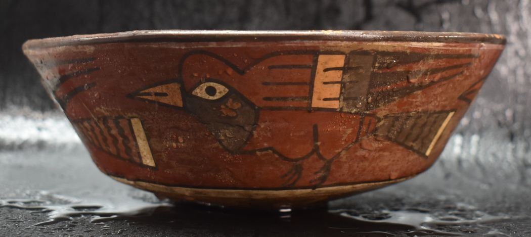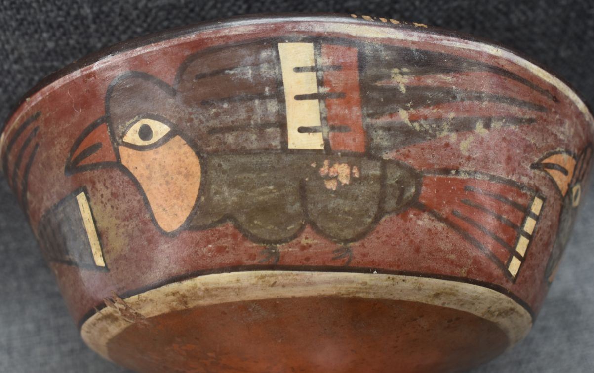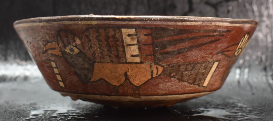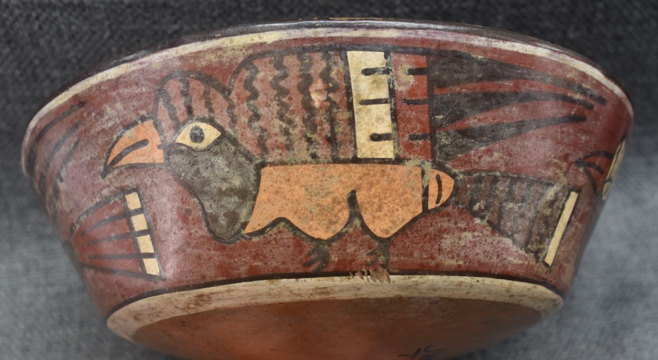 prehistoric pre-Columbian, hand made with polychrome painted bird design 2.25" x 6.75" as found condition