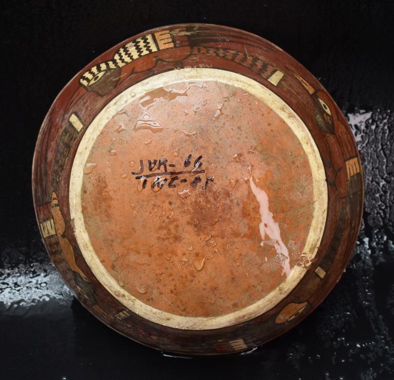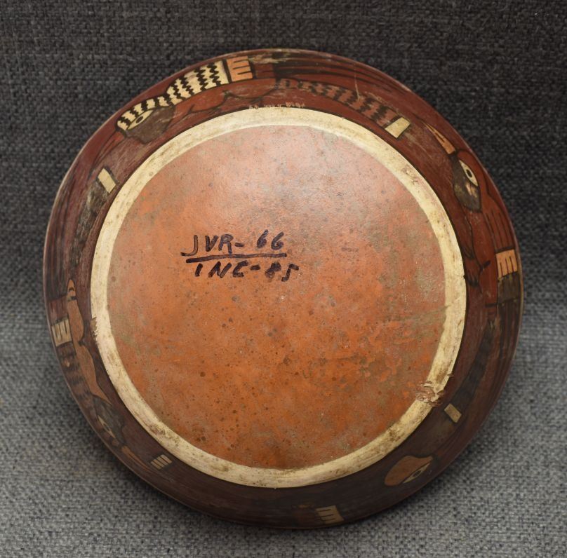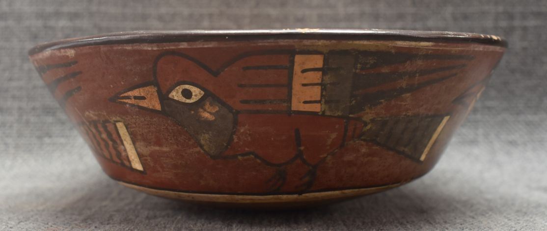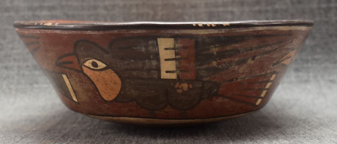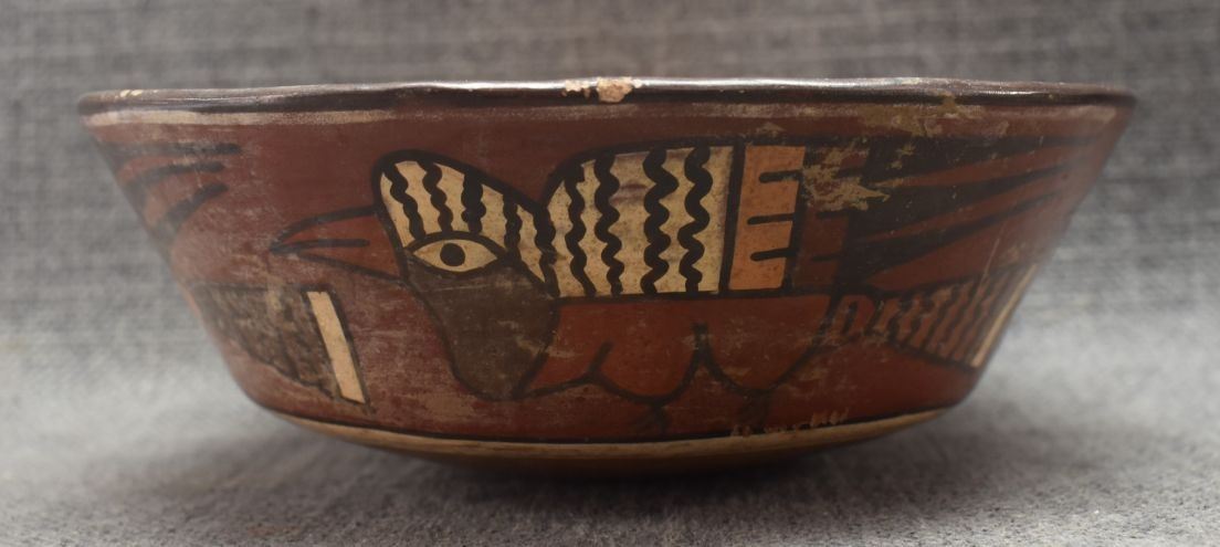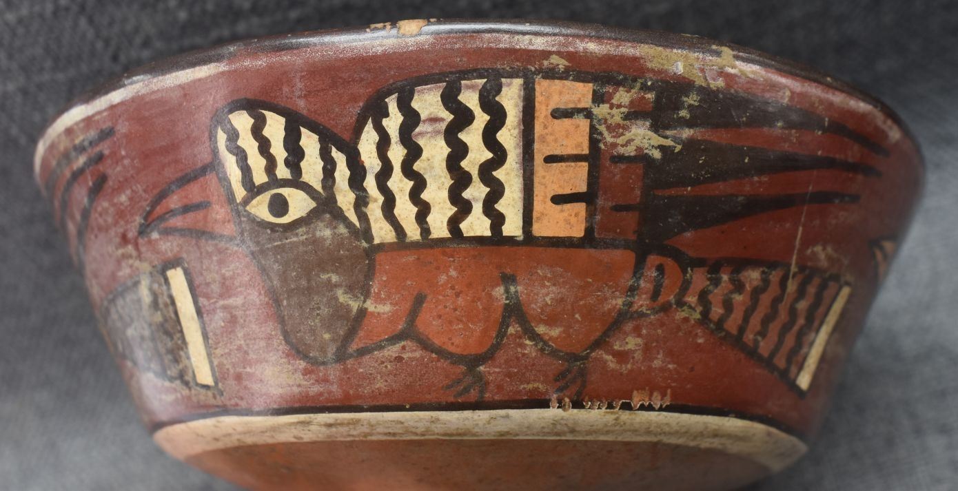prehistoric pre-Columbian, hand made with polychrome painted bird design 2.25" x 6.75" as found condition