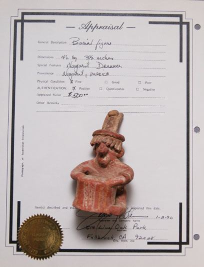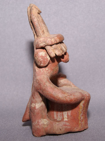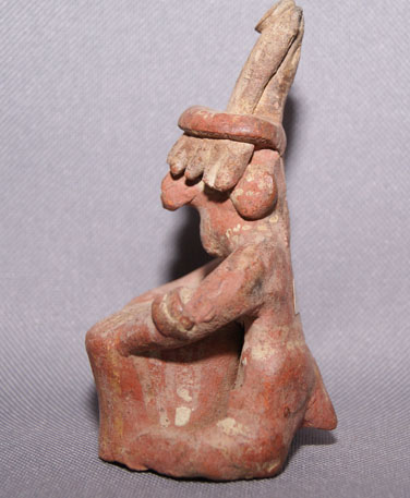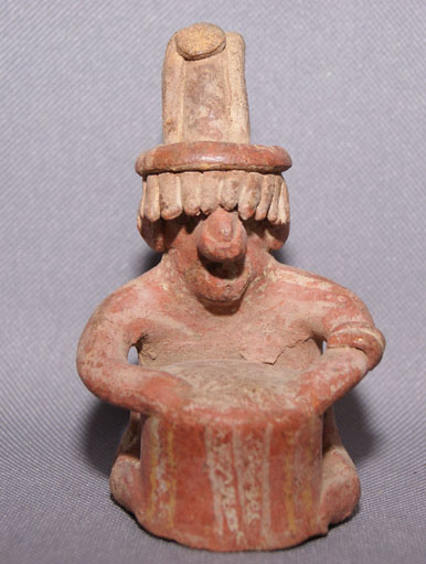prehistoric seated drummer has minor wear, 4" x 2" x 2.5"