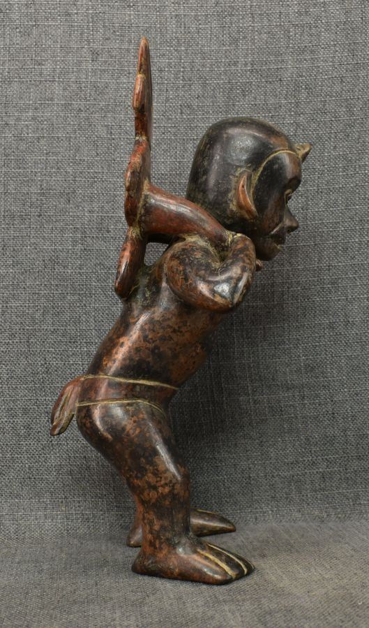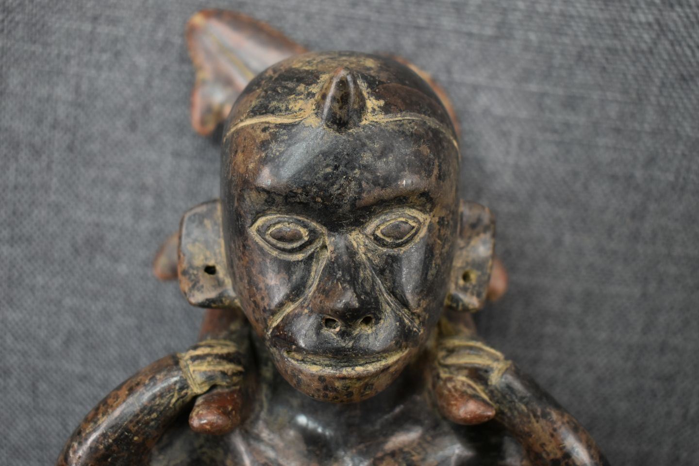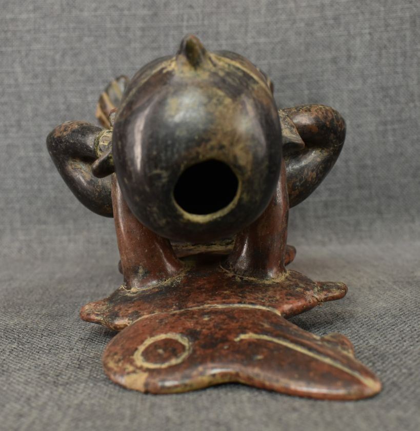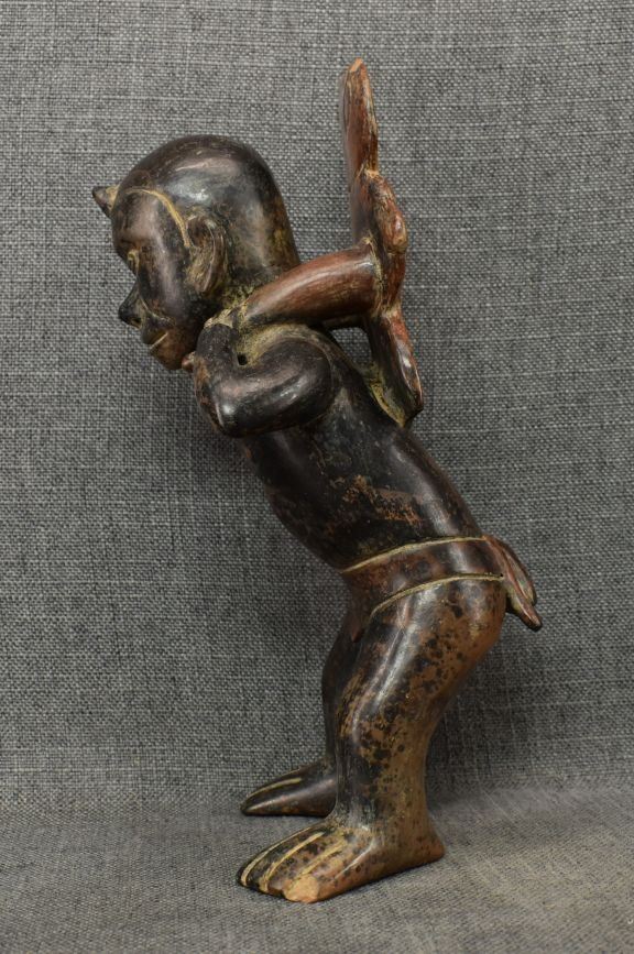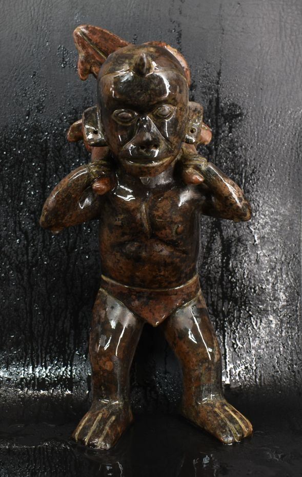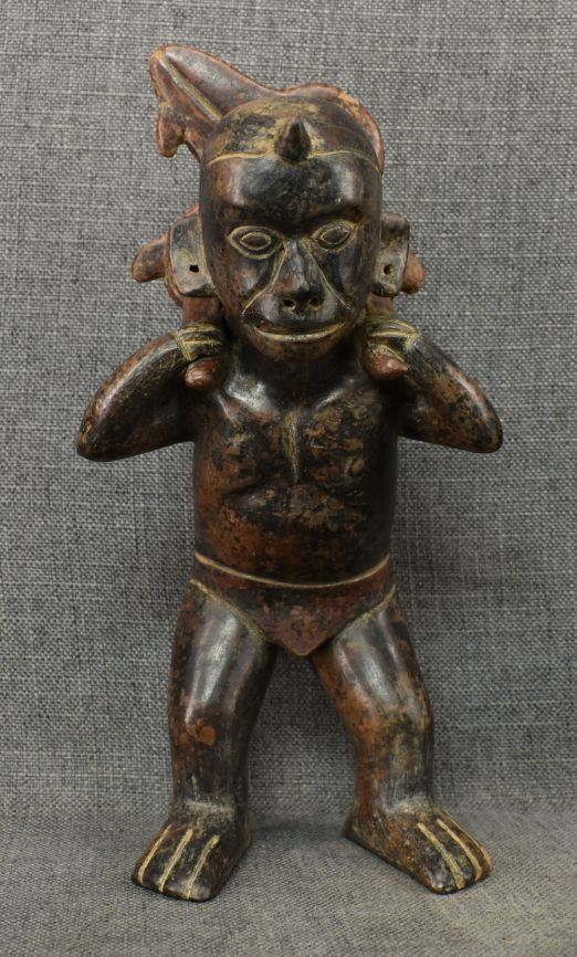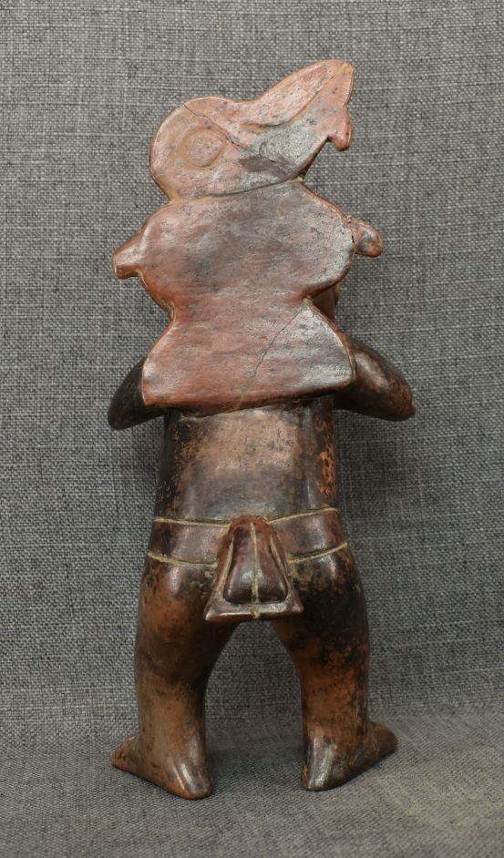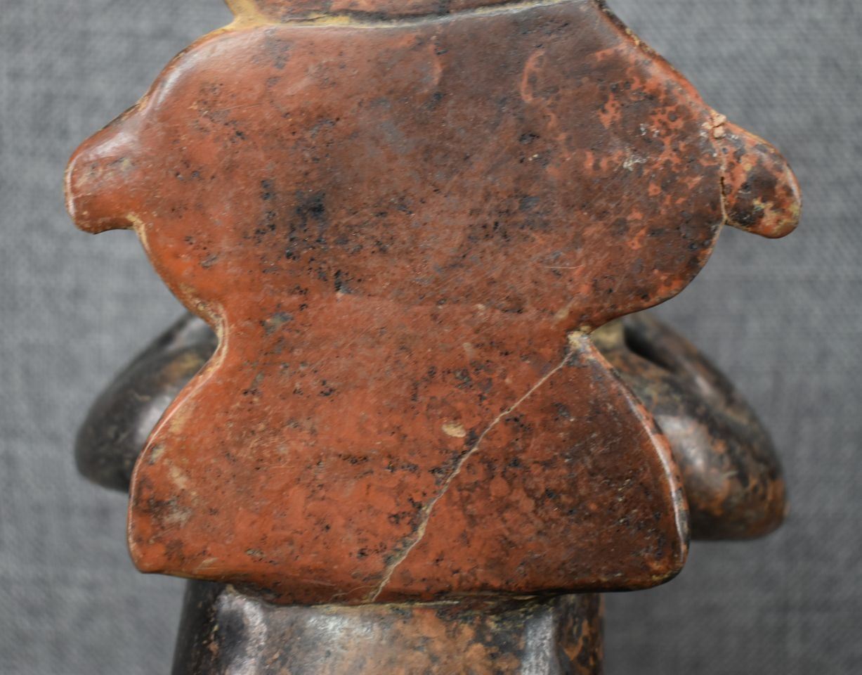 prehistoric pre-Columbian, hand made pottery figure 13.25" x 6.25" x 5" has been broken and glued