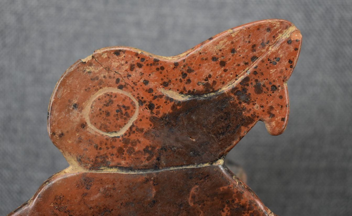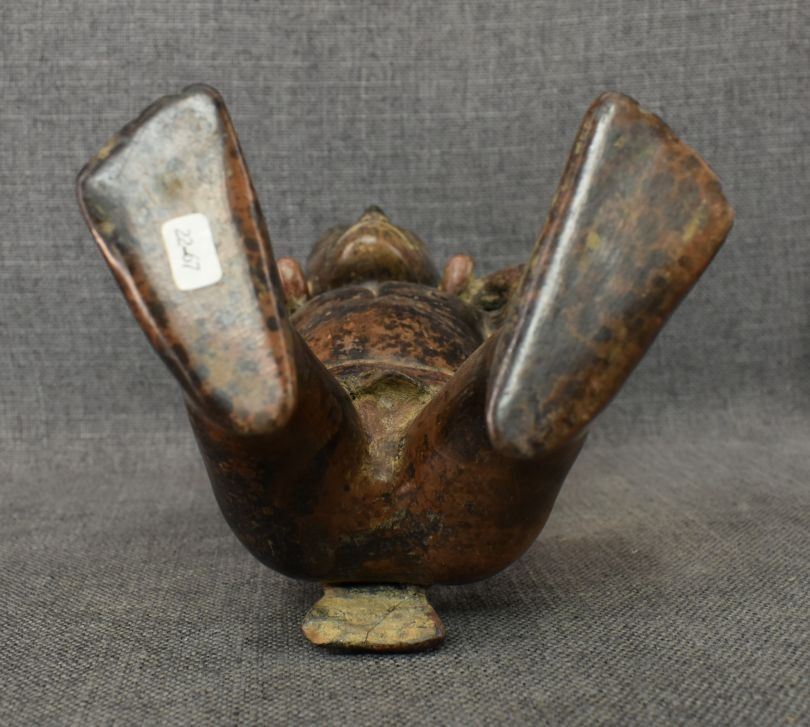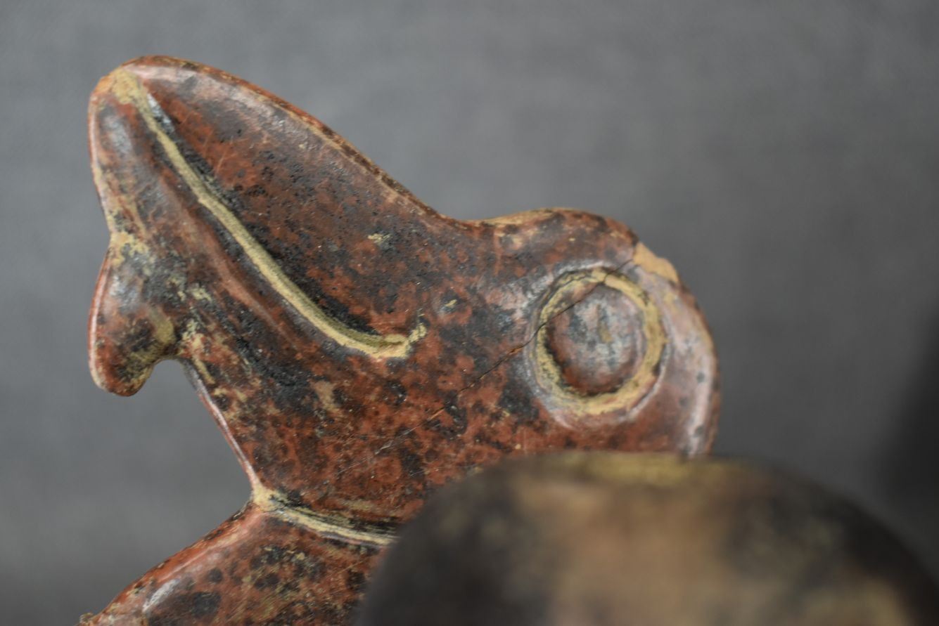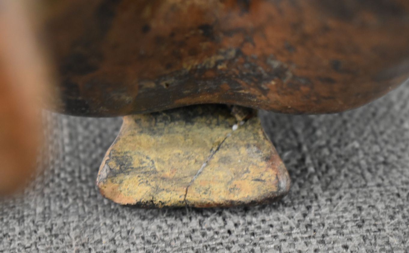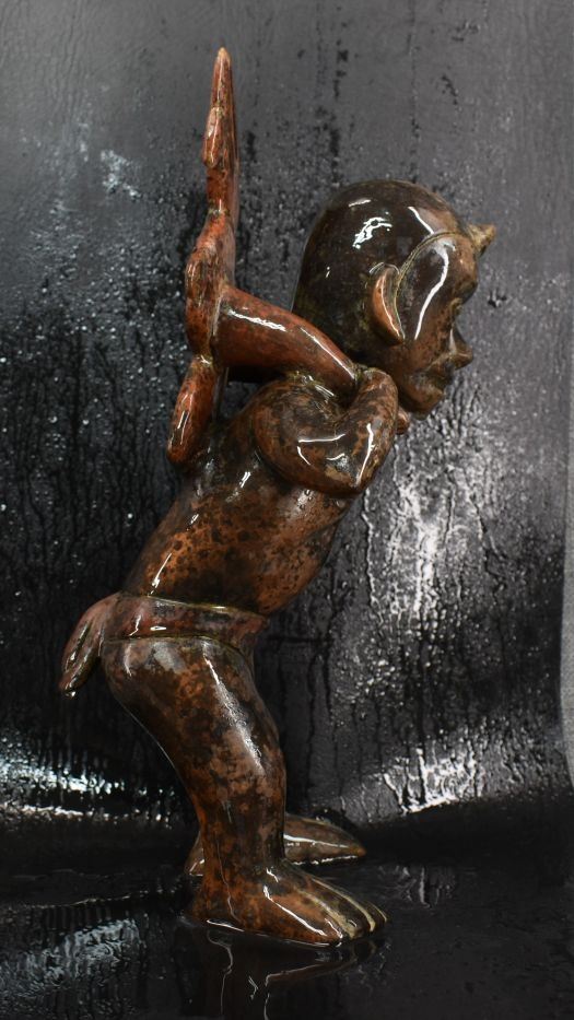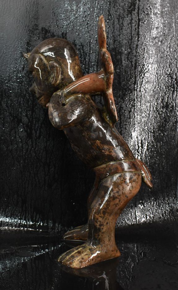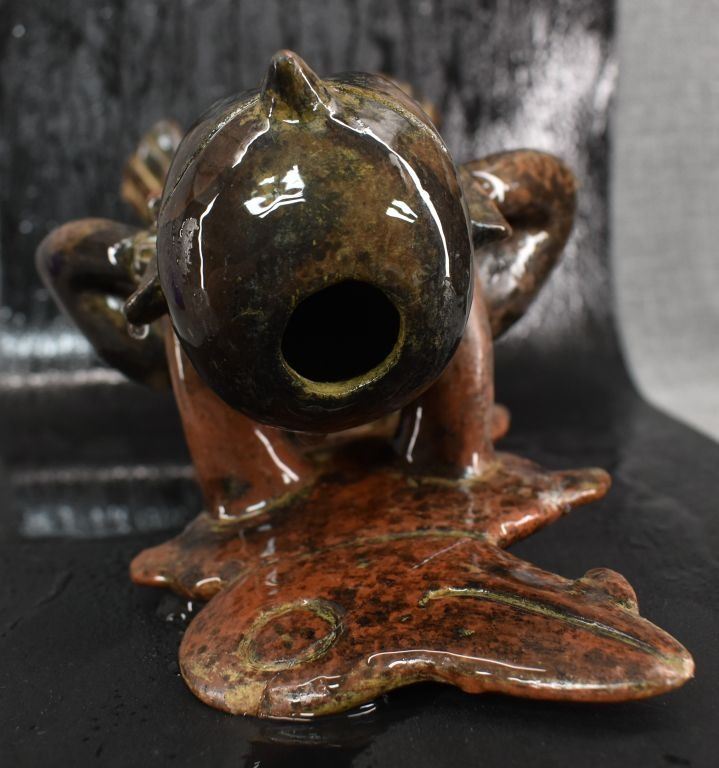 prehistoric pre-Columbian, hand made pottery figure 13.25" x 6.25" x 5" has been broken and glued