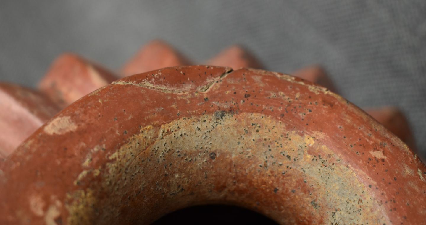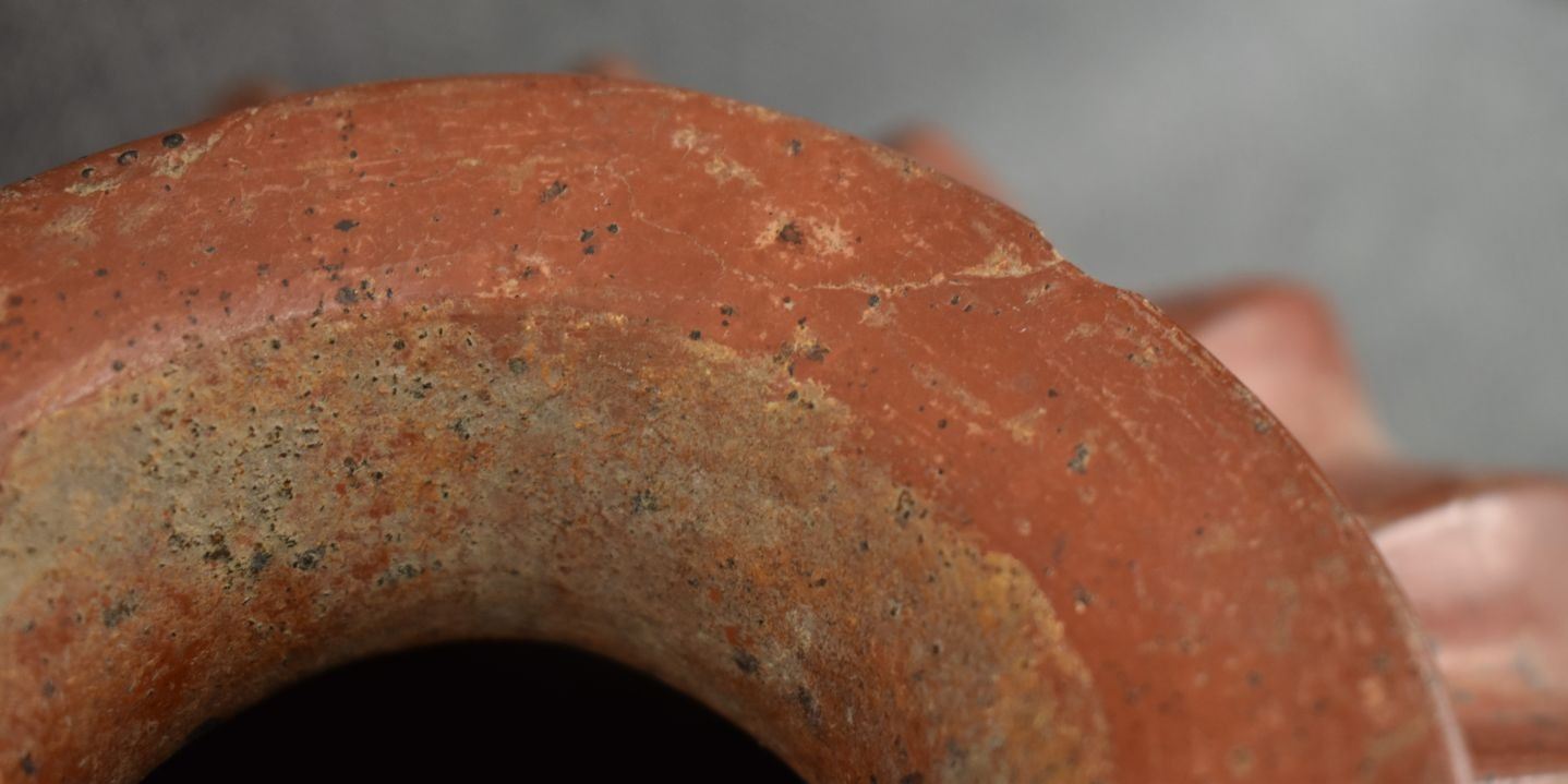 prehistoric pre-Columbian, hand made tri parrot figure legs 8" x 10" Broken and glued