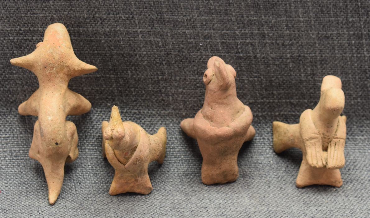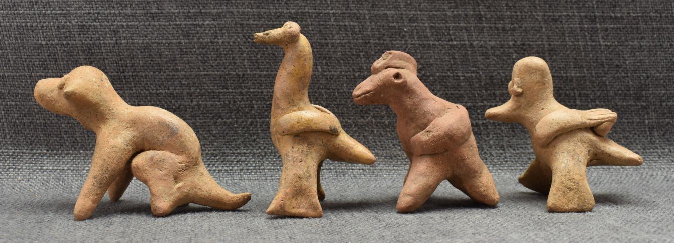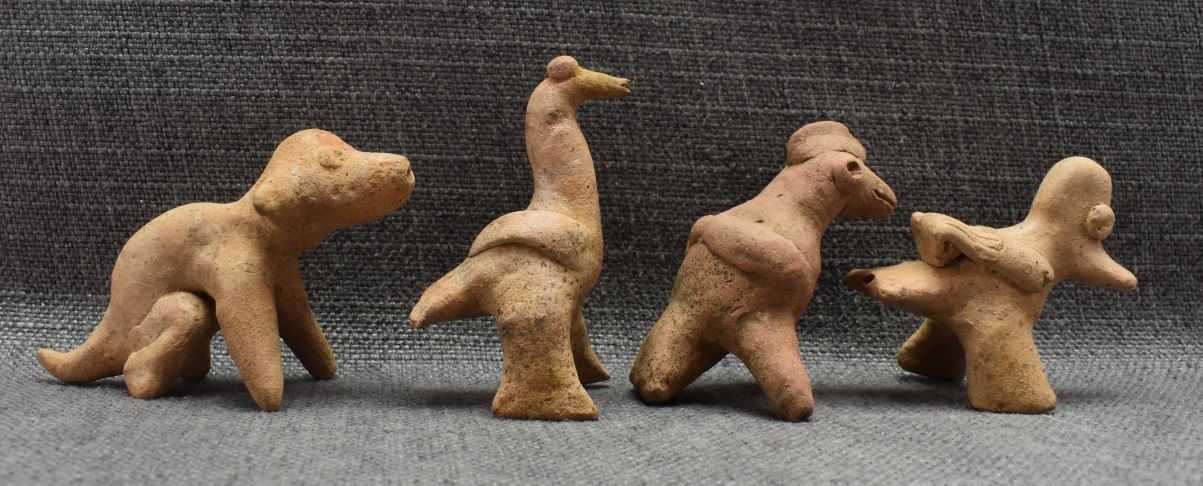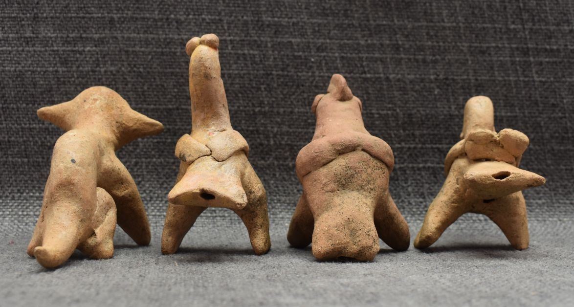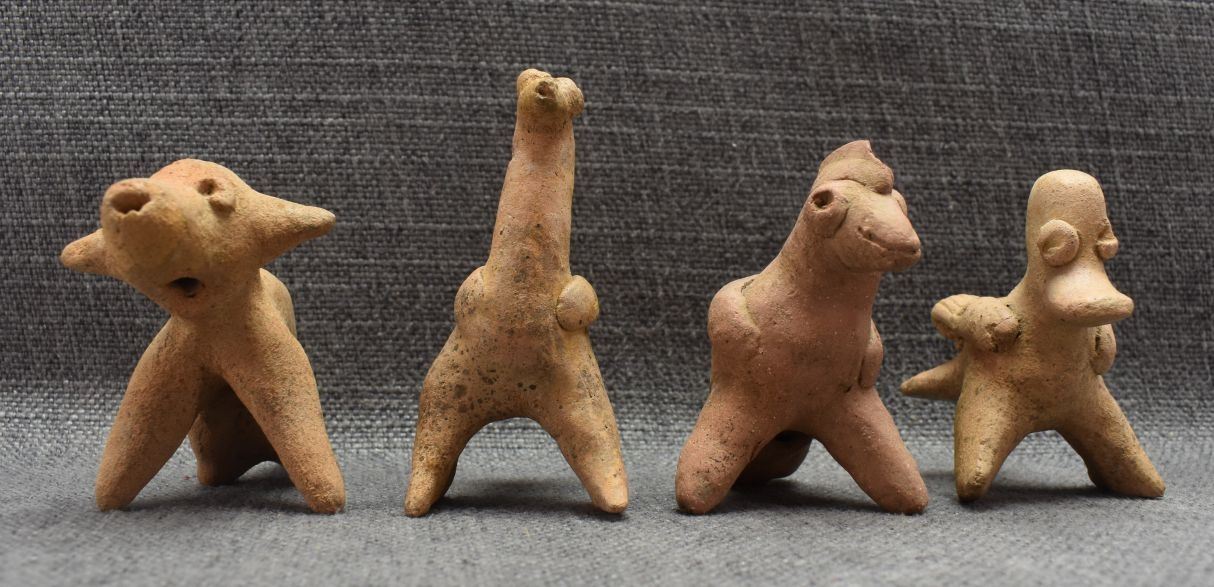 prehistoric pre-Columbian hand made pottery animal whistles largest 3.25" x 1.5" x 1.5"