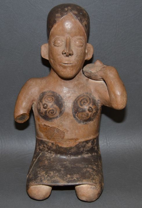 prehistoric painted design with chip and cracks missing 1 arm, 9" x 5" x 4"