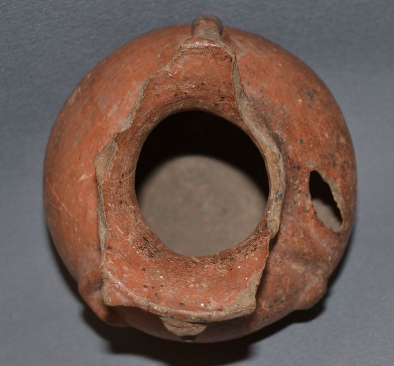 prehistoric as found condition missing pieces on rim and hole onside 6.5"x5.5"x5.5"