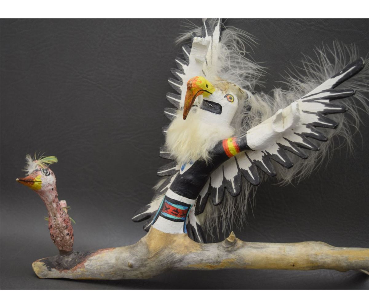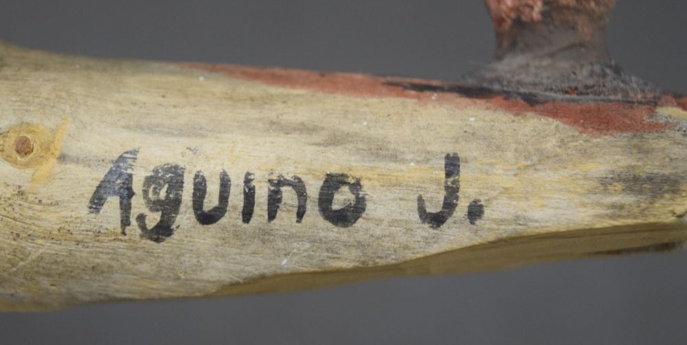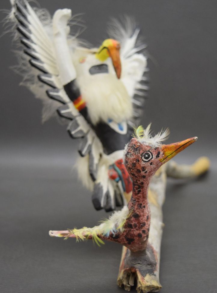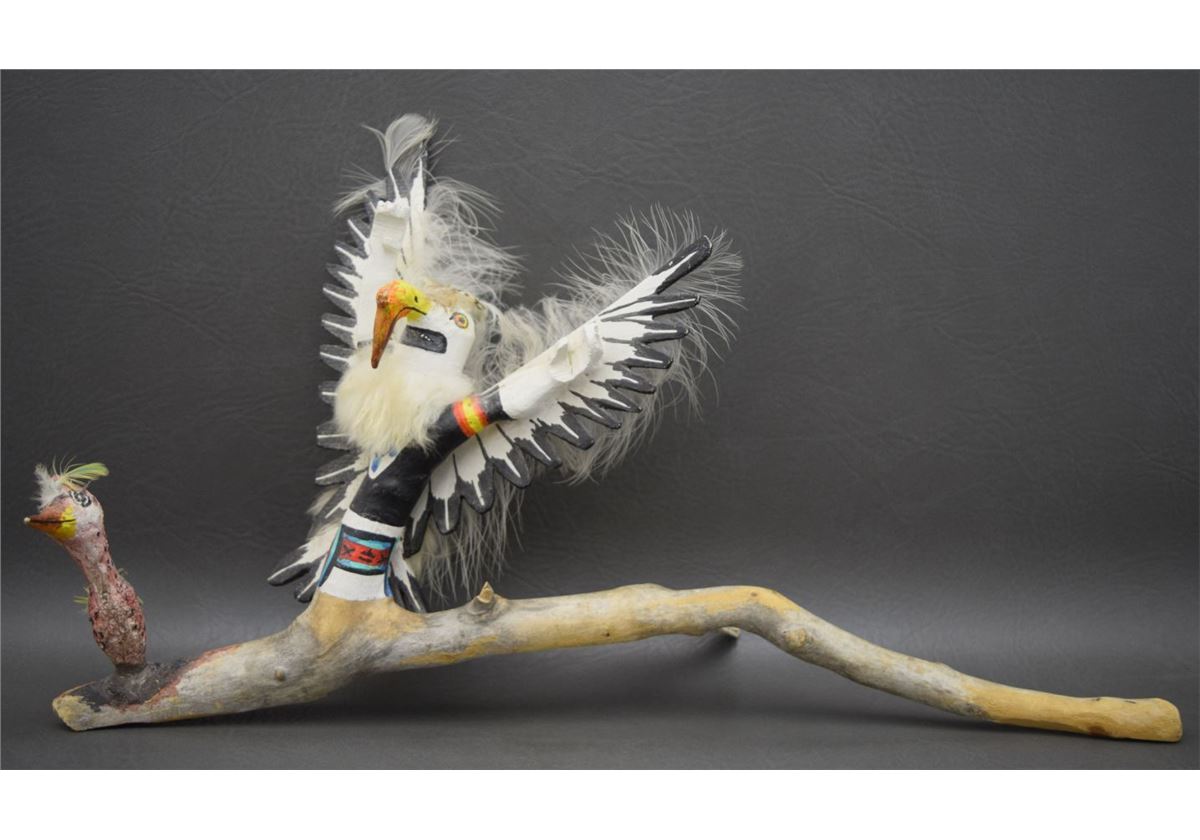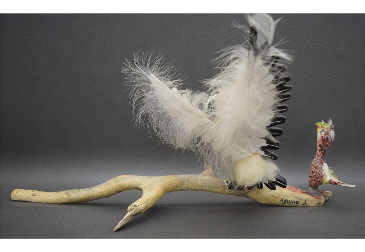1980's hand carved wood depicting eagle dancer attributed to Juan Aquino 10'' x 18''