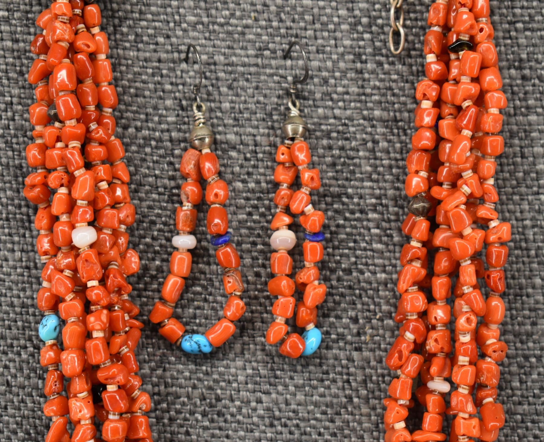 PUEBLO CORAL NECKLACE AND EARRINGS