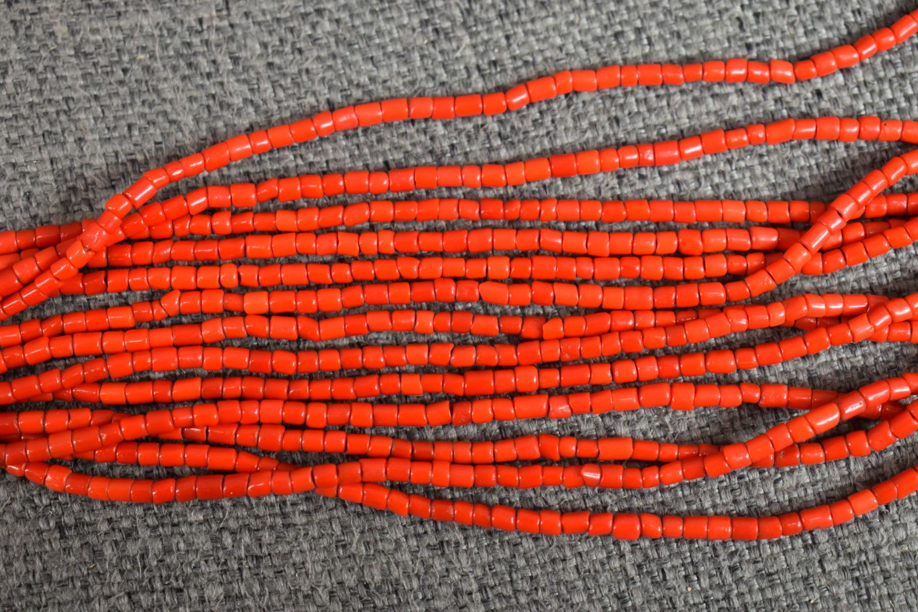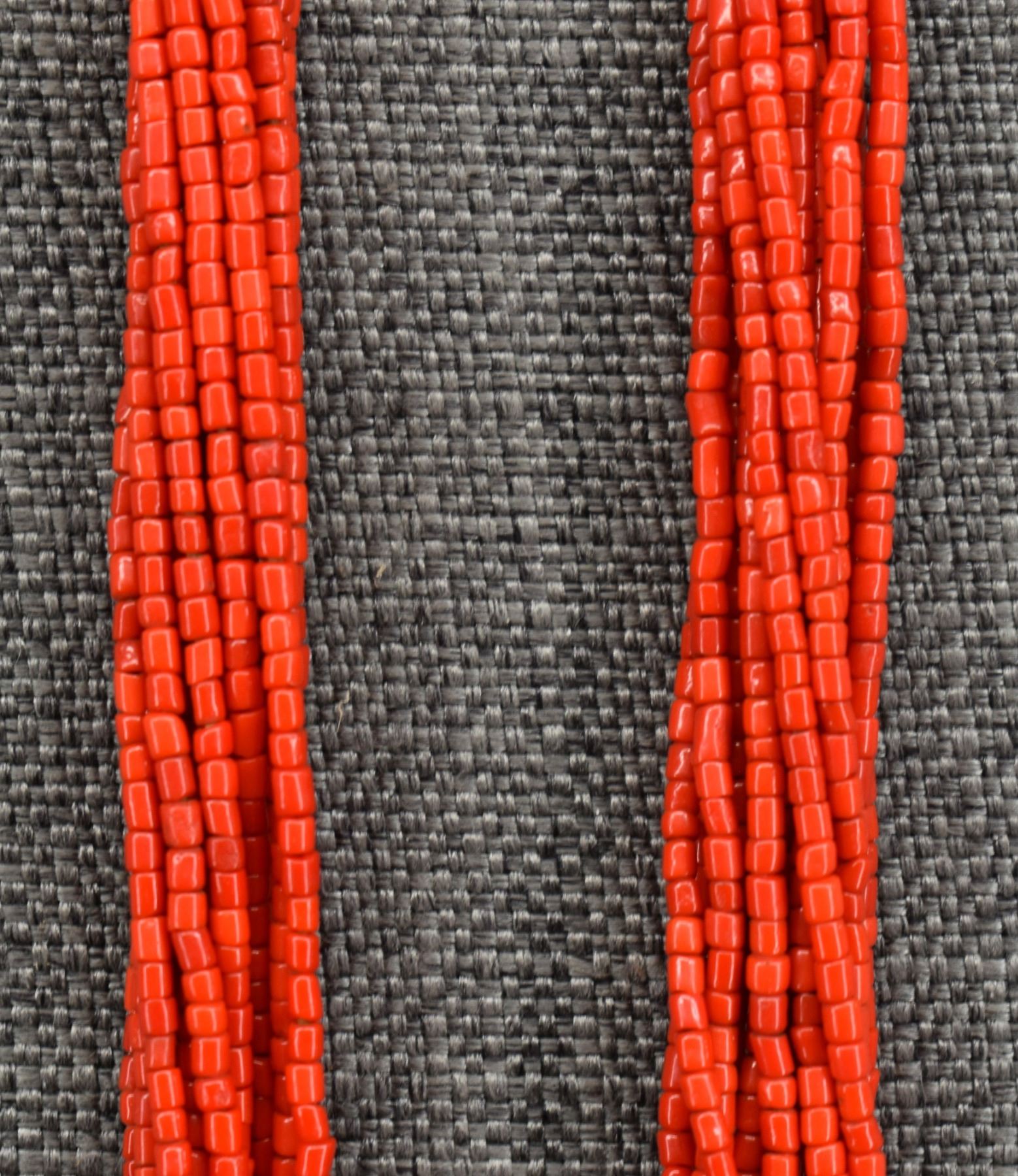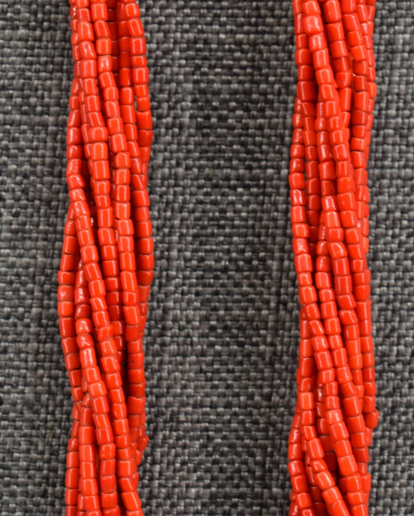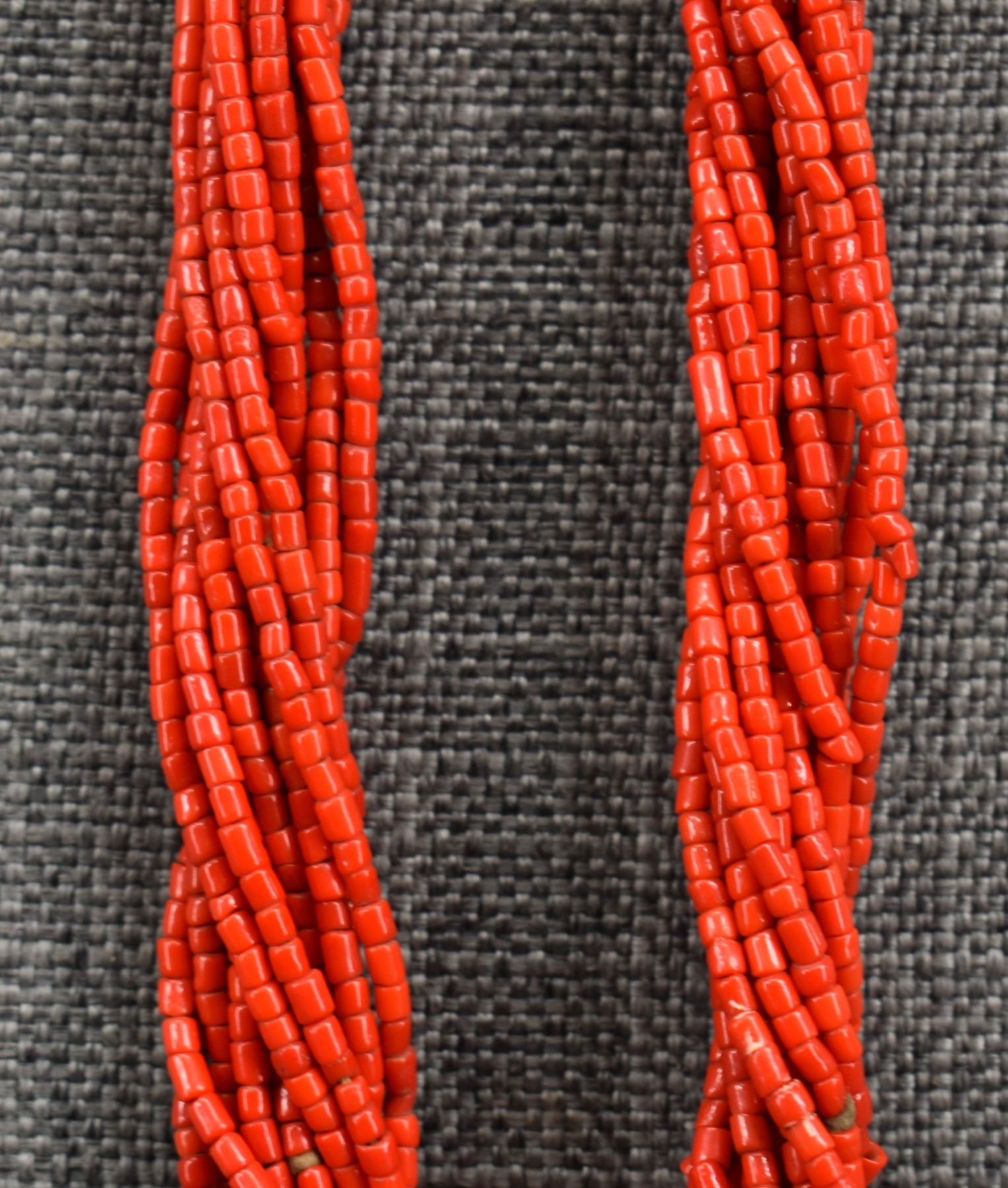 1940's Pueblo. Thirteen strand coral bead necklace. 32'' long