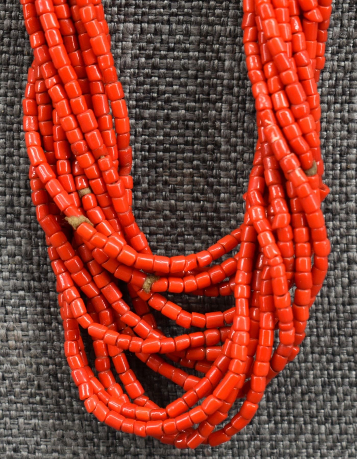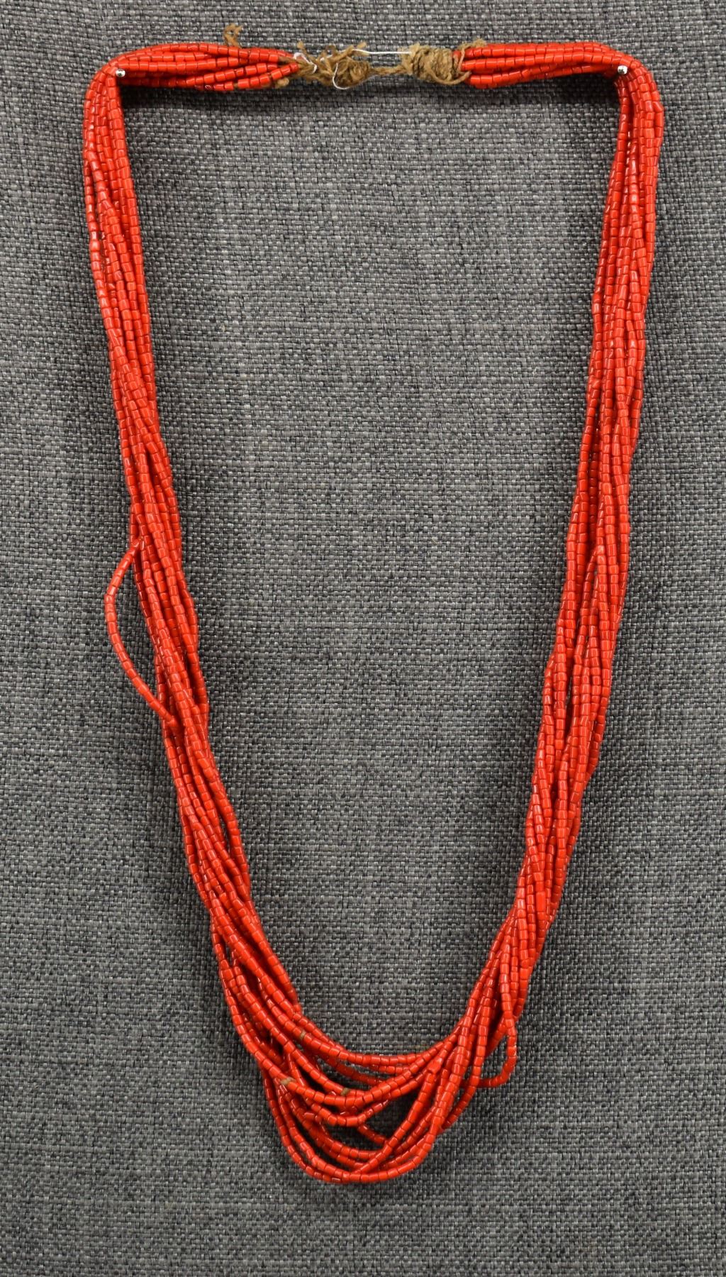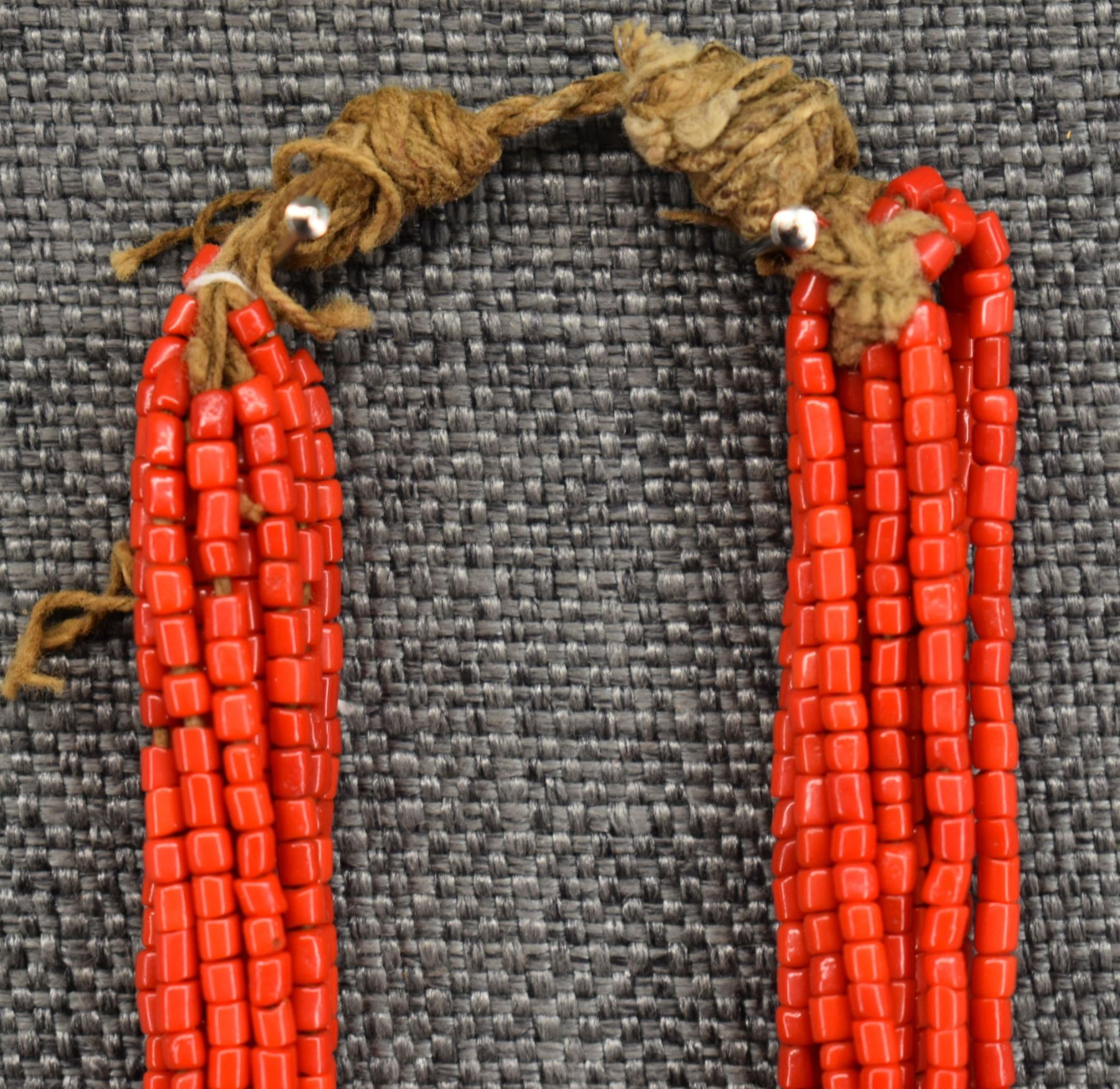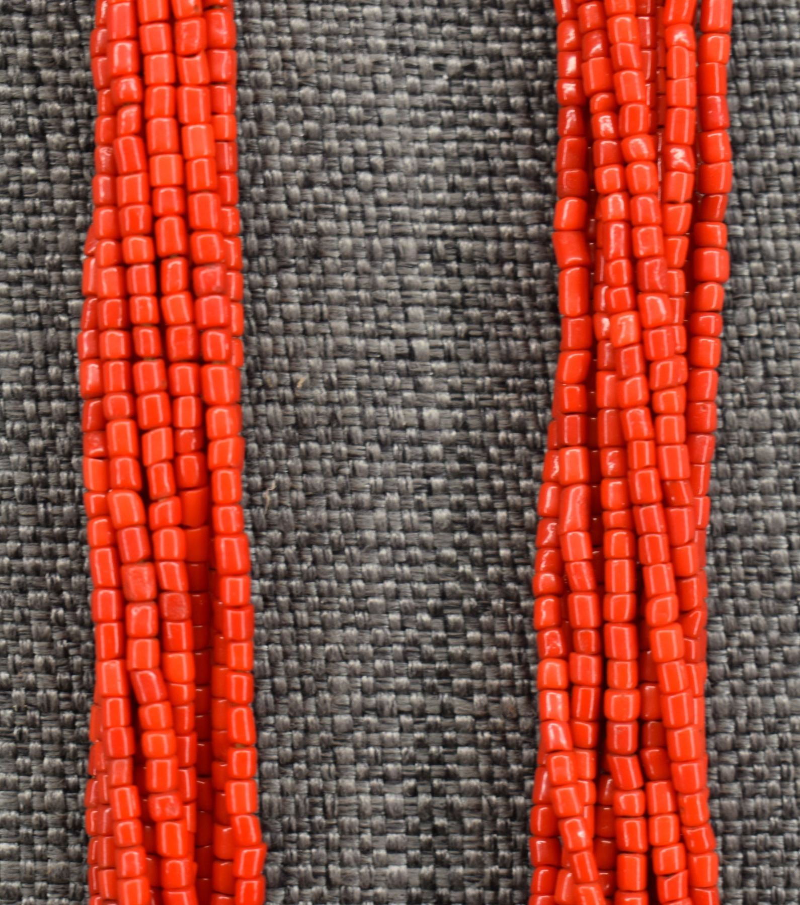 1940's Pueblo. Thirteen strand coral bead necklace. 32'' long