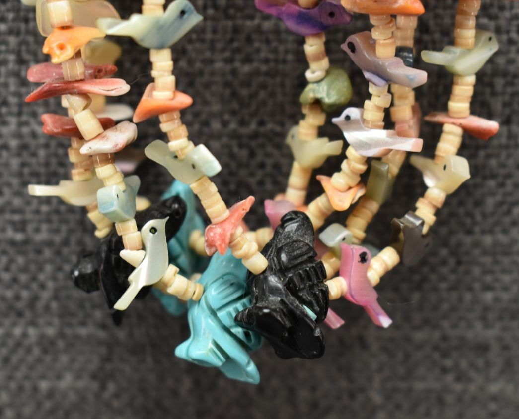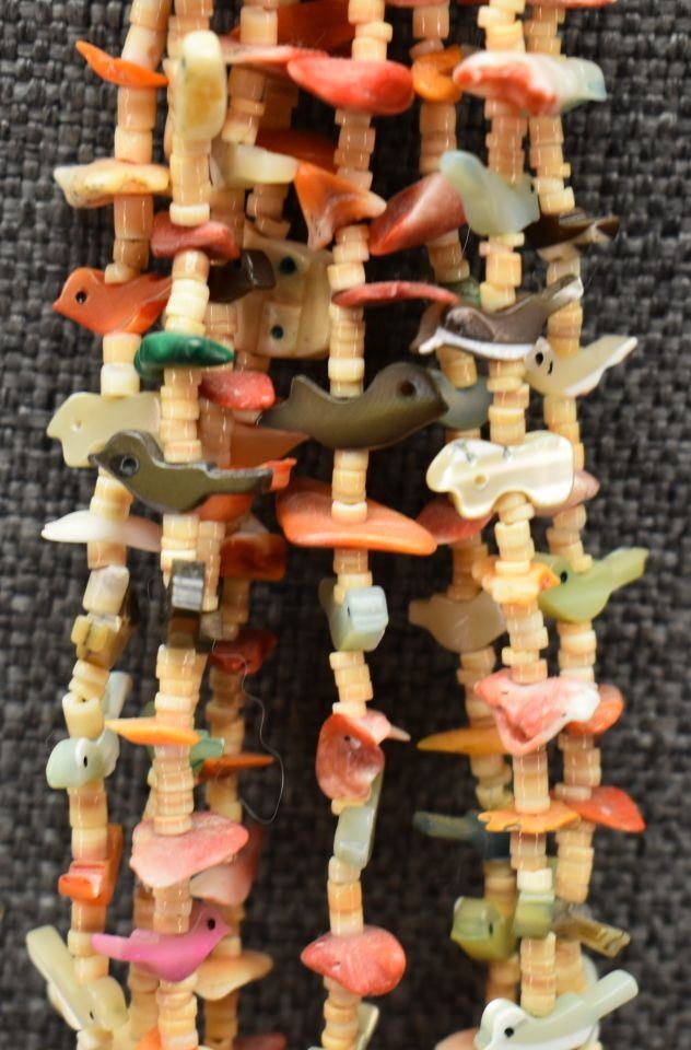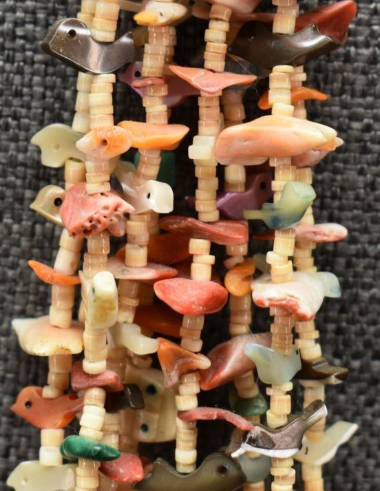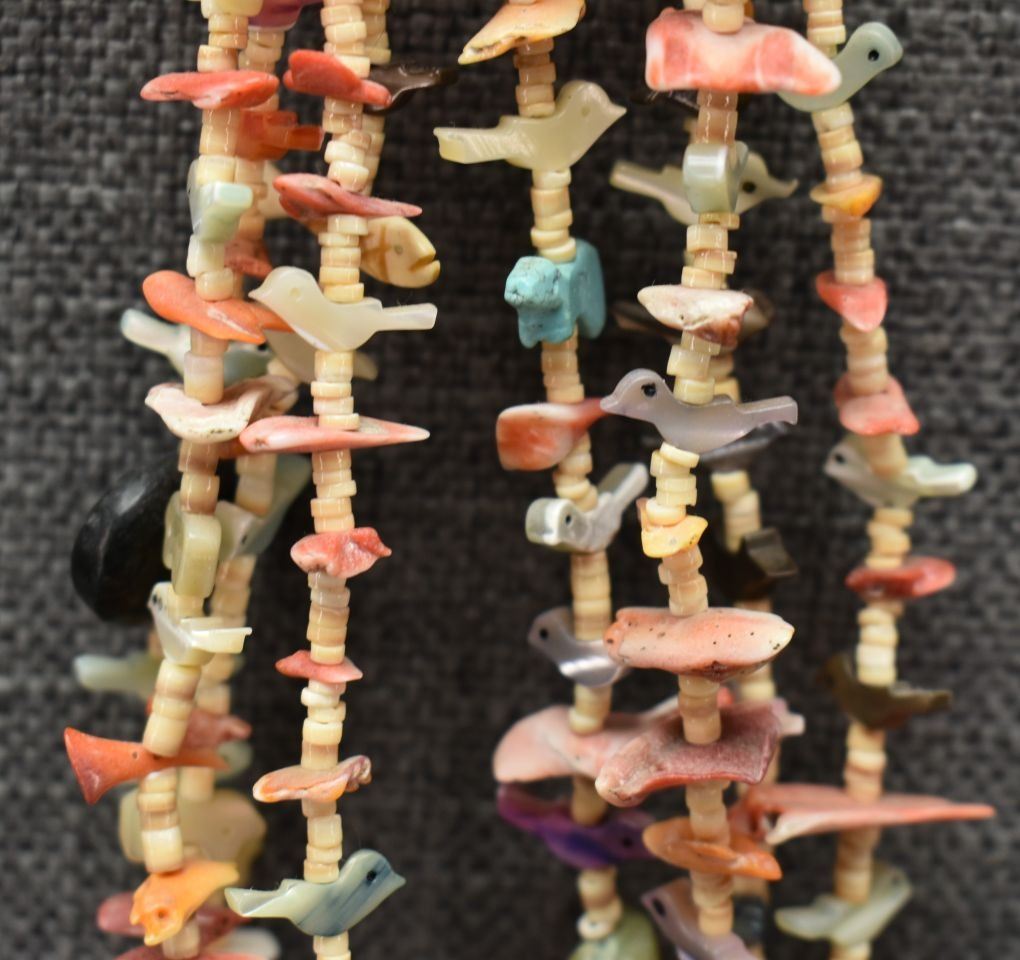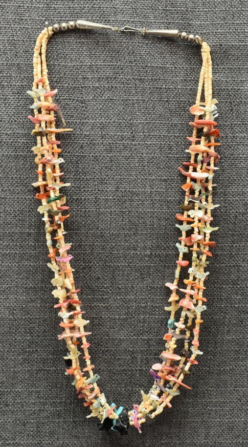 1980's pueblo. Four strand fetish and shell necklace 26'' long