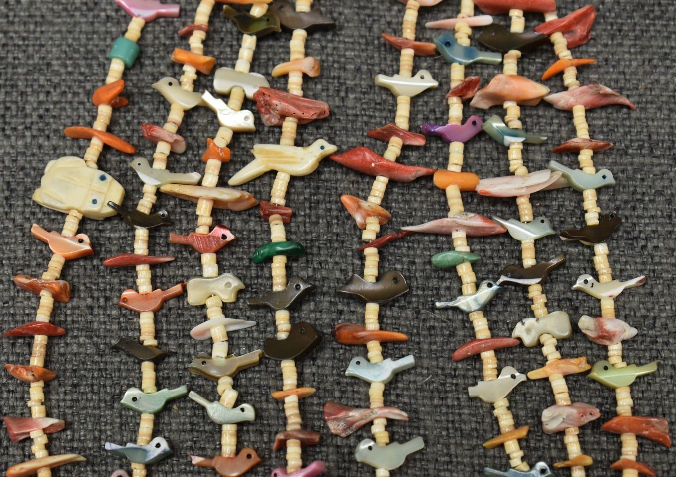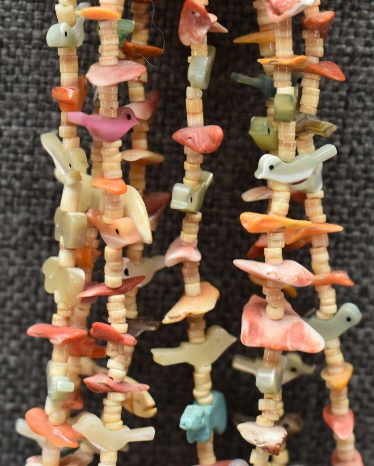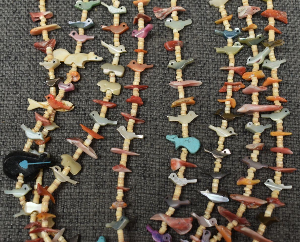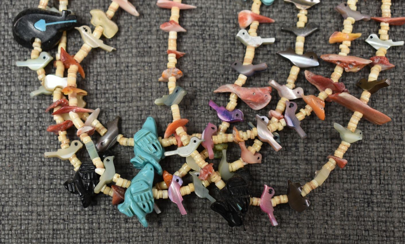 1980's pueblo. Four strand fetish and shell necklace 26'' long