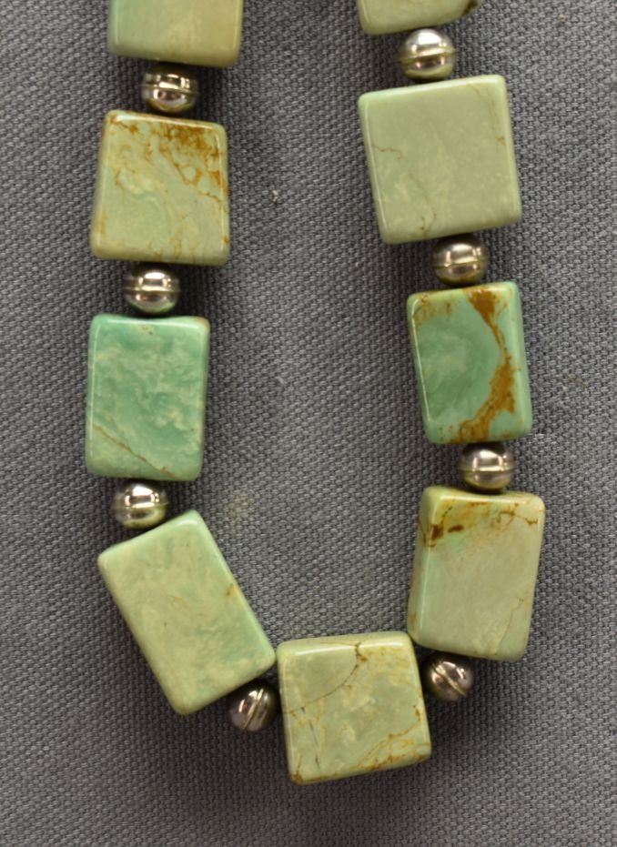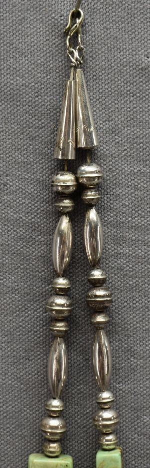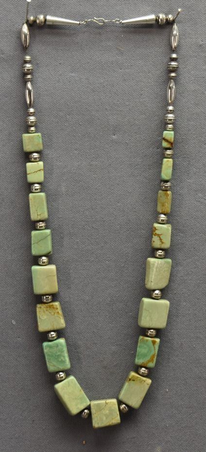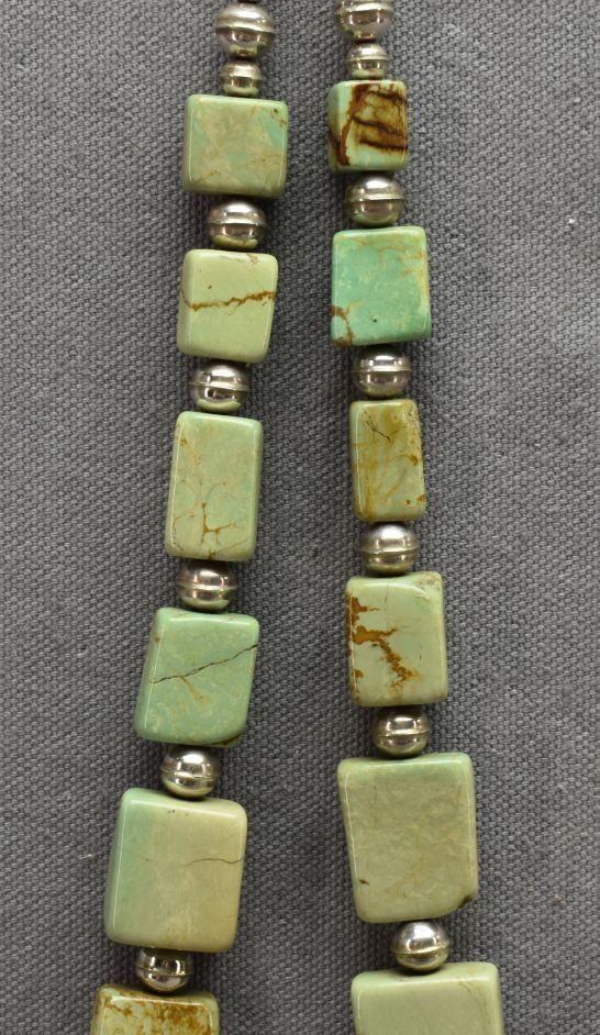 2000's Pueblo Indian. Sterling silver and turquoise necklace 26'' long.