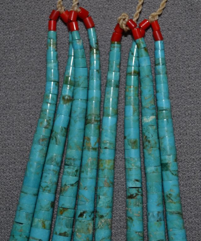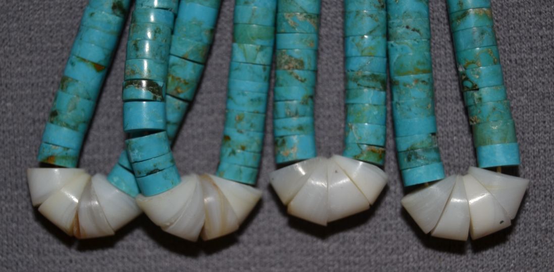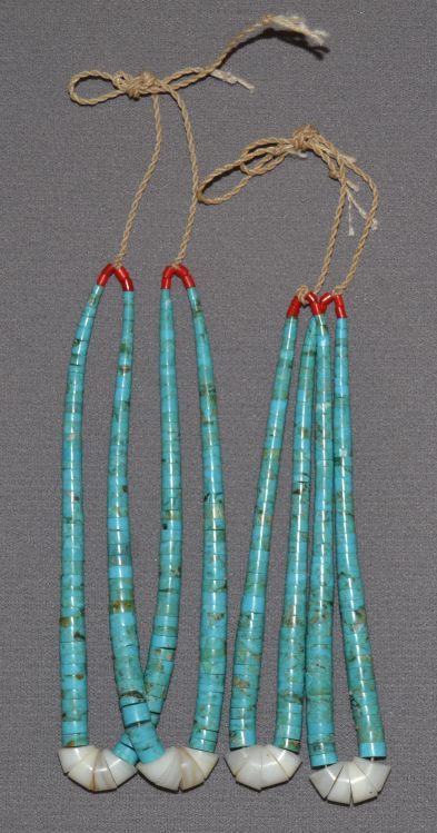 1960s 70s 2 pairs turquoise and shell with glass coral beads 5" long