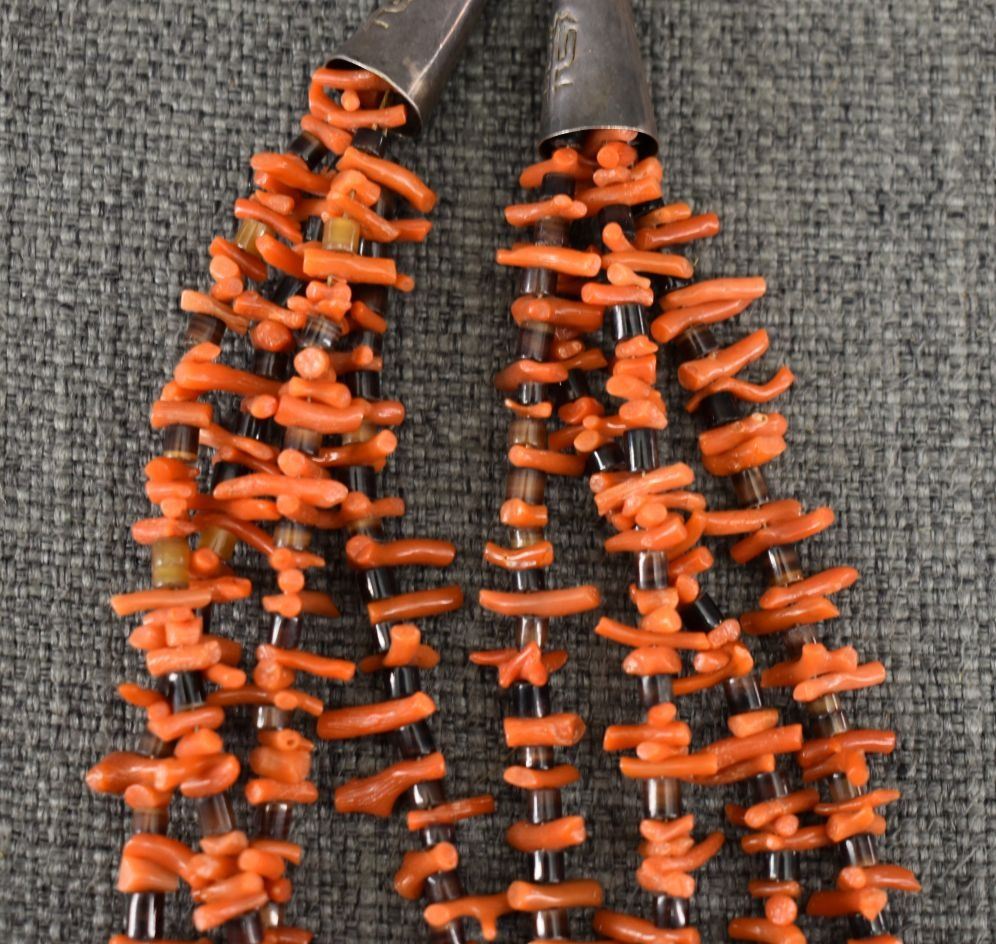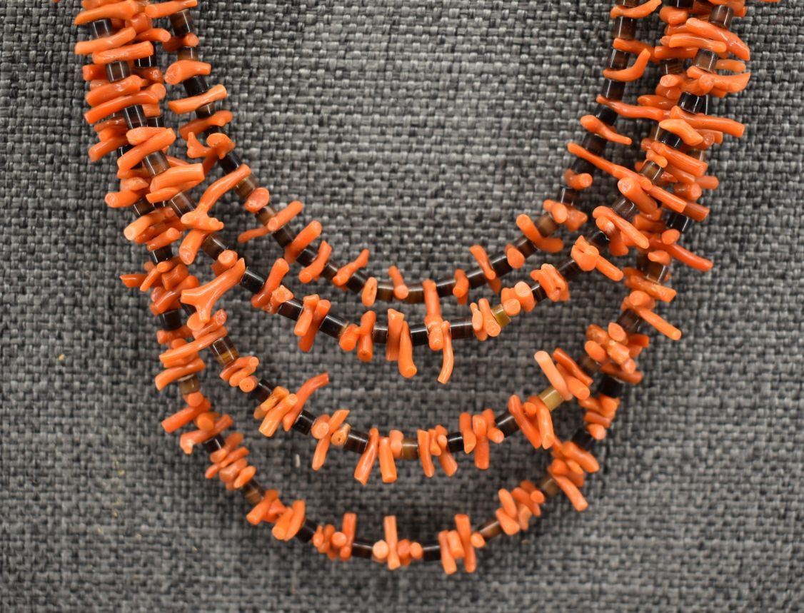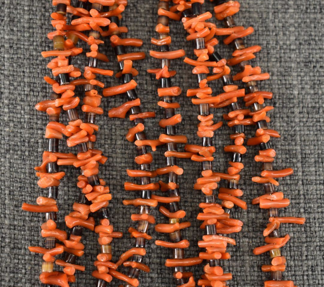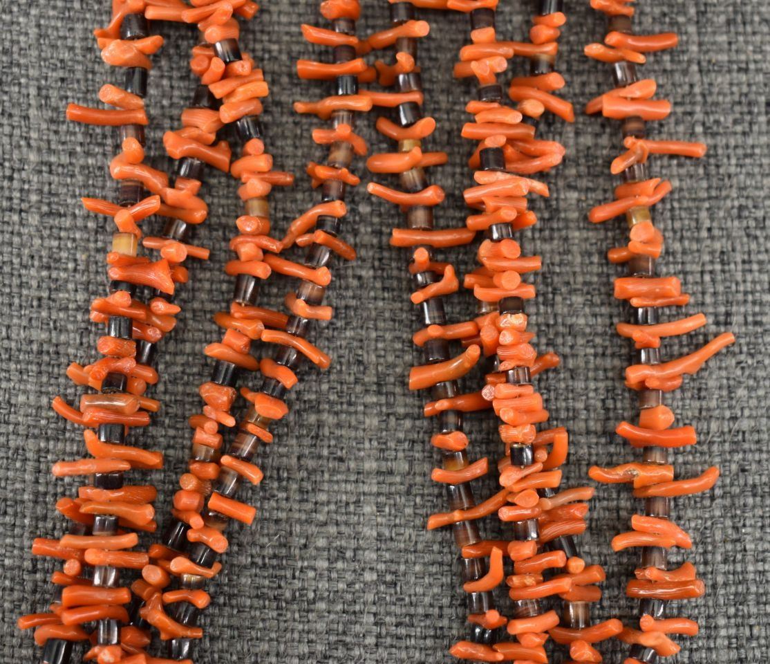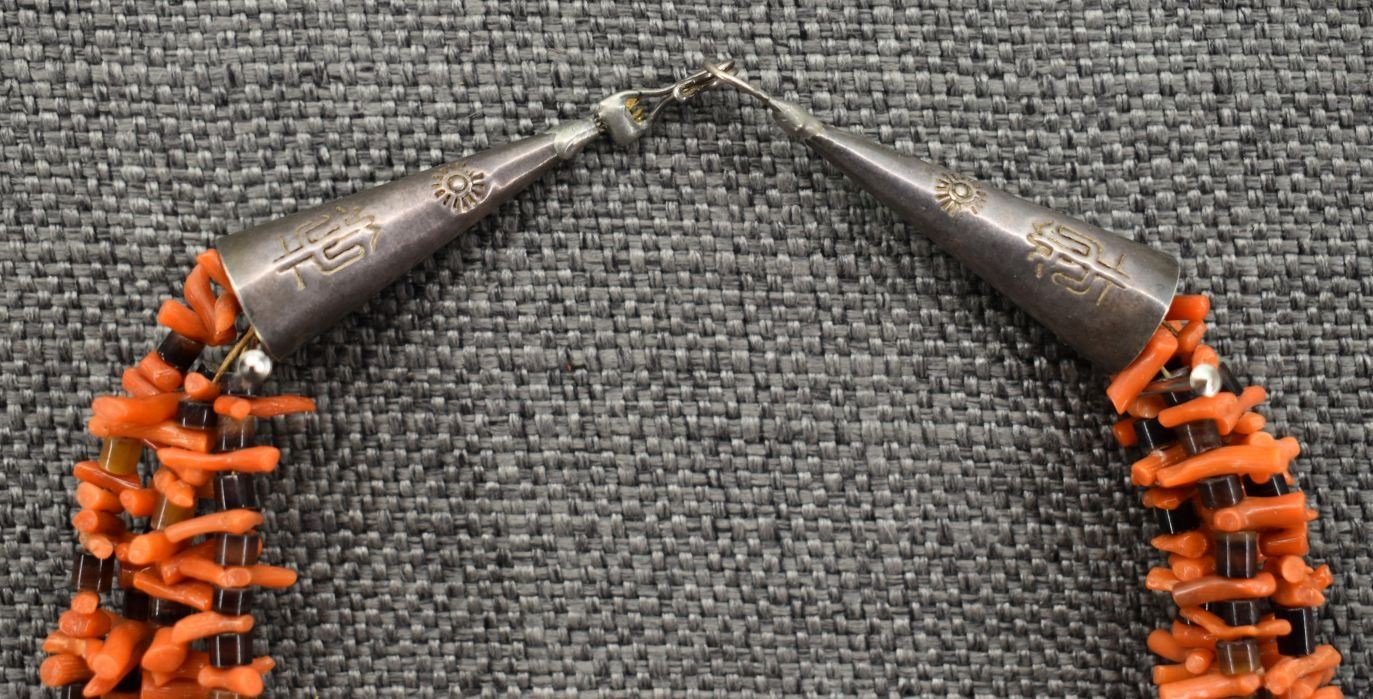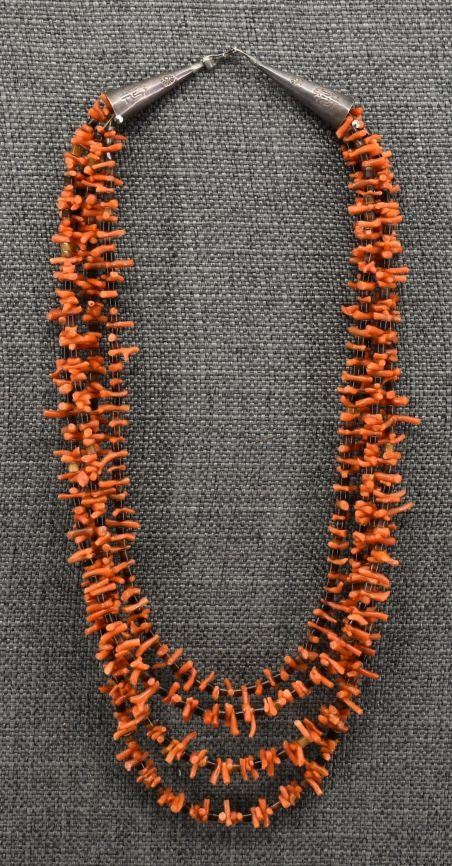 1970-80's Pueblo, multiple strands of heishi and coral 21" long