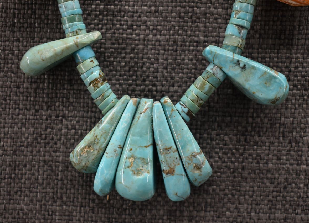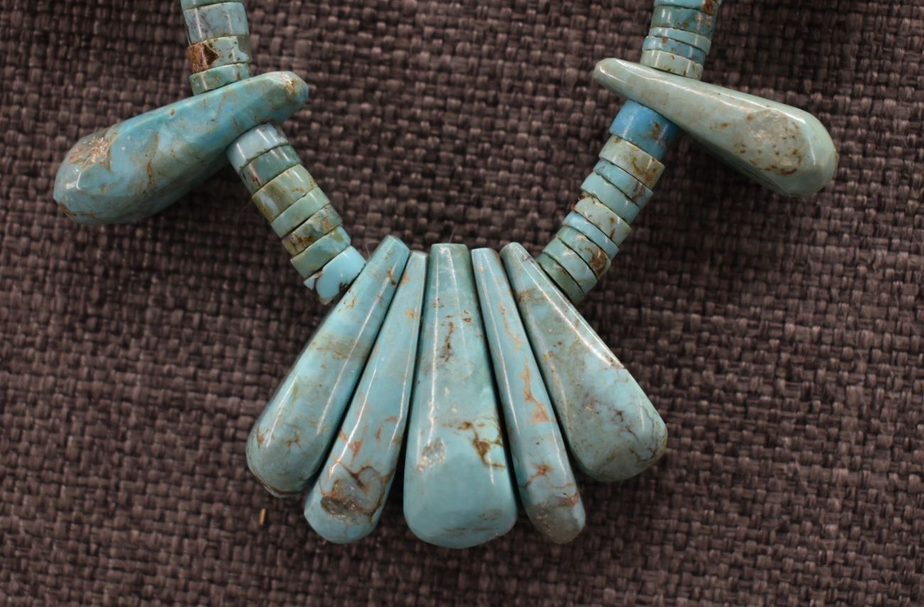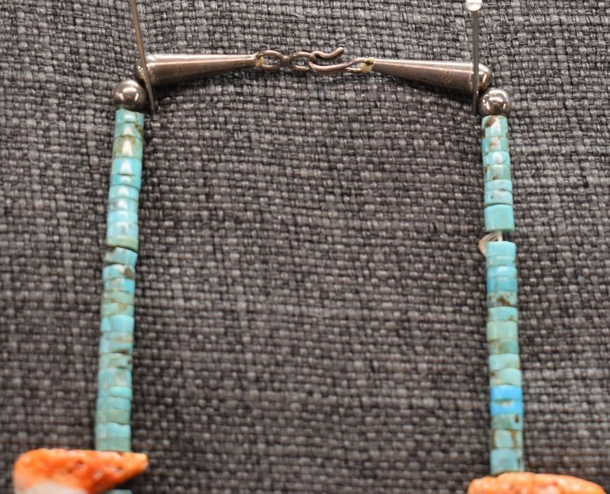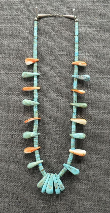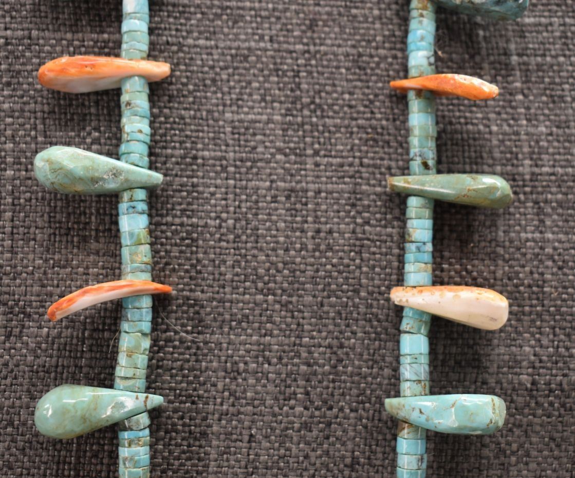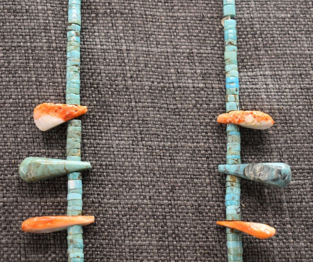 1970's Pueblo. Turquoise and shell necklace 24'' long