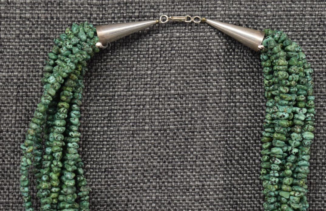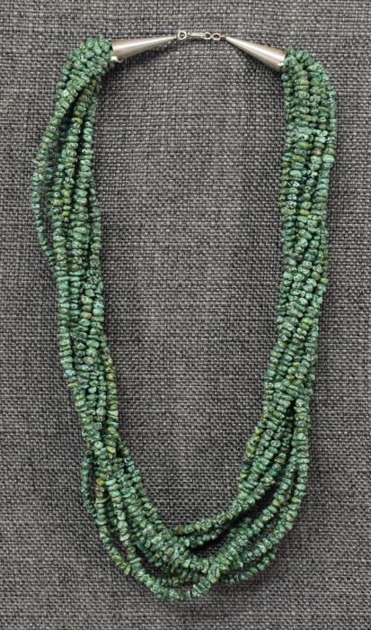 10 strand turquoise pueblo Nugget necklace with sterling silver tips. 23" long