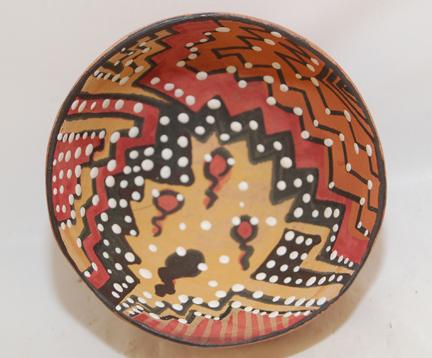 ca. 1980'S busy polychrome design, 1.5" x 3.5".
