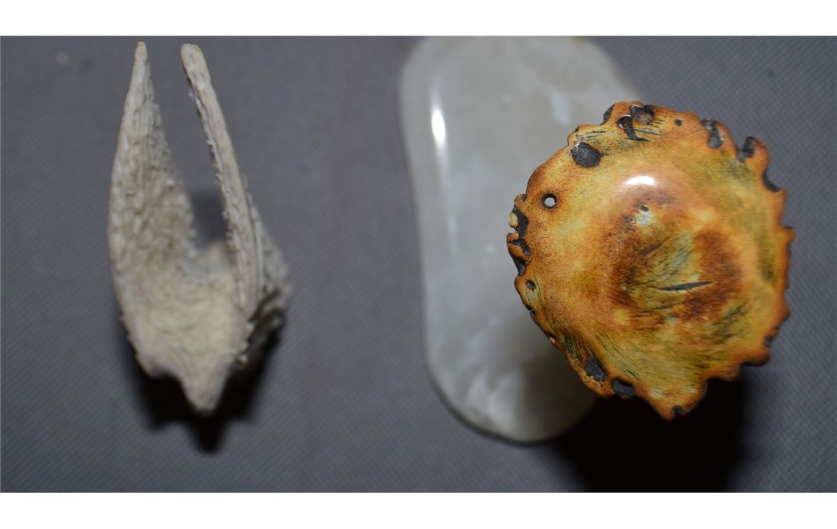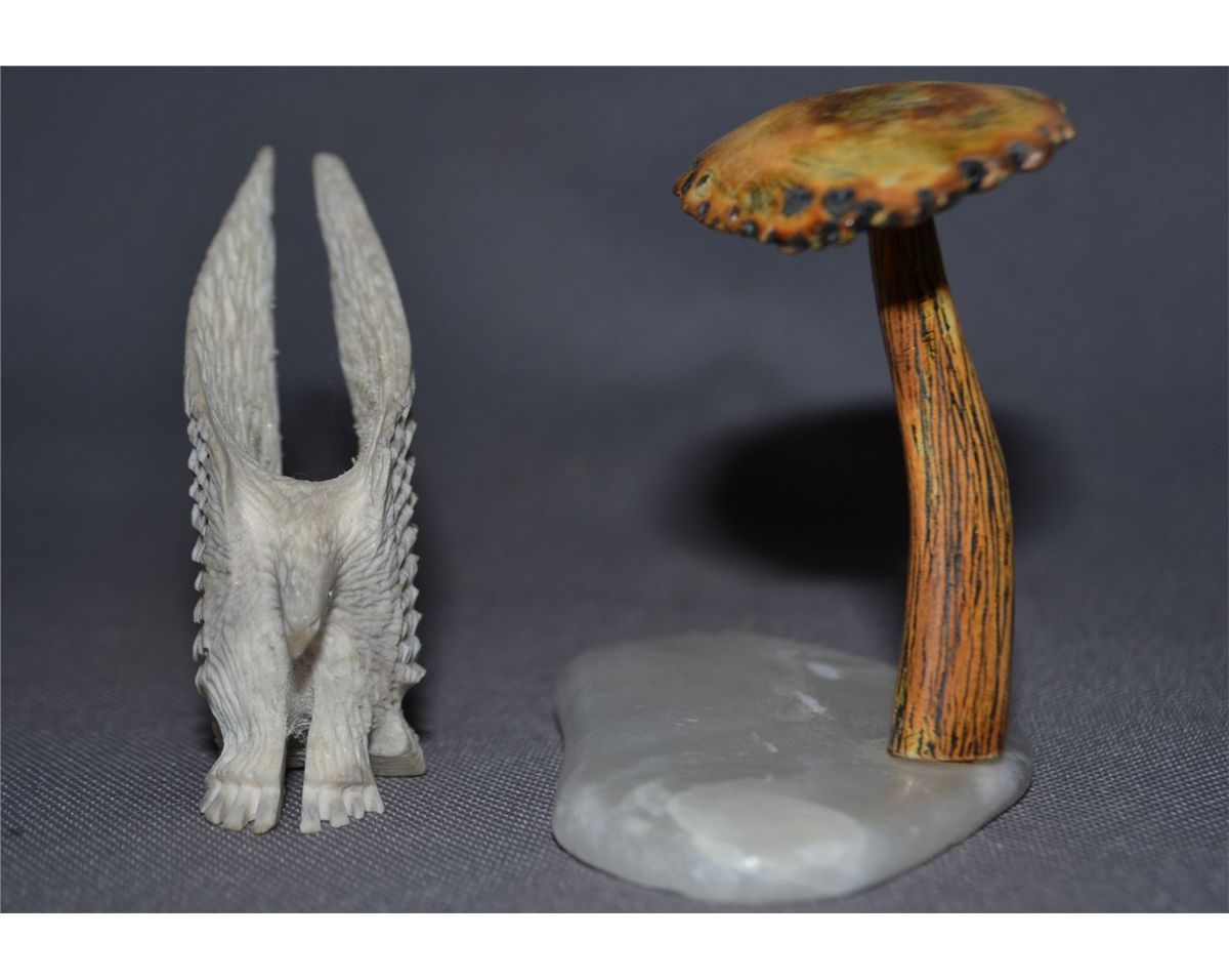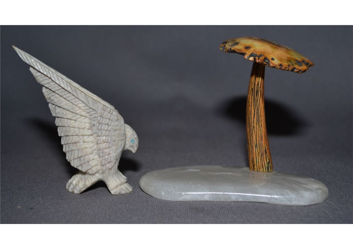 1998 carved horn eagle and tree on quartz signed R.U. 3.25" x 3.5" x 3.5"