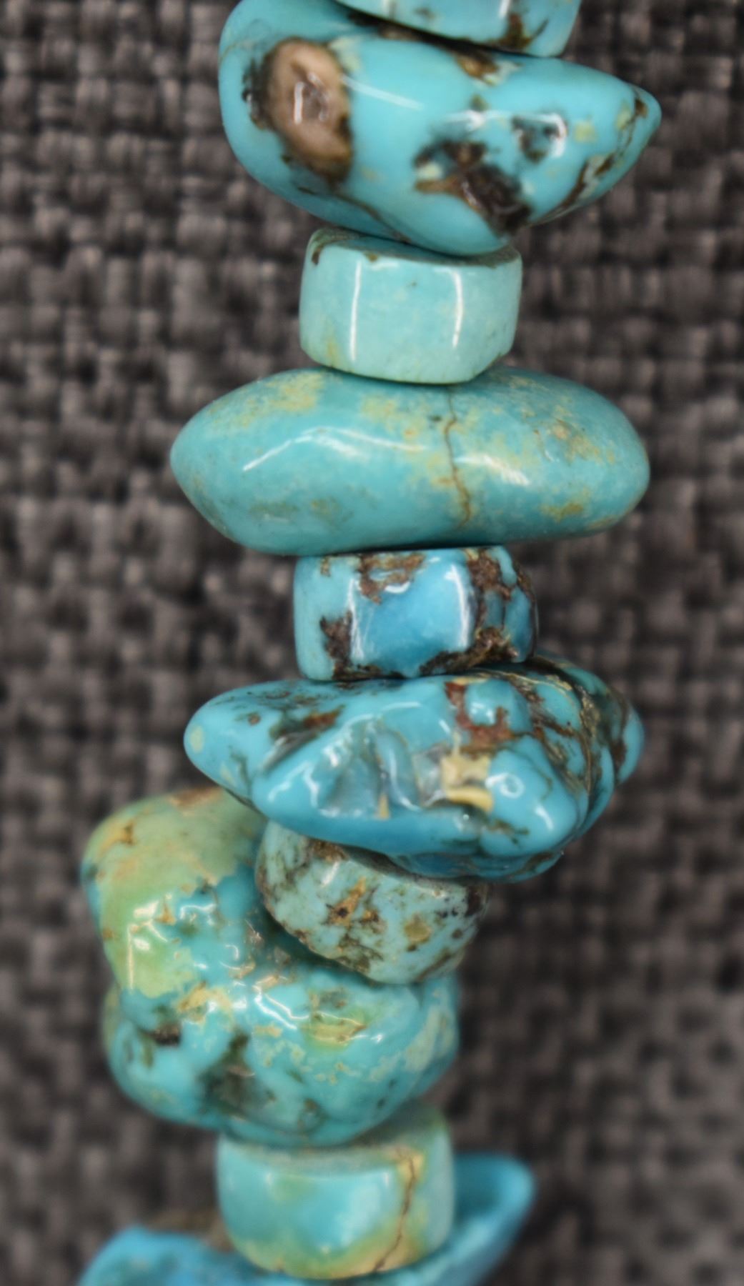1960's Pueblo. Single stand turquoise nugget necklace. 26'' long
