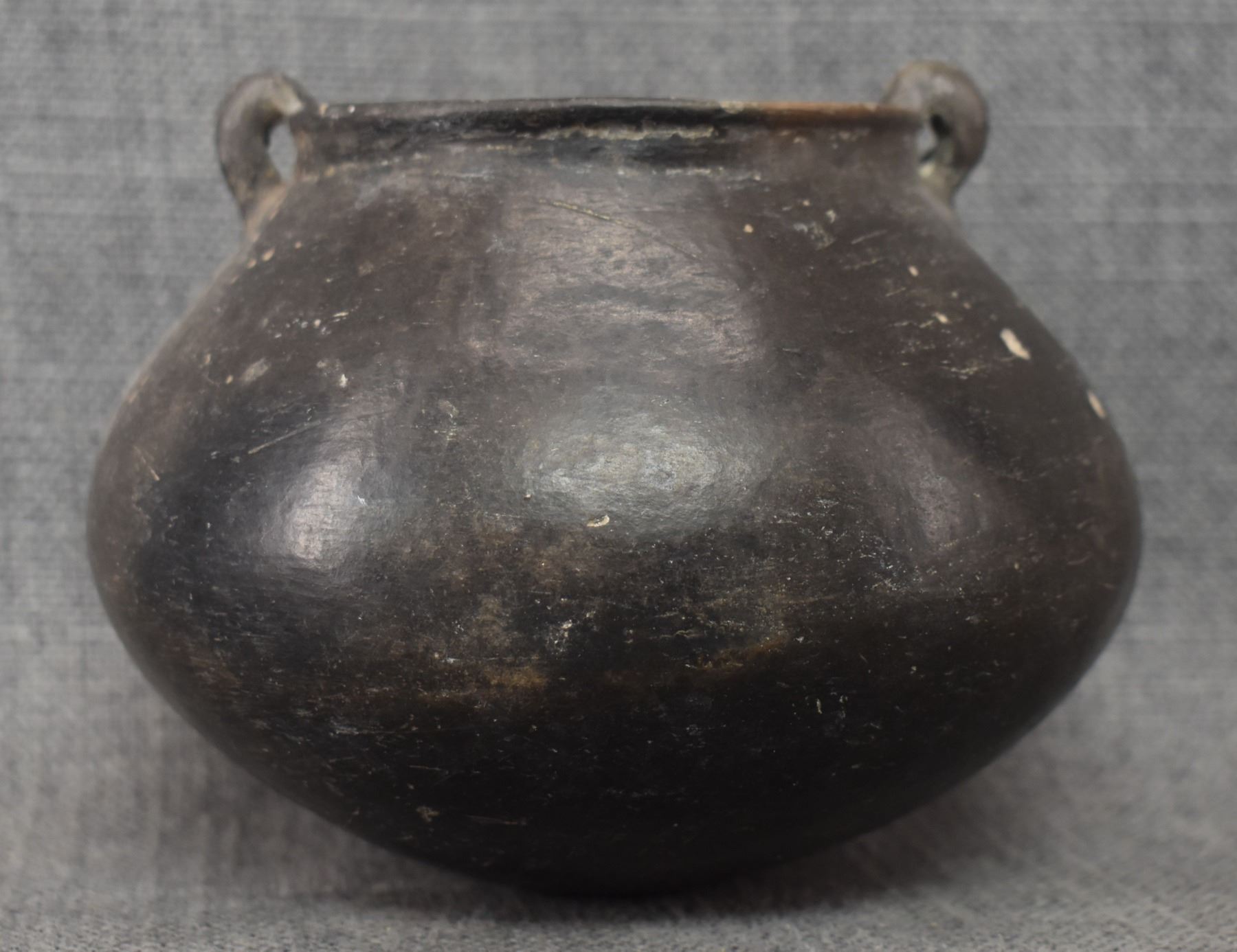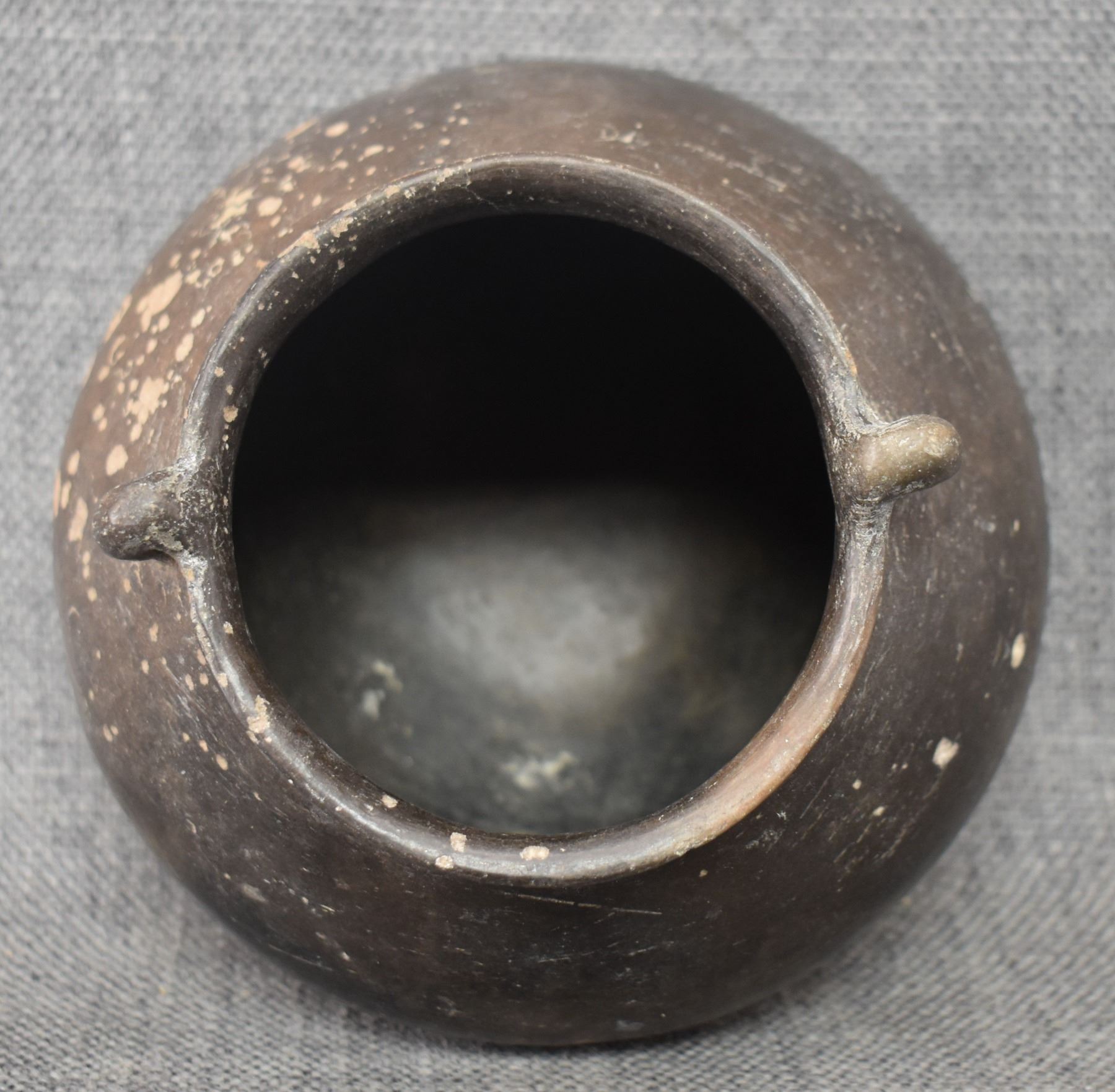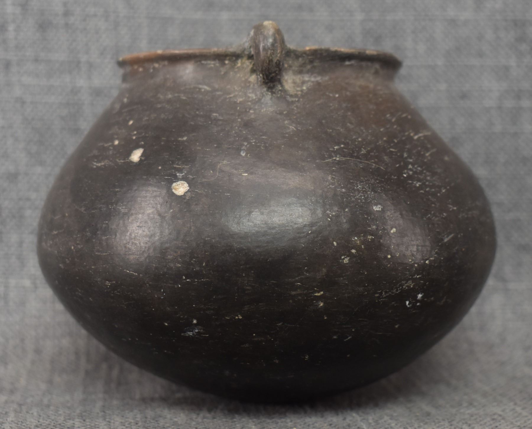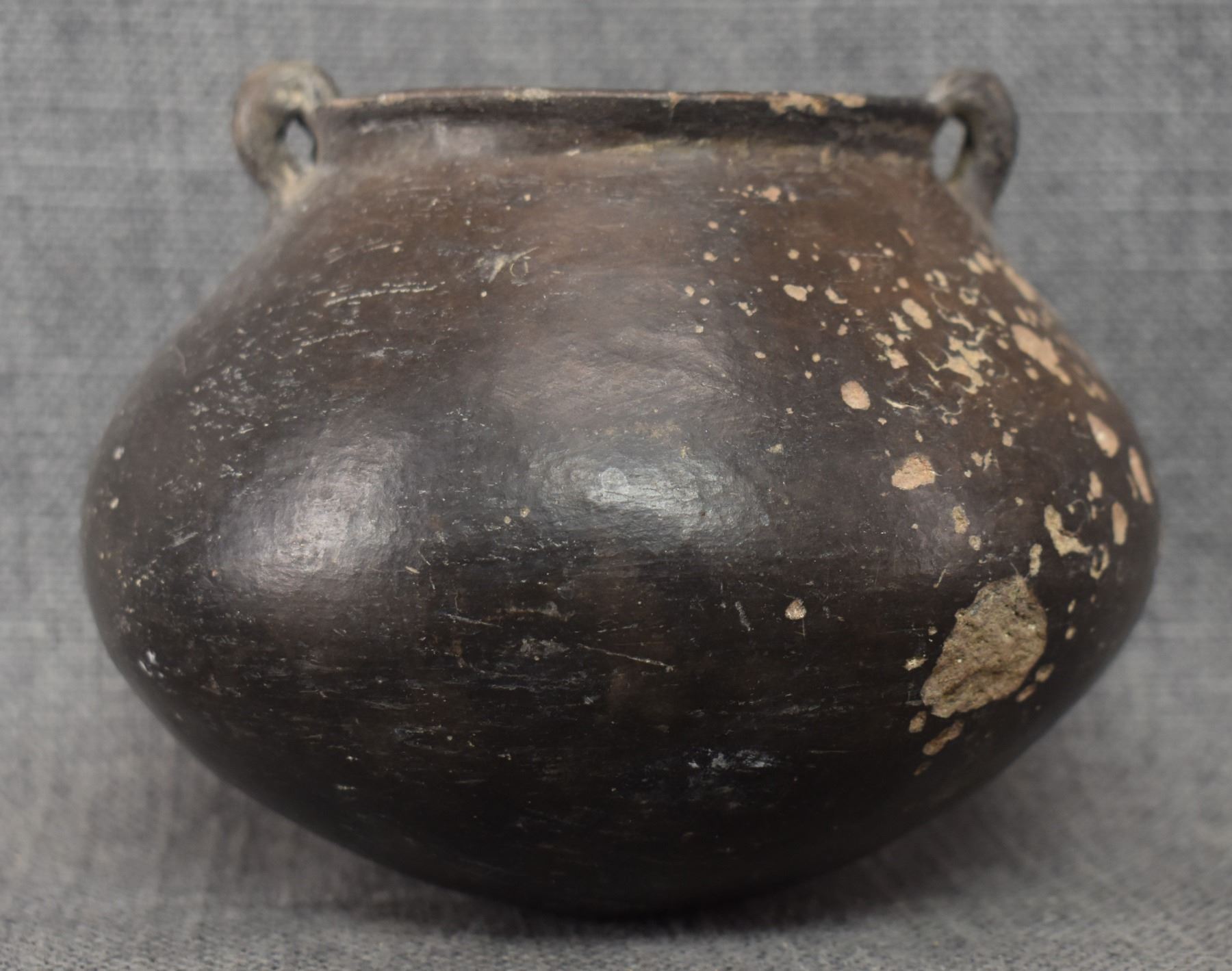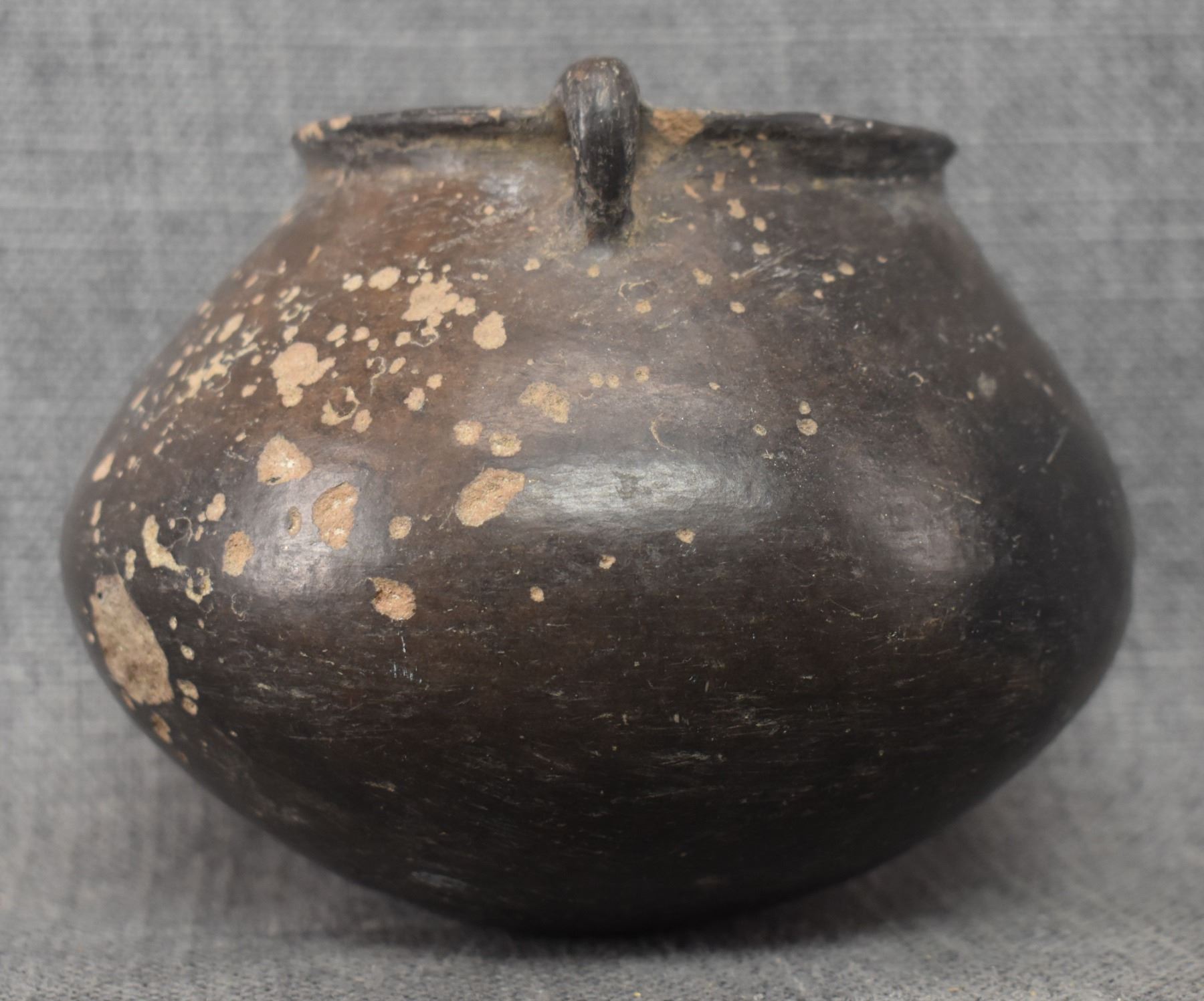 prehistoric Ramos black wear pottery jar, in as found condition 5'' x 6''