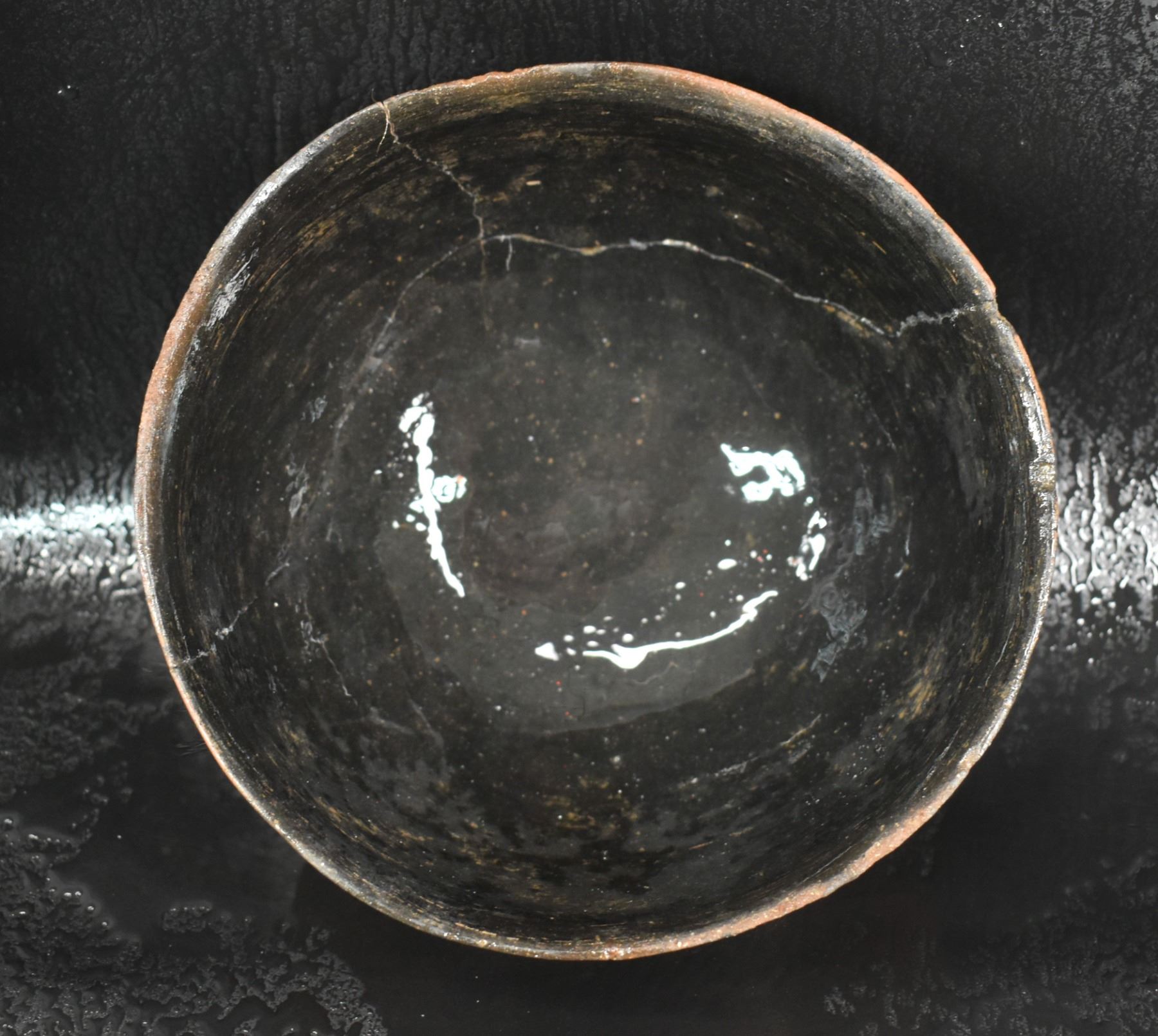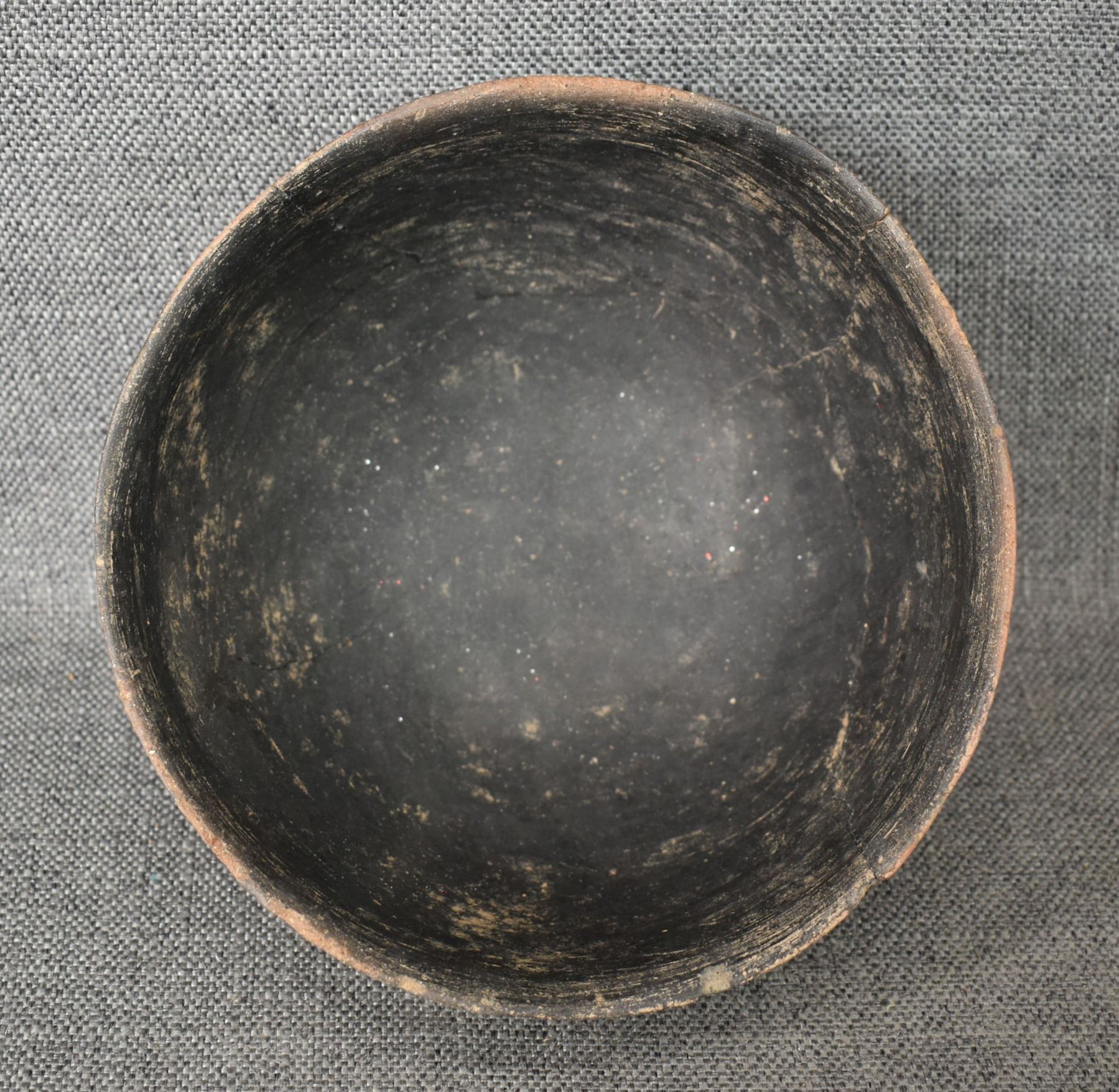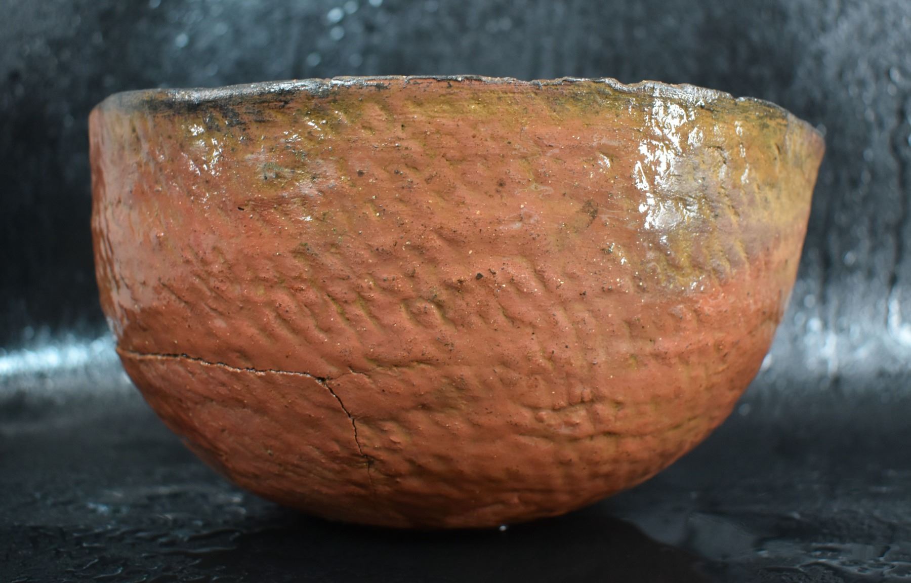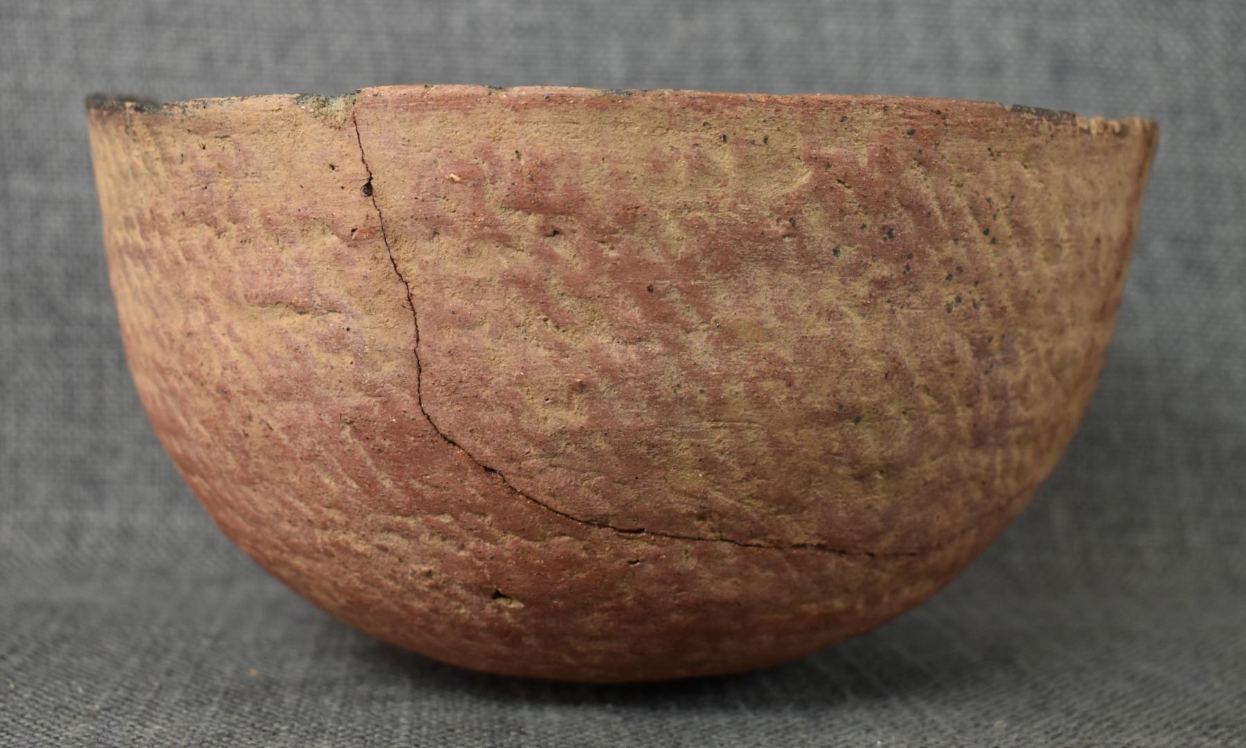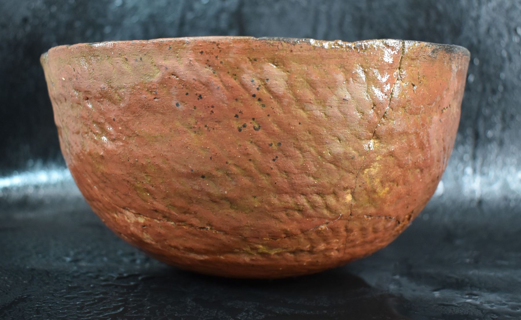 prehistoric . Salado. Hand coiled corrugated design pottery bowl. 4'' x 7.5'' has been broken and glued.