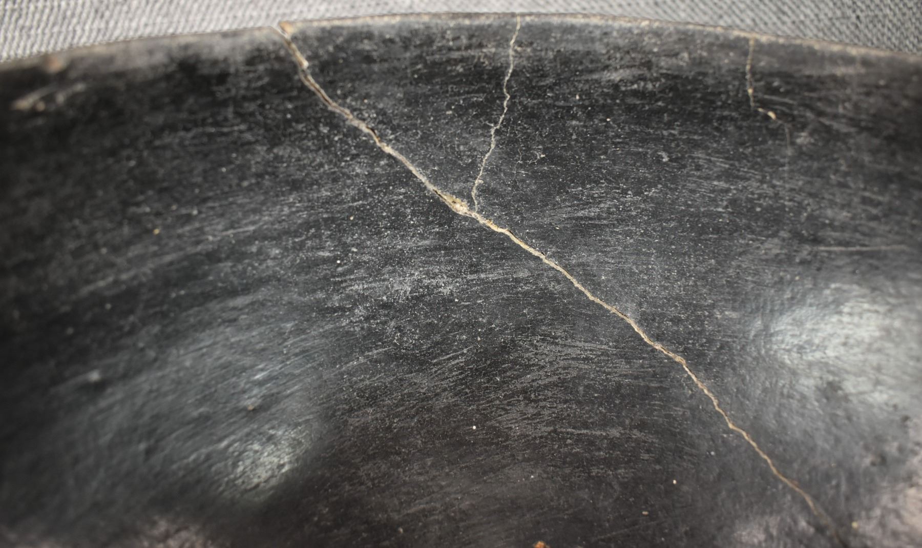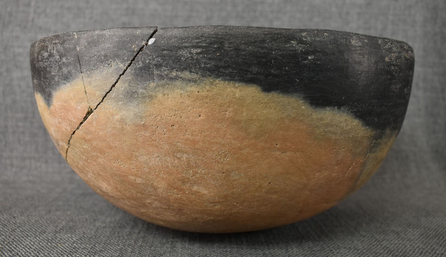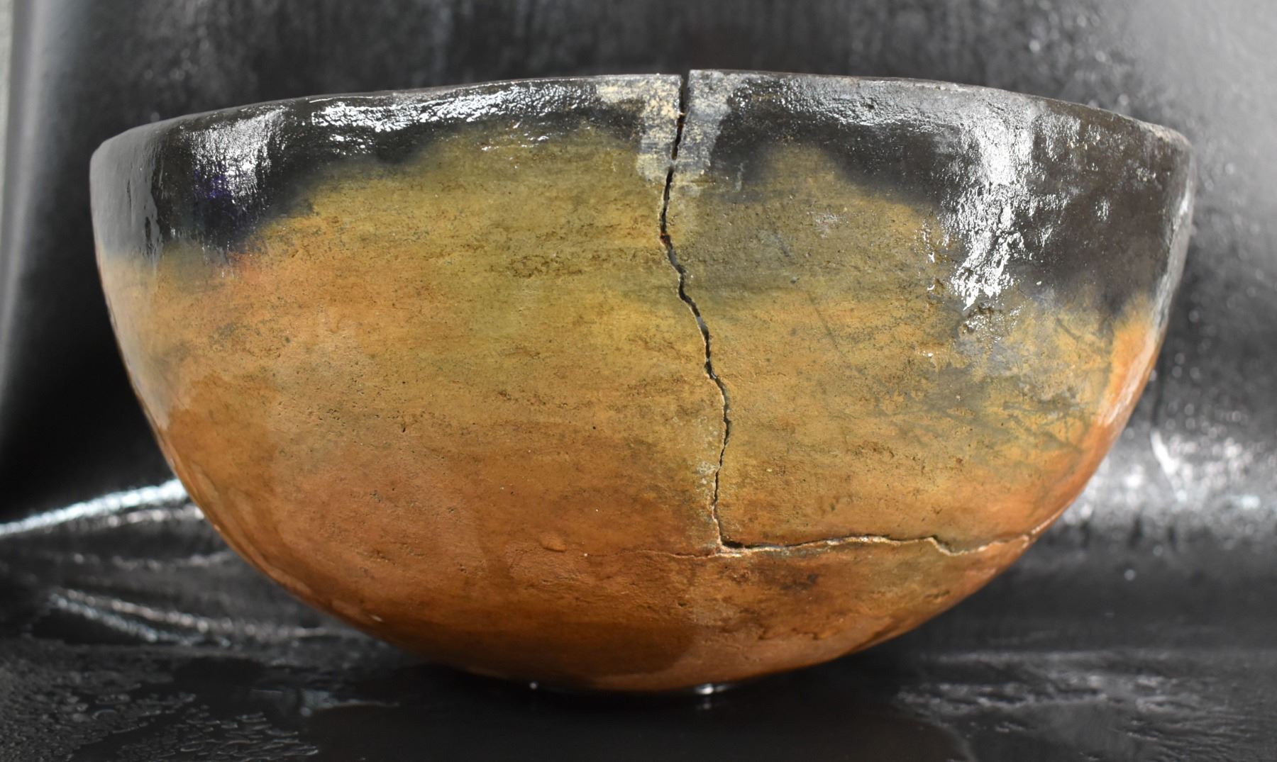 Prehistoric Salado. Hand coiled plain ware pottery bowl. 5'' x 11'' has been broken and glued.