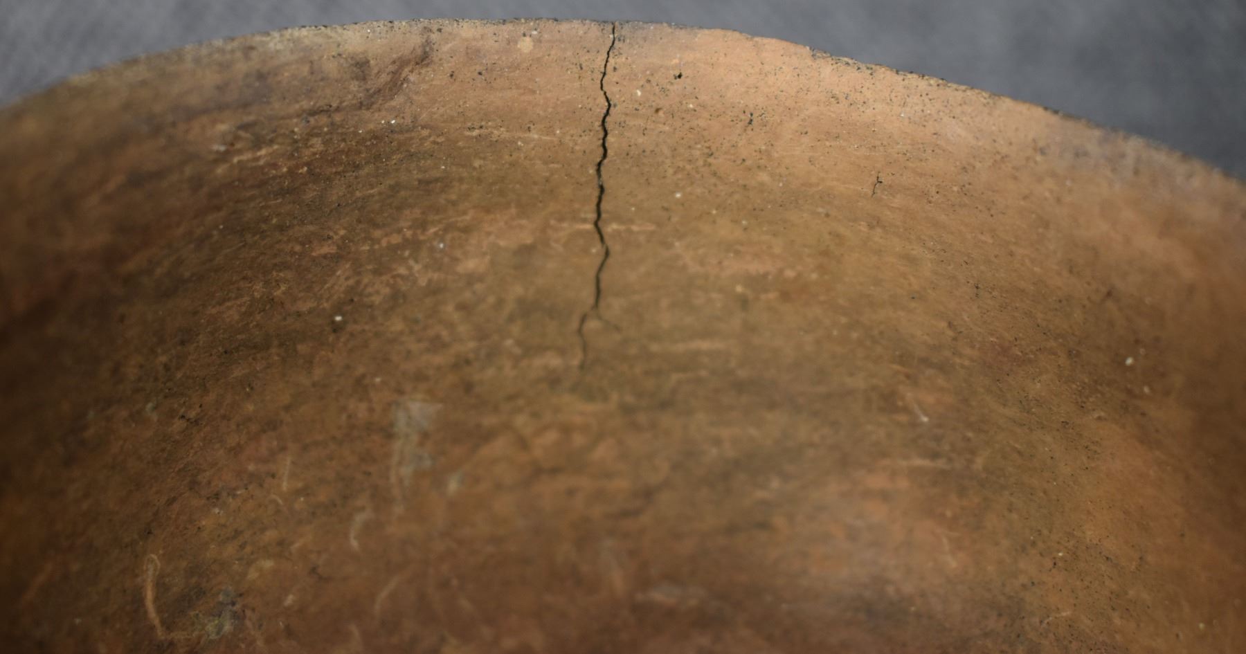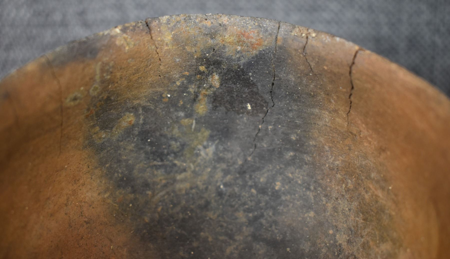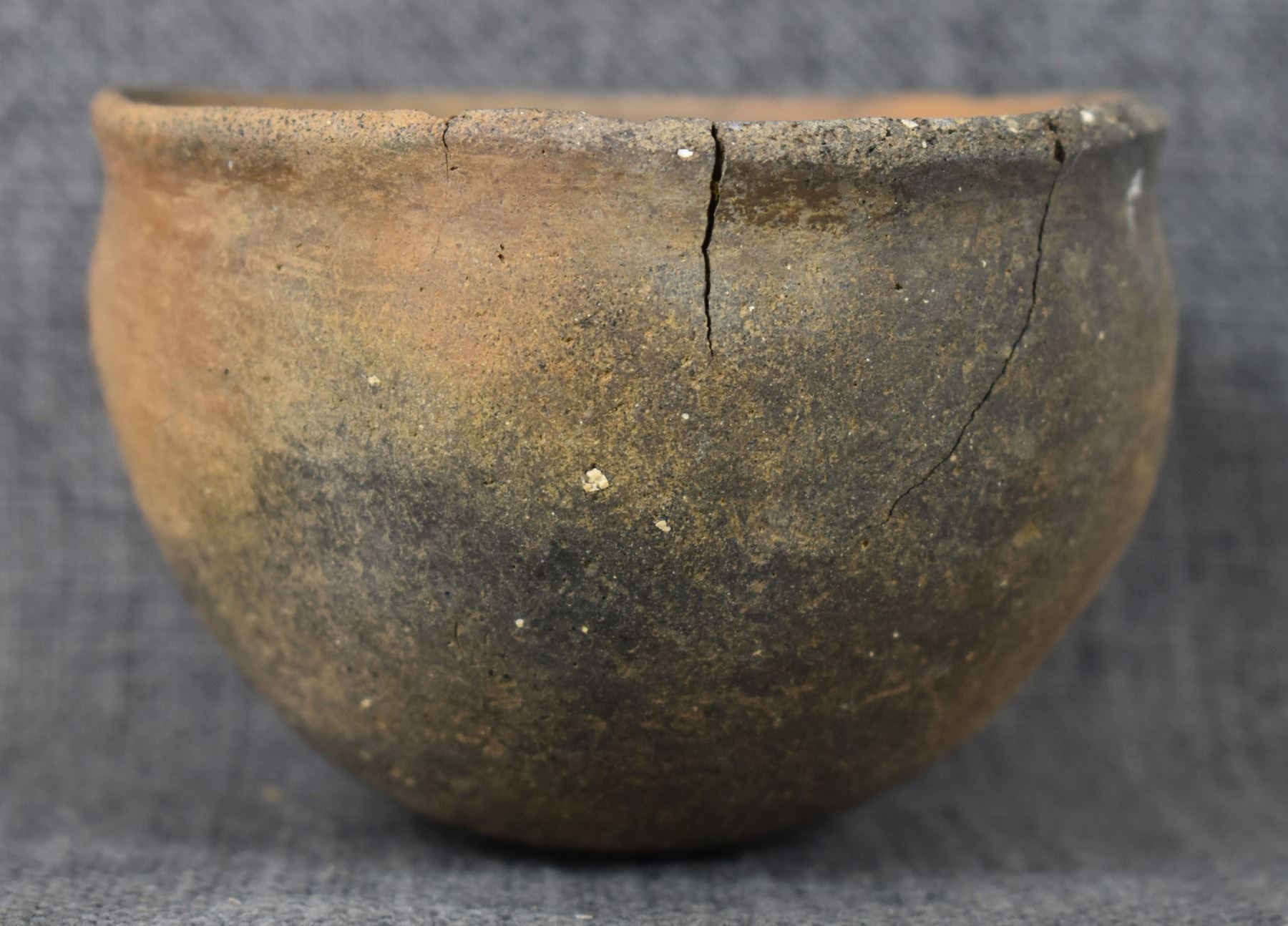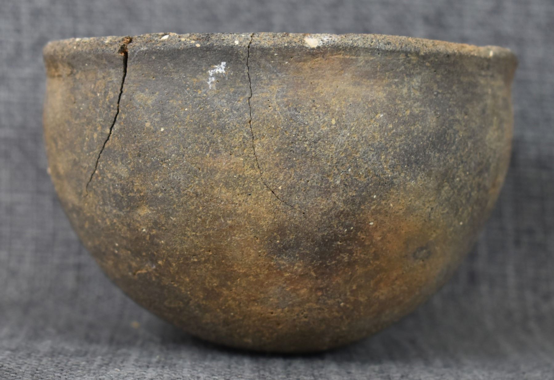 prehistoric Salado, hand coiled plain ware, 3" x 4" as found has cracks