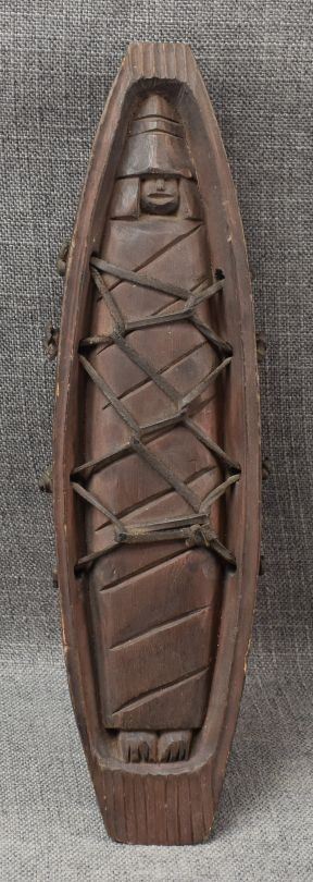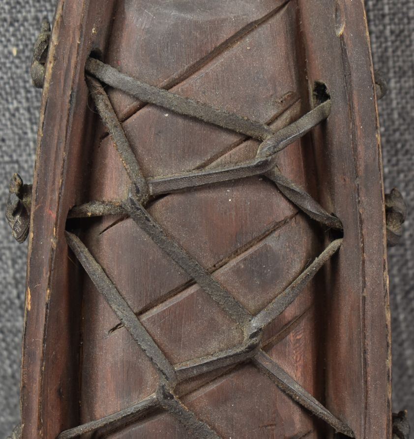 20th century Salish, hand carved wood with leather lacing 15" x 4" x 1.5"