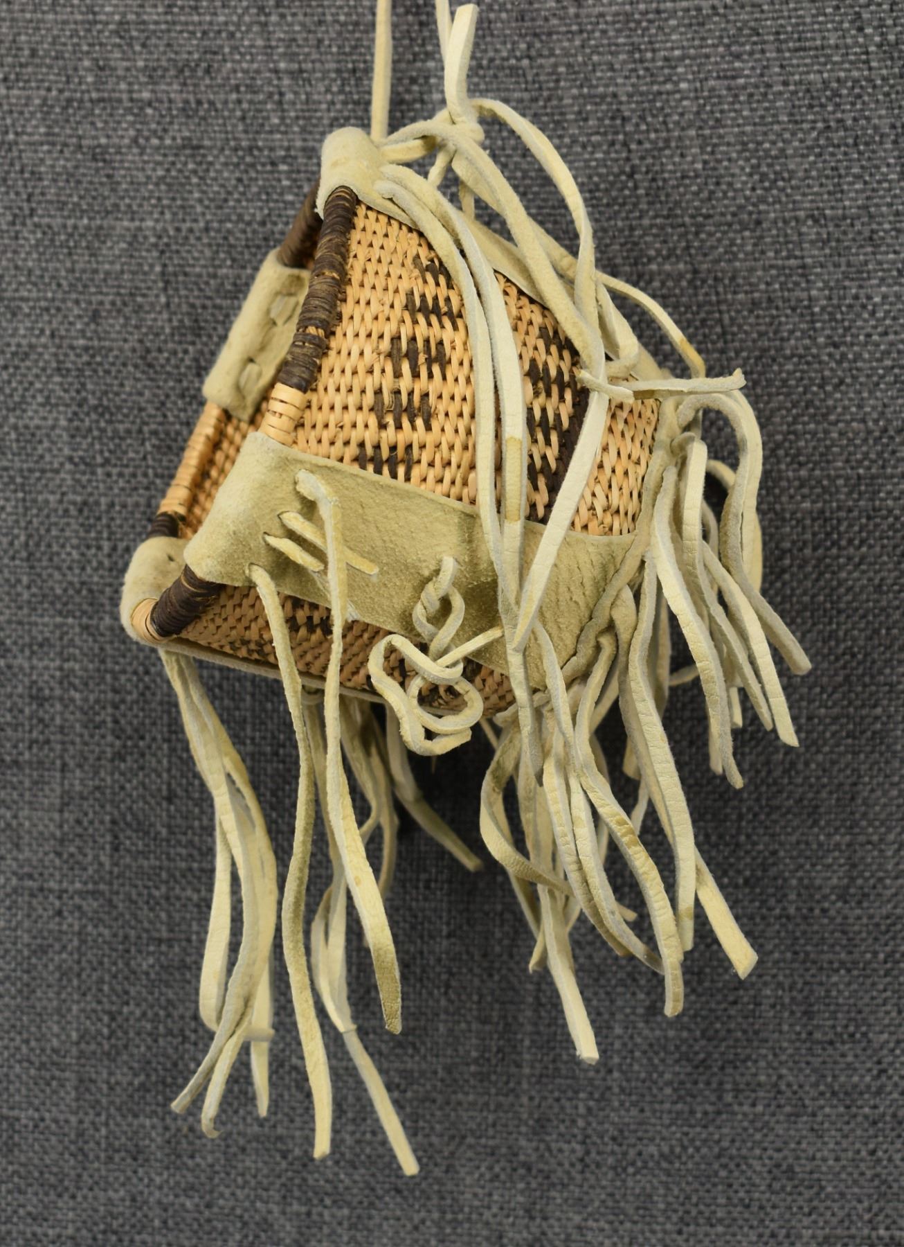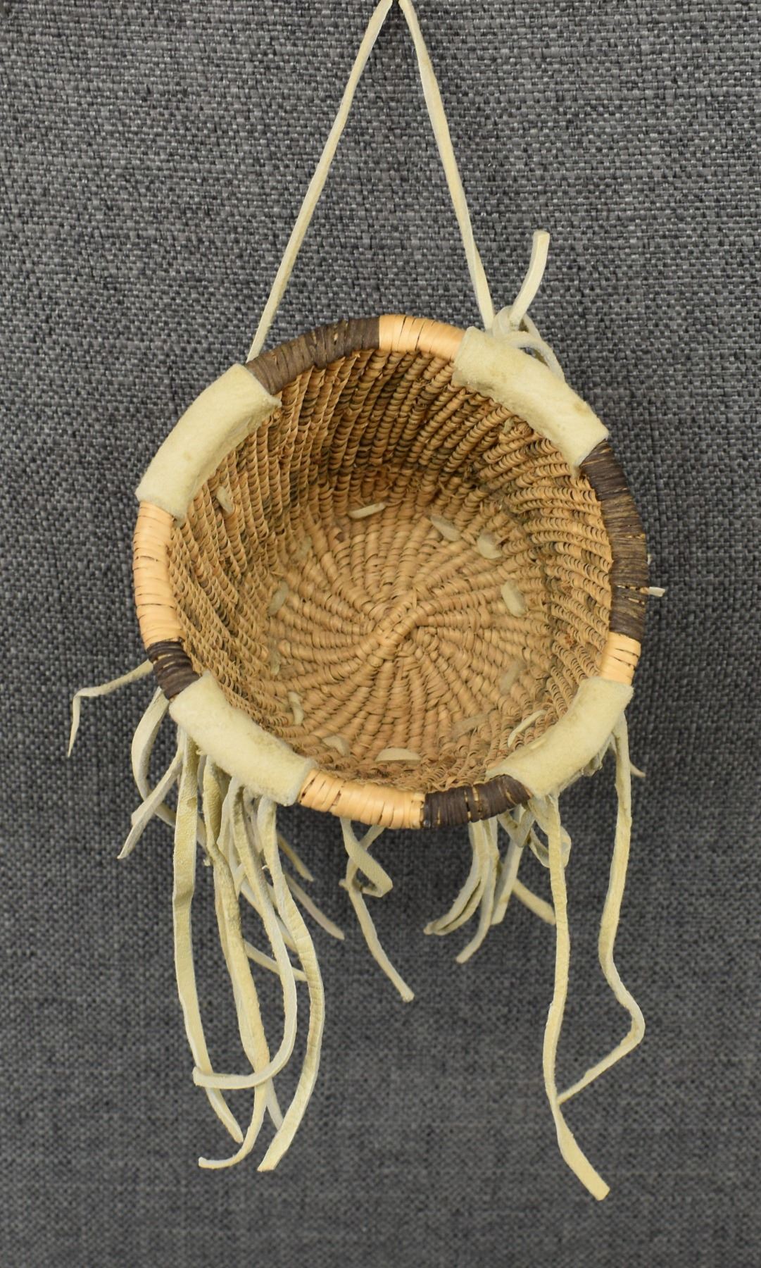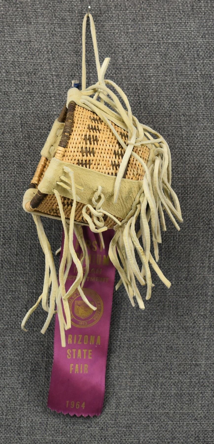 1960's San Carlos Apache. Hand woven burden basket by Charlotte Cassadore. 5'' x 4''