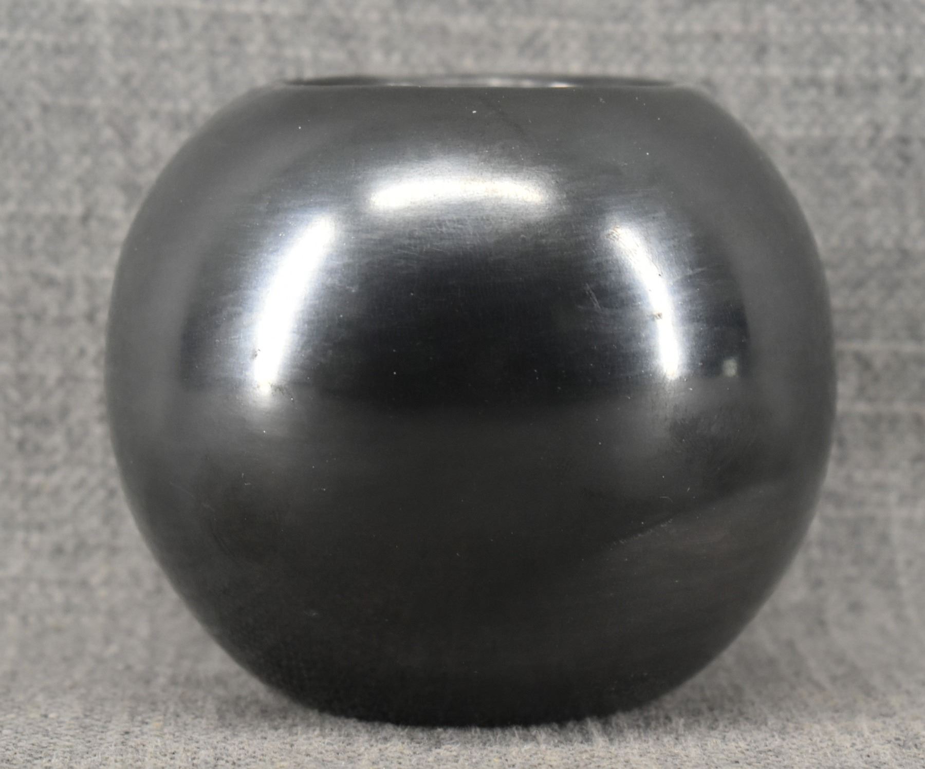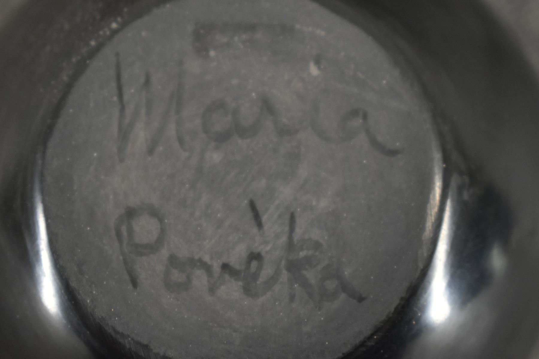 1950's San Ildefonso, hand coiled with polished design signed Maria Poveka, 3.5" x 4"
