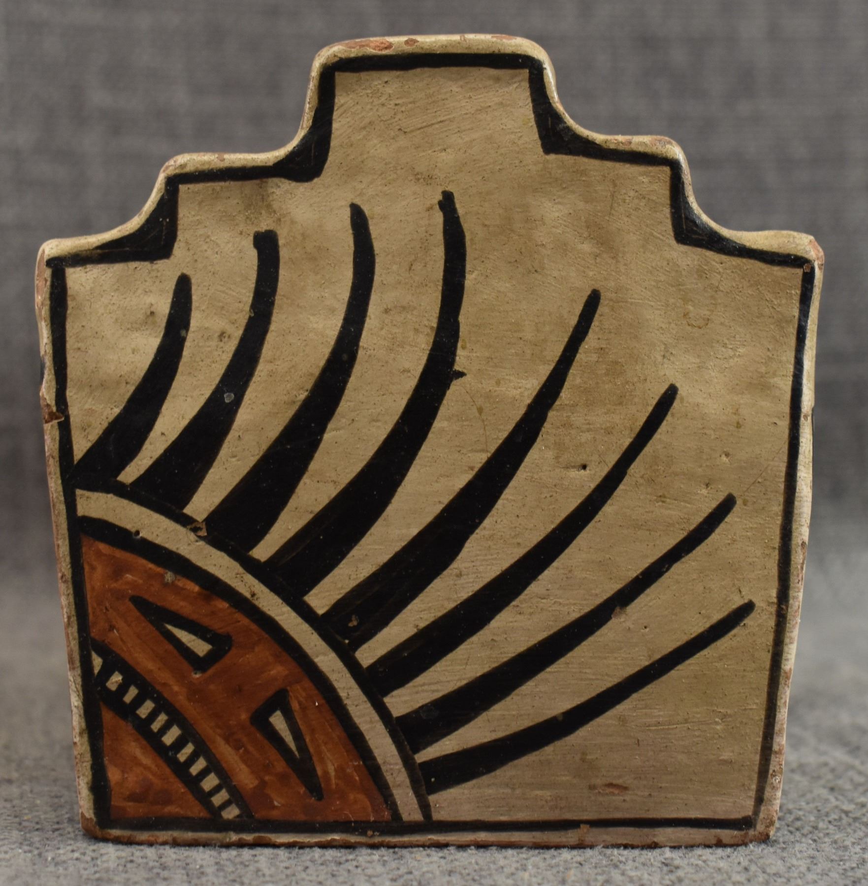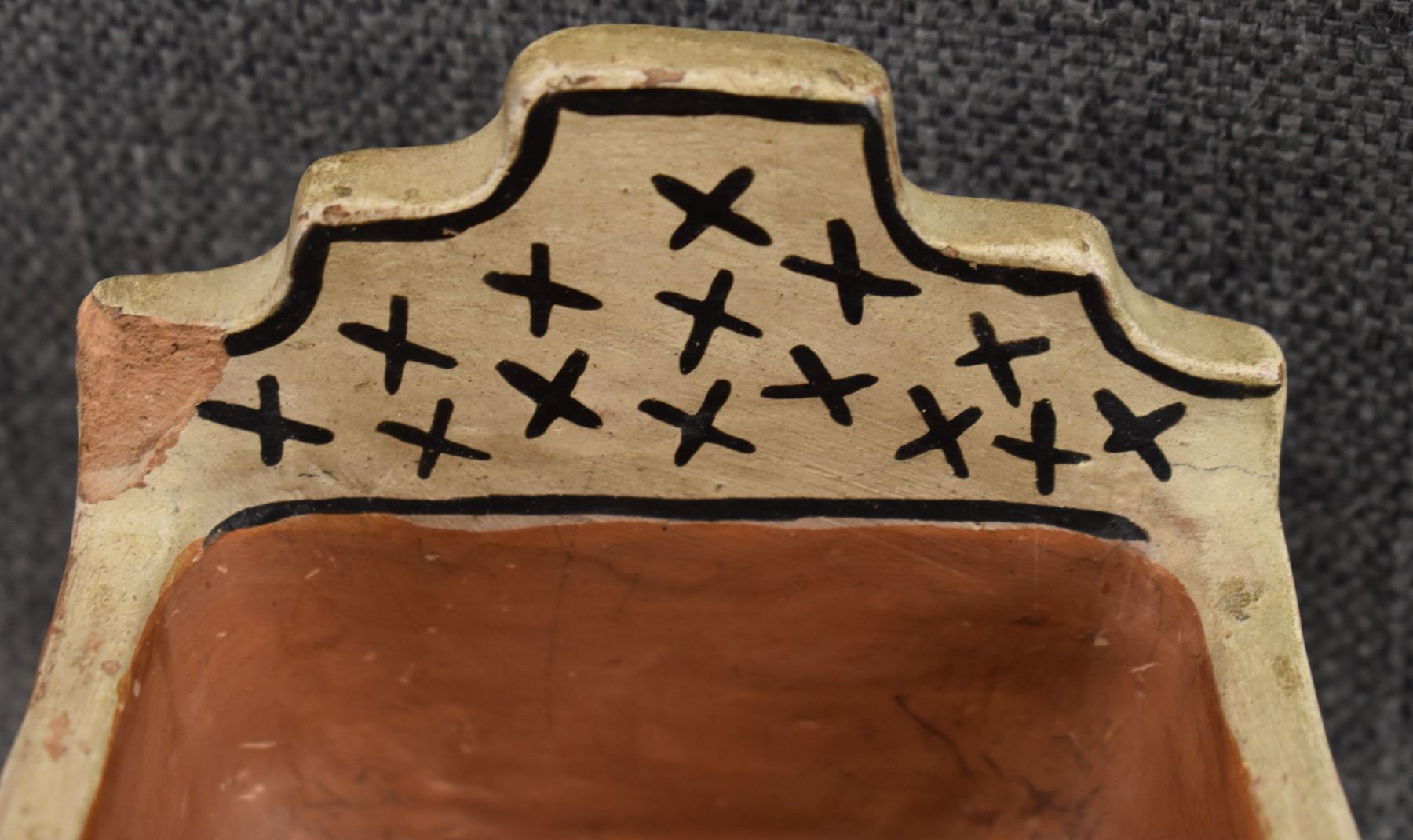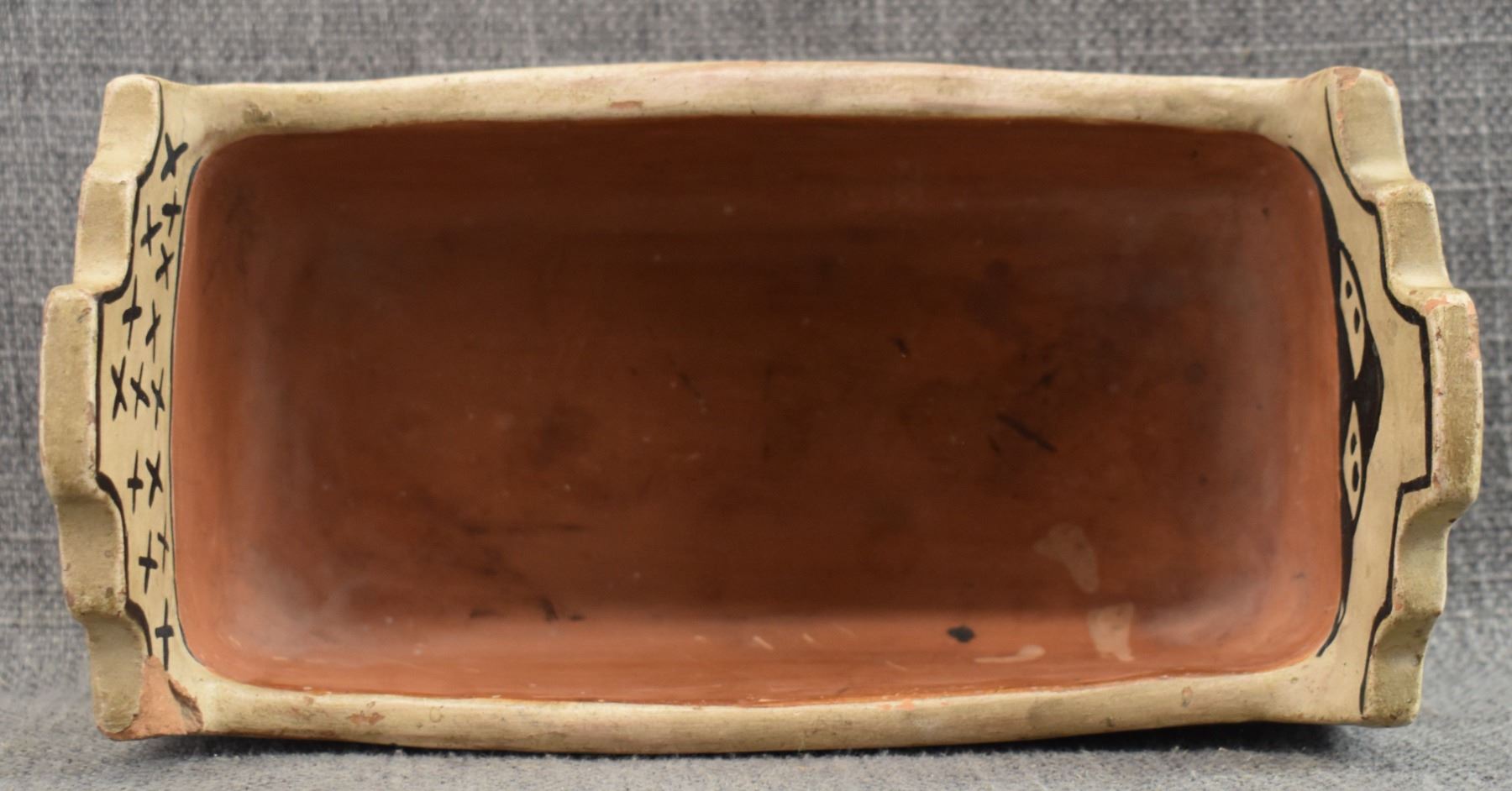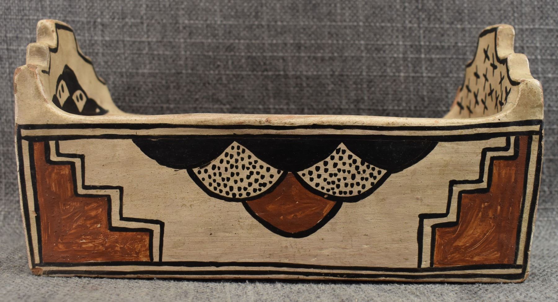 1920's San Ildefonso. Hand coiled and painted polychrome design pottery box. attributed to Marie & Julian Martinez. 4.5'' x 8'' x 4.25''