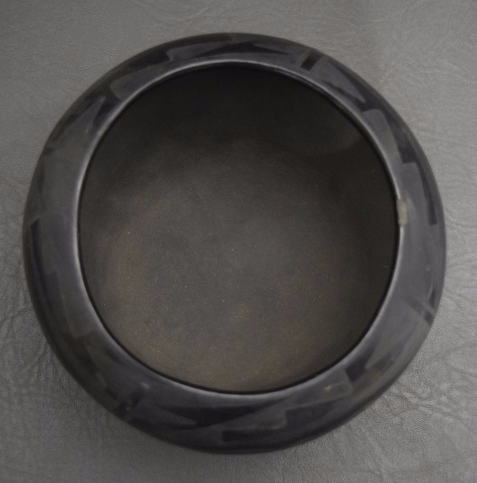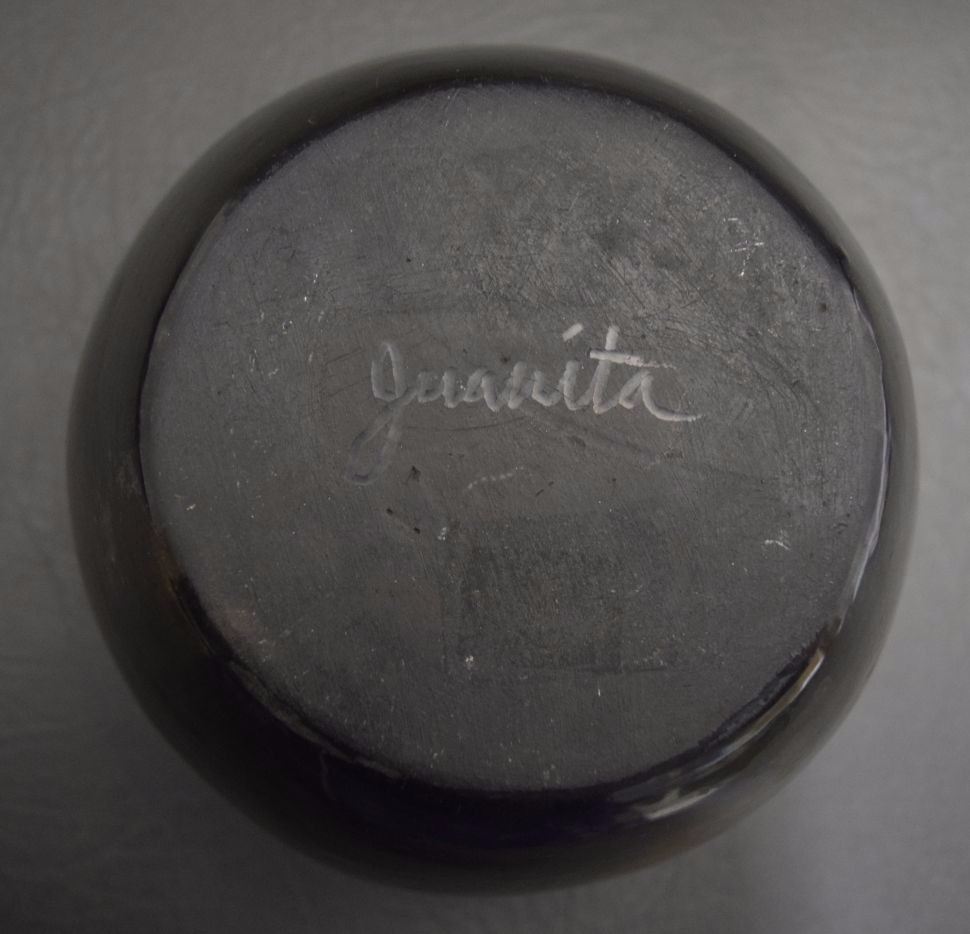 1940's hand painted matt on black design has surface rubs and rim chip, signed Juanita, 4'' x 6''