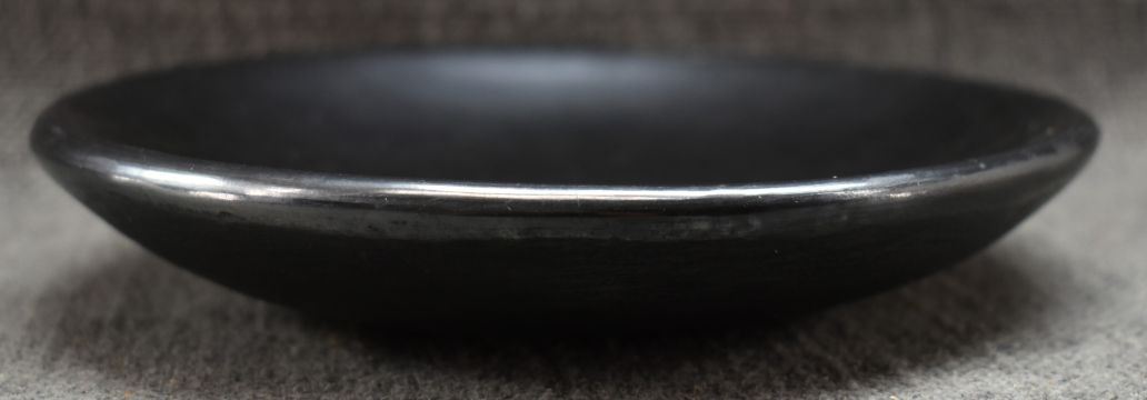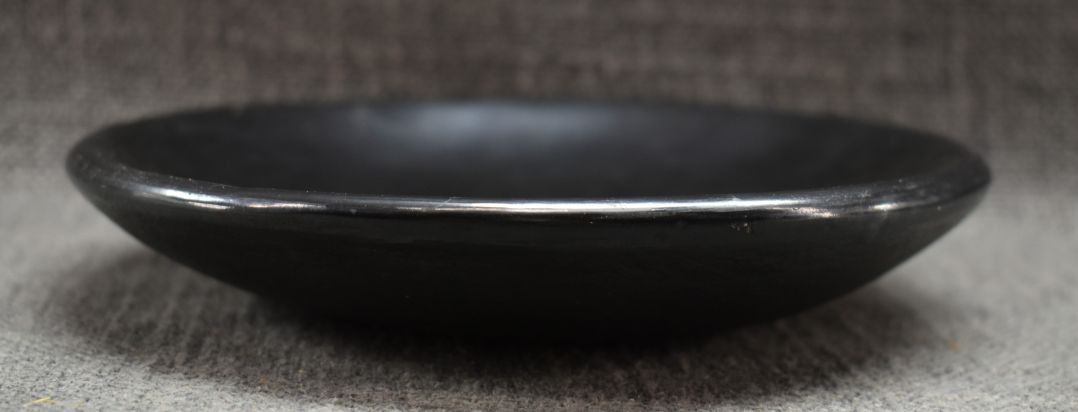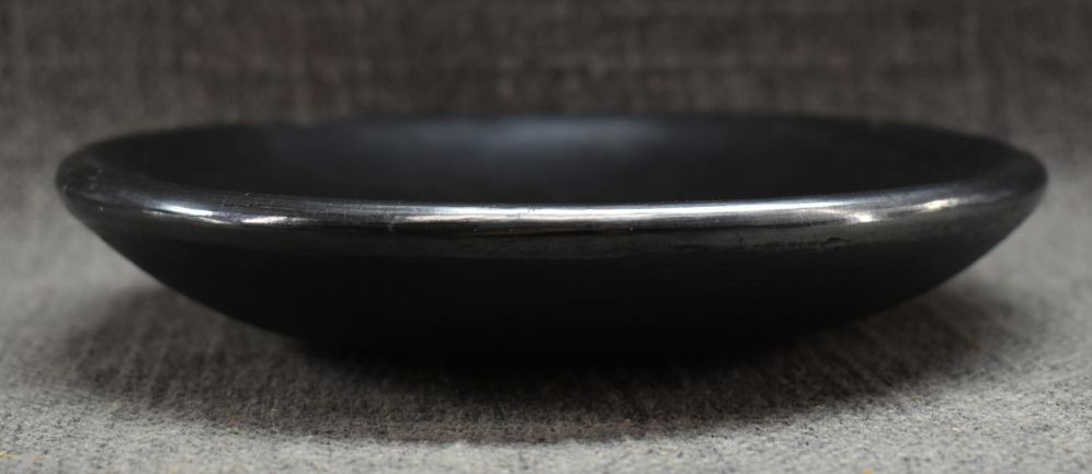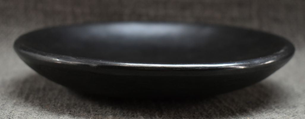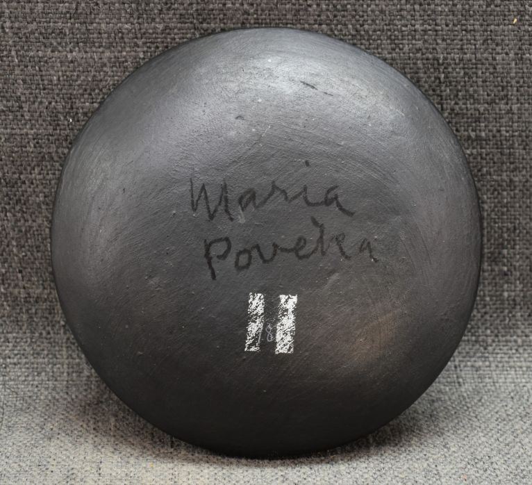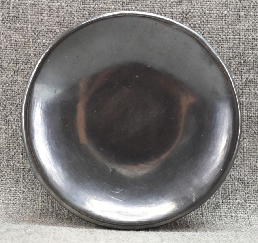 1960's San Ildefonso, hand coiled and polished design pottery plate signed Maria Poveka. 1'' x 6''
