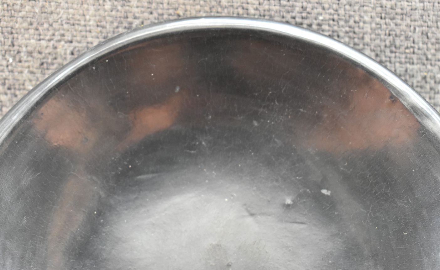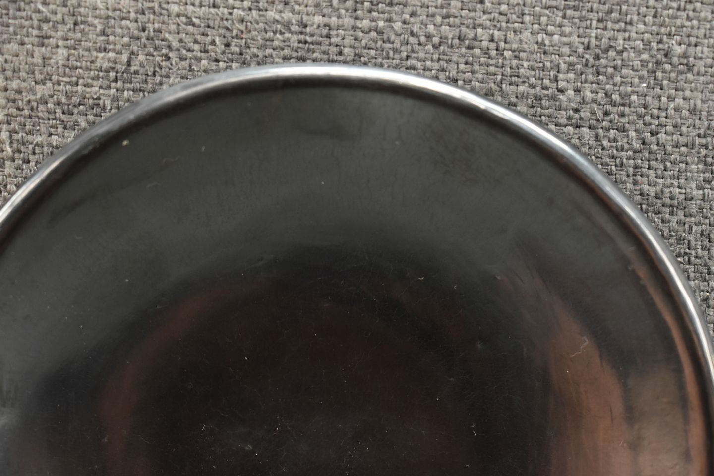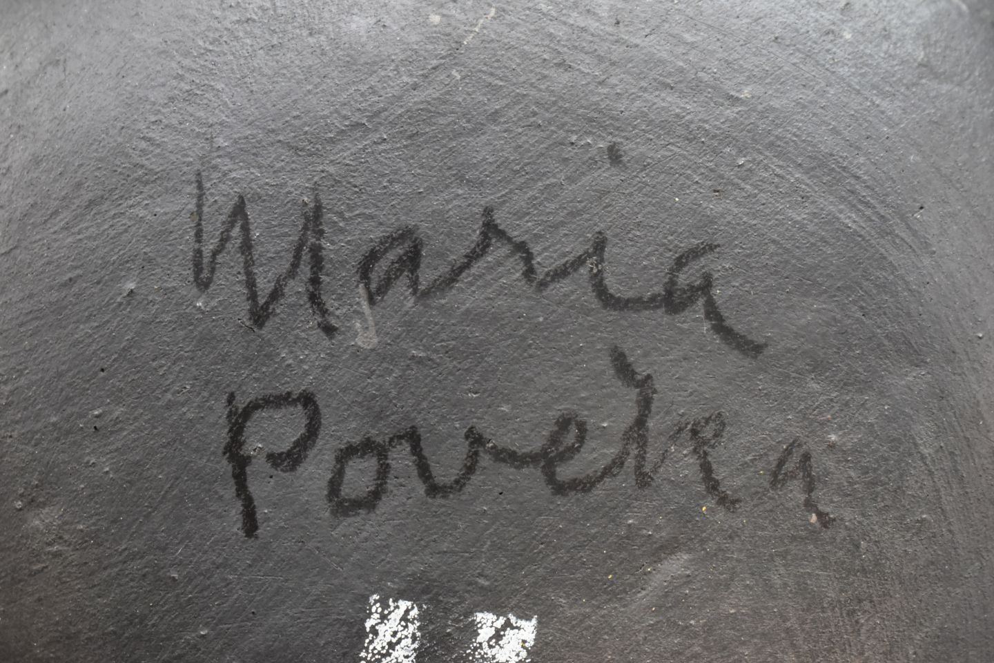 1960's San Ildefonso, hand coiled and polished design pottery plate signed Maria Poveka. 1'' x 6''