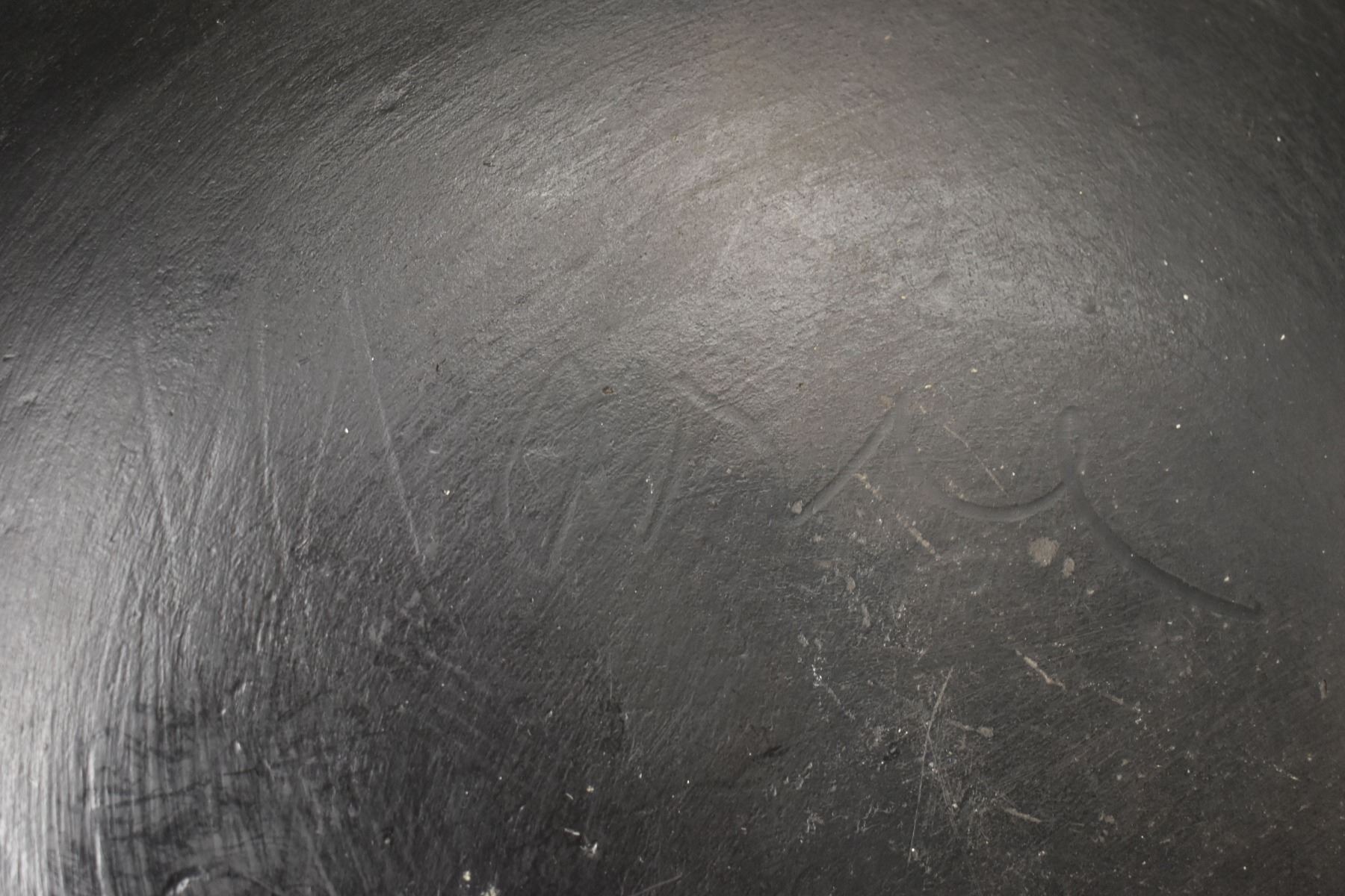 1930-40s San Ildefonso, hand coiled with matte on black painted feather design signed Marie and Julian 16" diameter