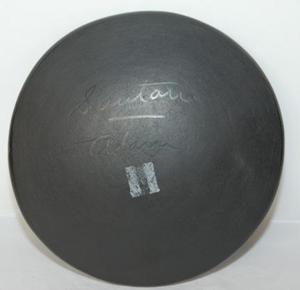 ca. 1960’S matte on black feather design, signed Santana & Adam, both artist deceased 6.75” dia.