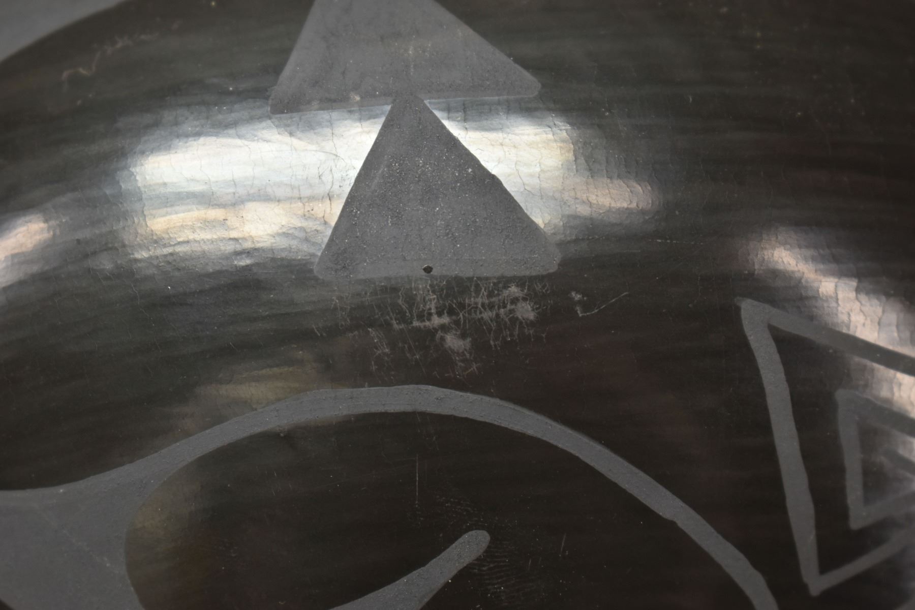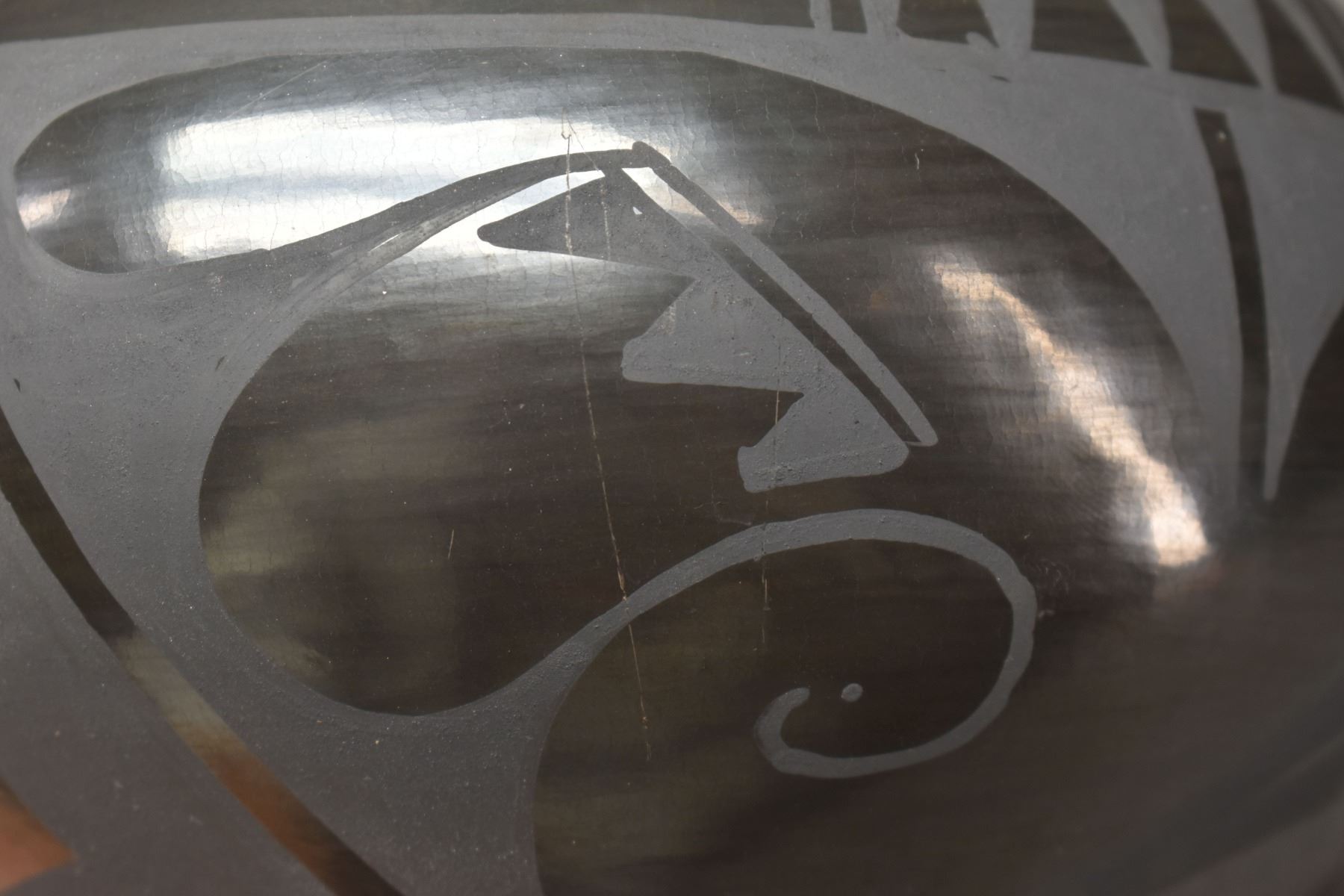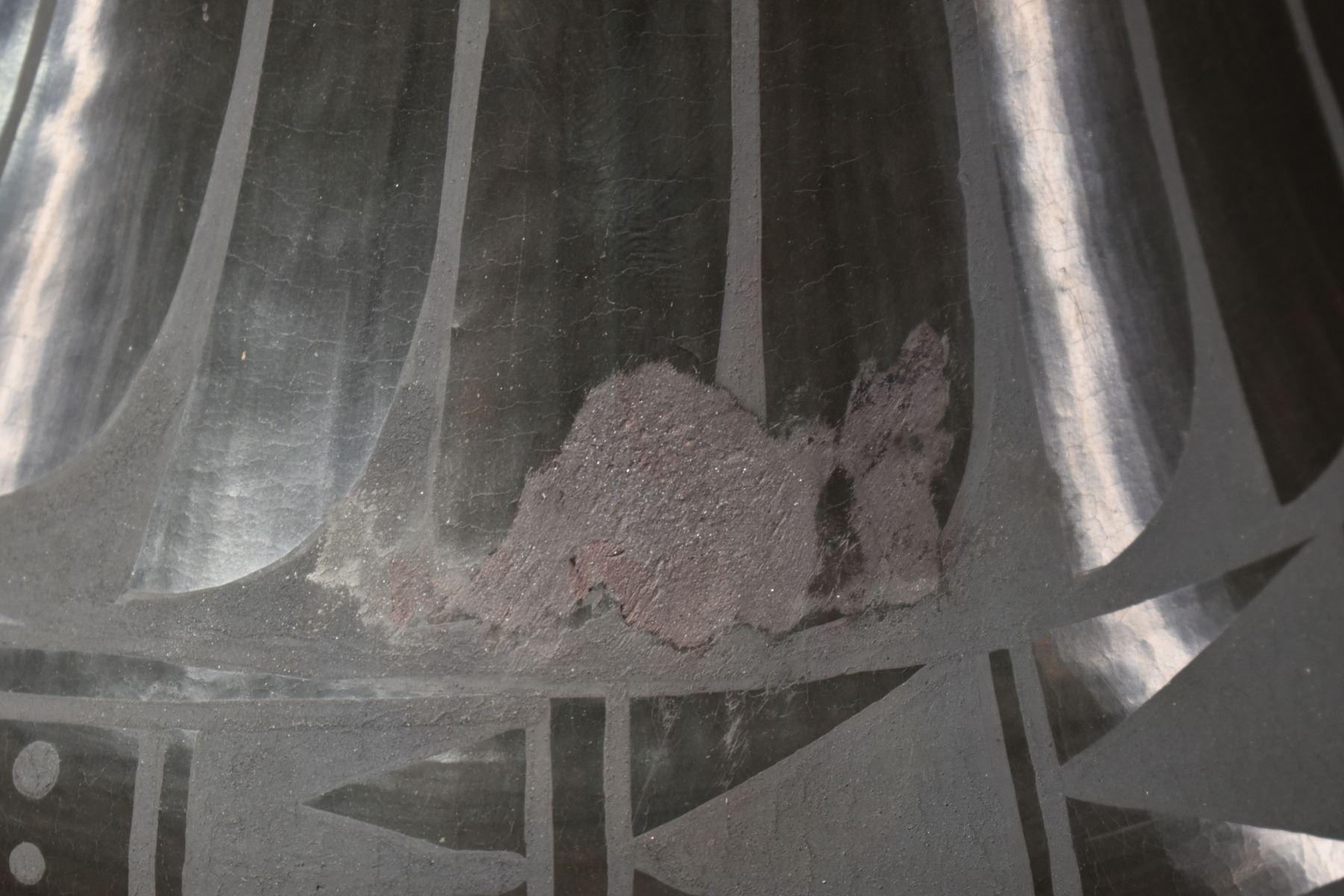 1970's San Ildefonso, hand coiled and painted Matt on black design signed Carmelita Dunlap, 9'' x 8'' has surface rubs