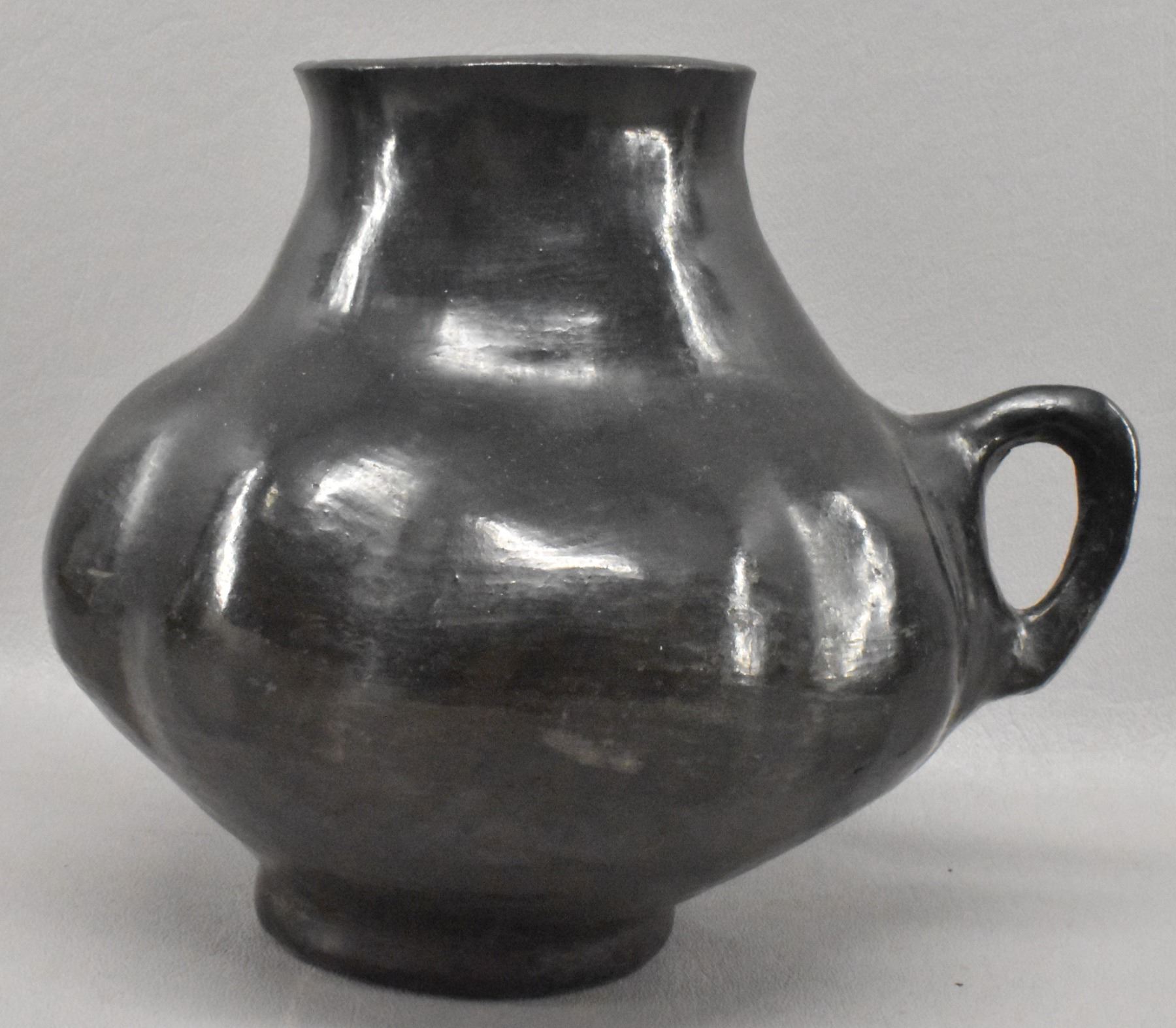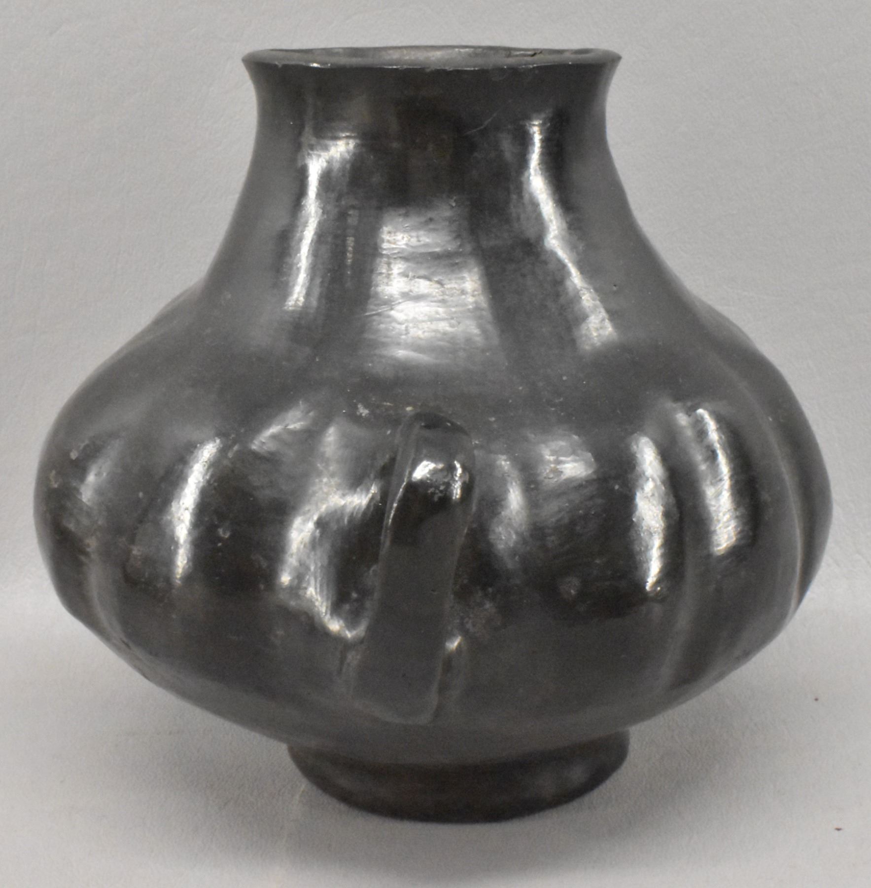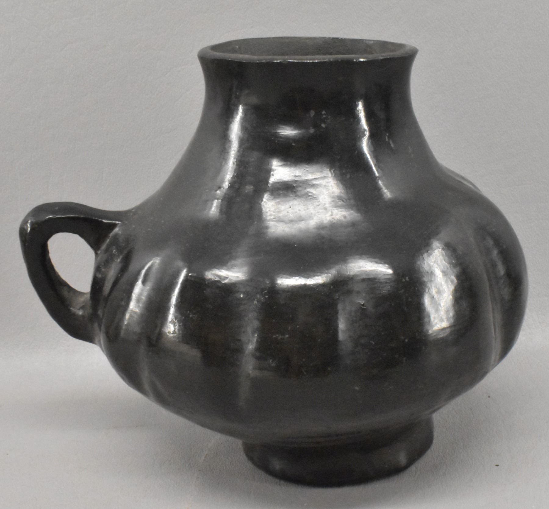 1930's San Juan Indian. Hand coiled melon design pottery pitcher.5.75'' x 7'' x 6''