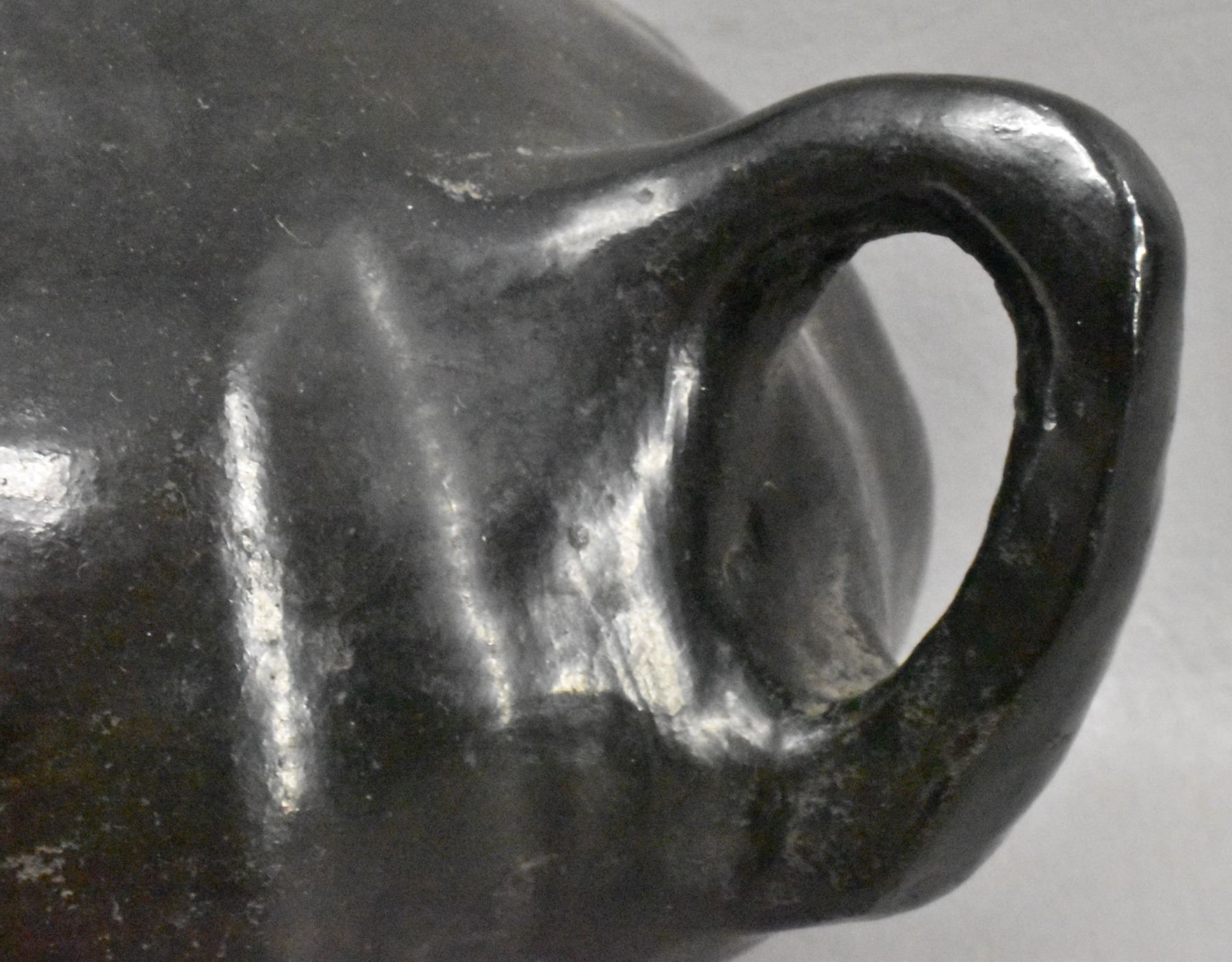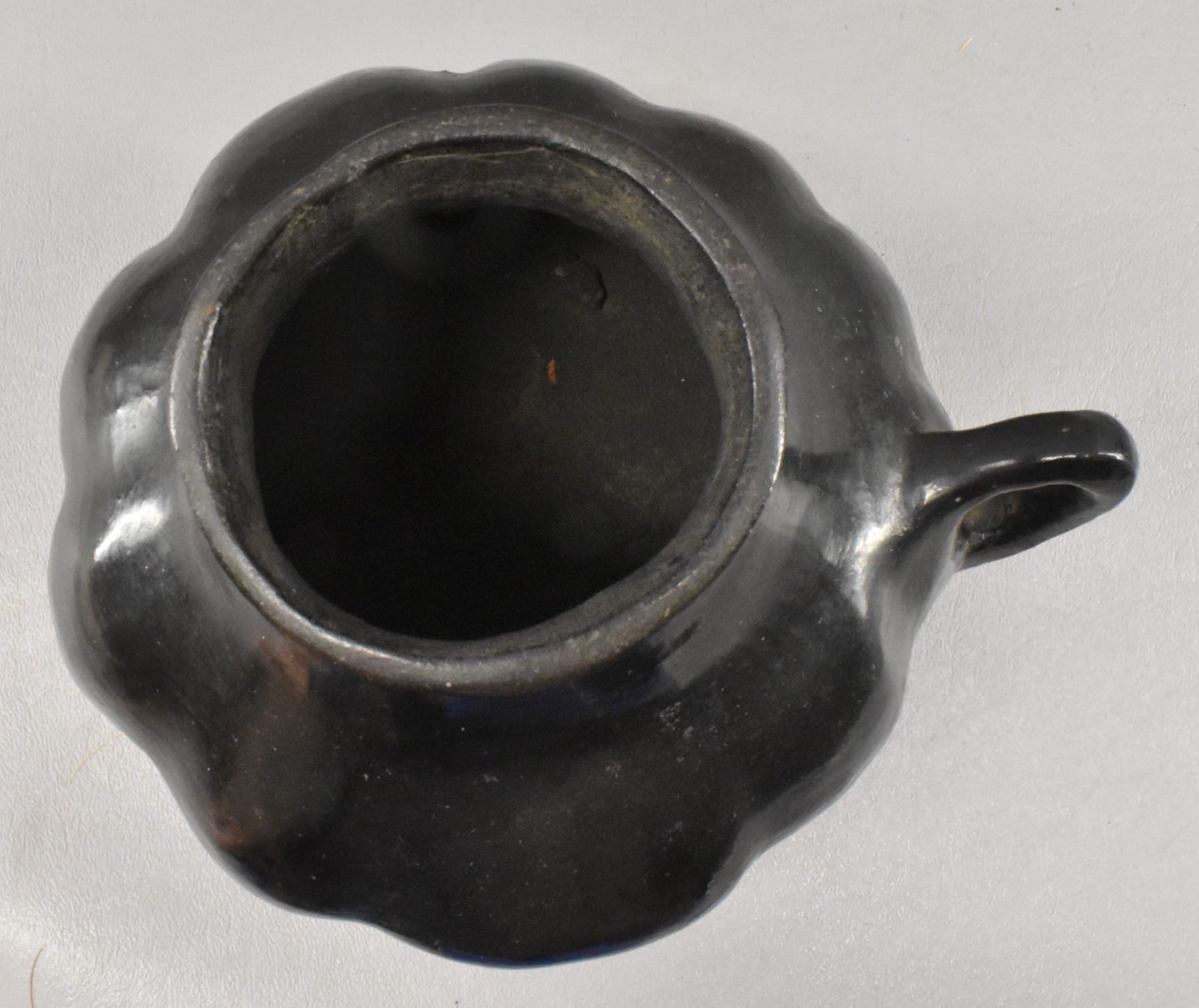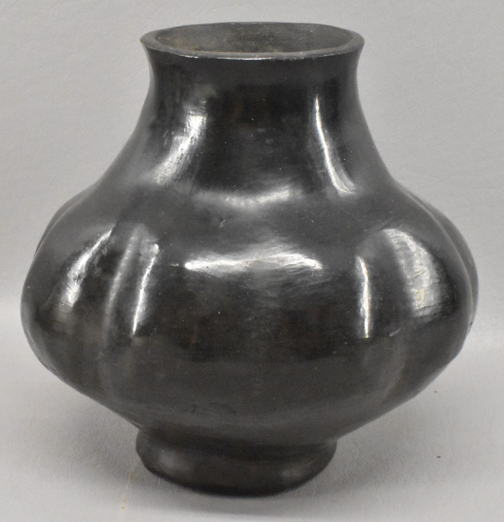 1930's San Juan Indian. Hand coiled melon design pottery pitcher.5.75'' x 7'' x 6''