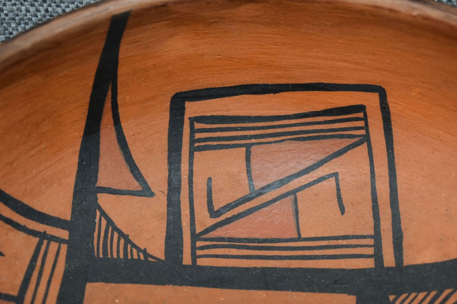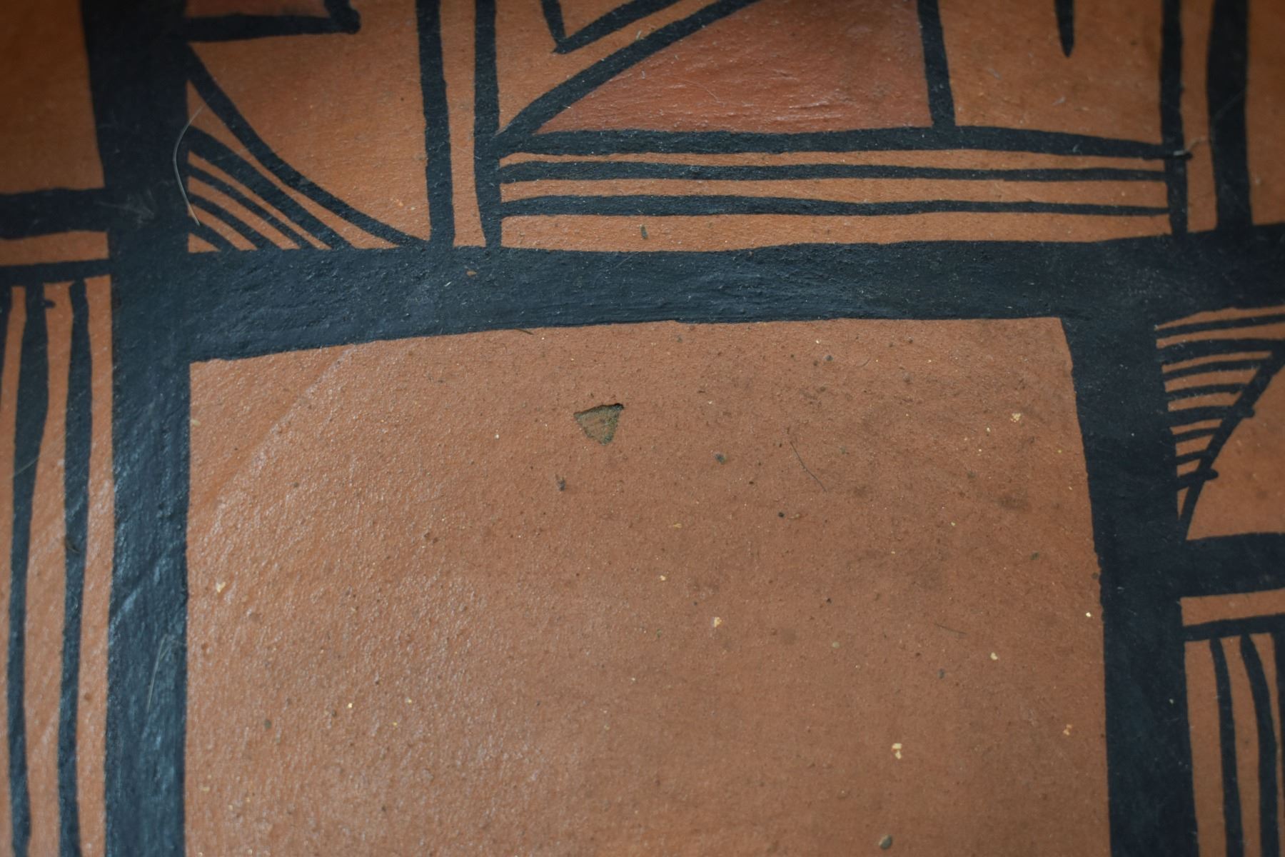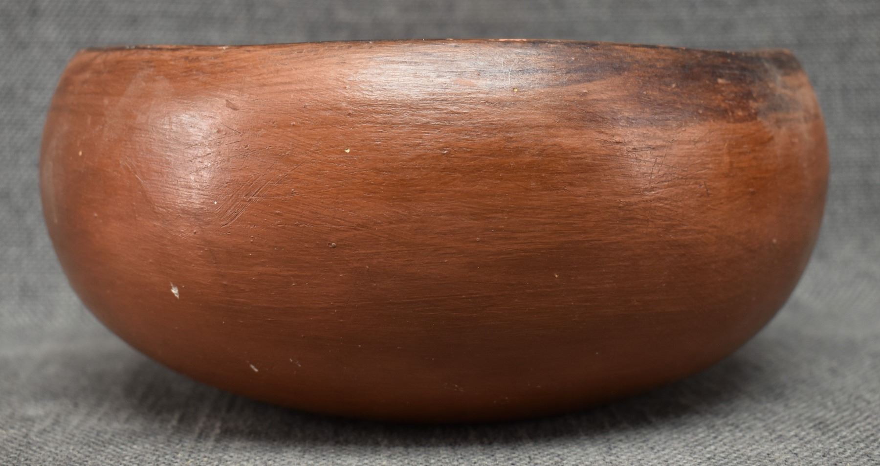 1960's San Juan. Hand coiled an painted design pottery bowl. Signed Fidel. 3.5'' x 8''