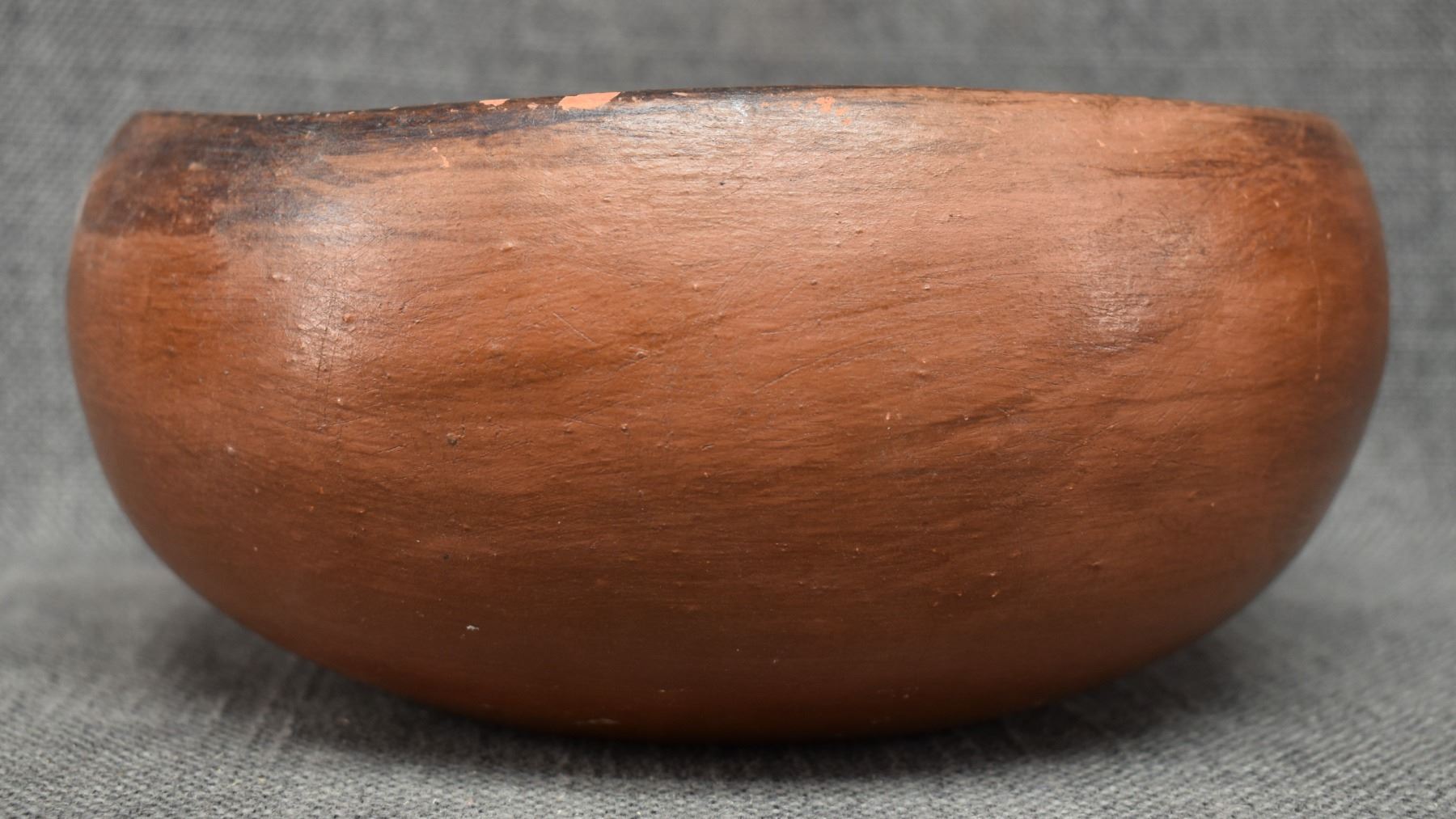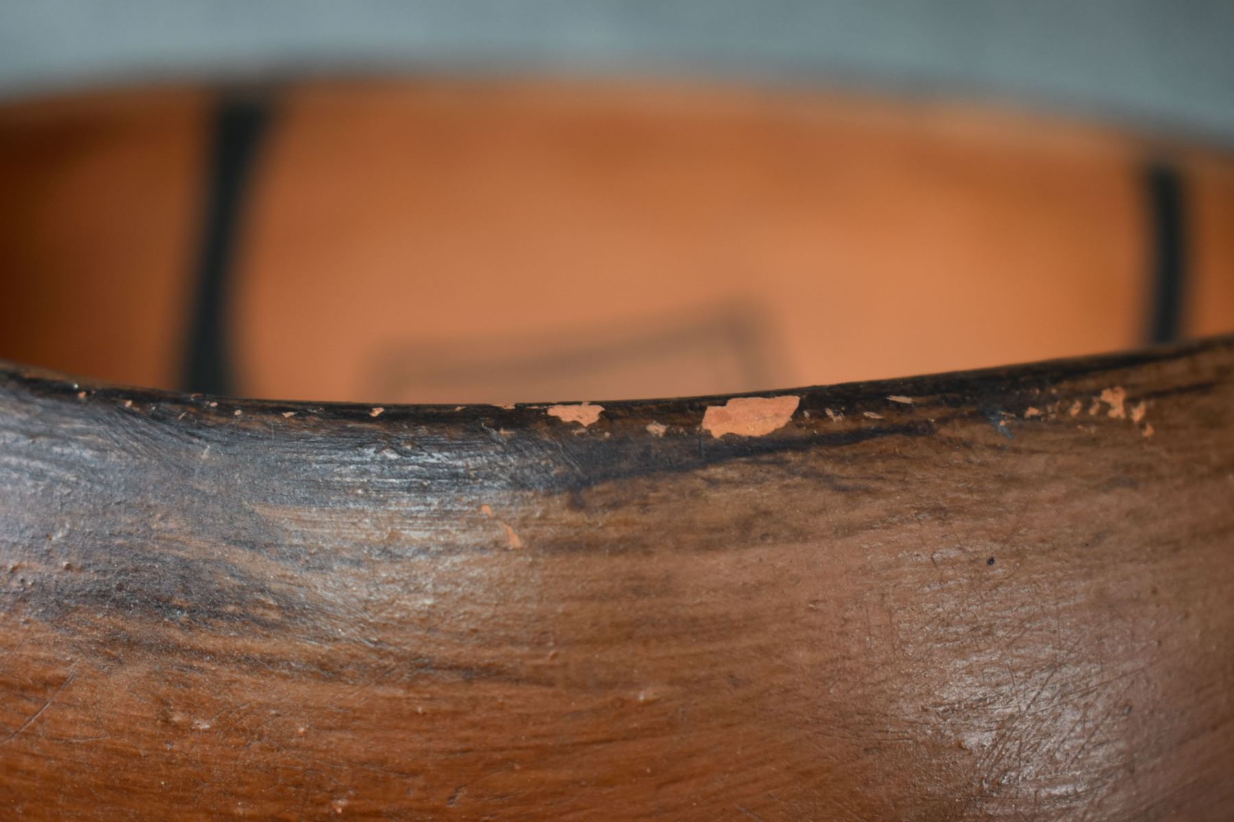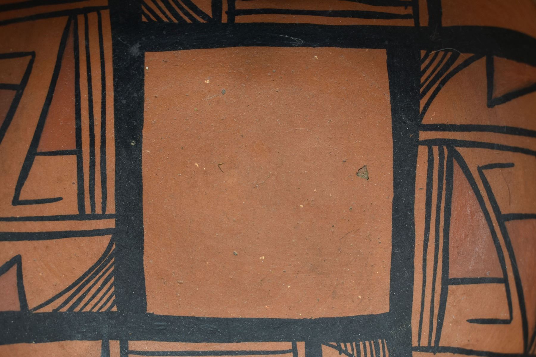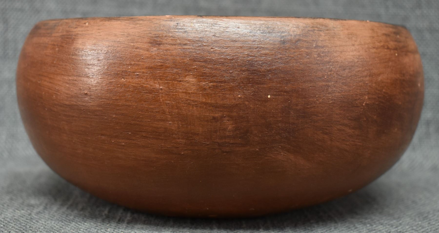 1960's San Juan. Hand coiled an painted design pottery bowl. Signed Fidel. 3.5'' x 8''