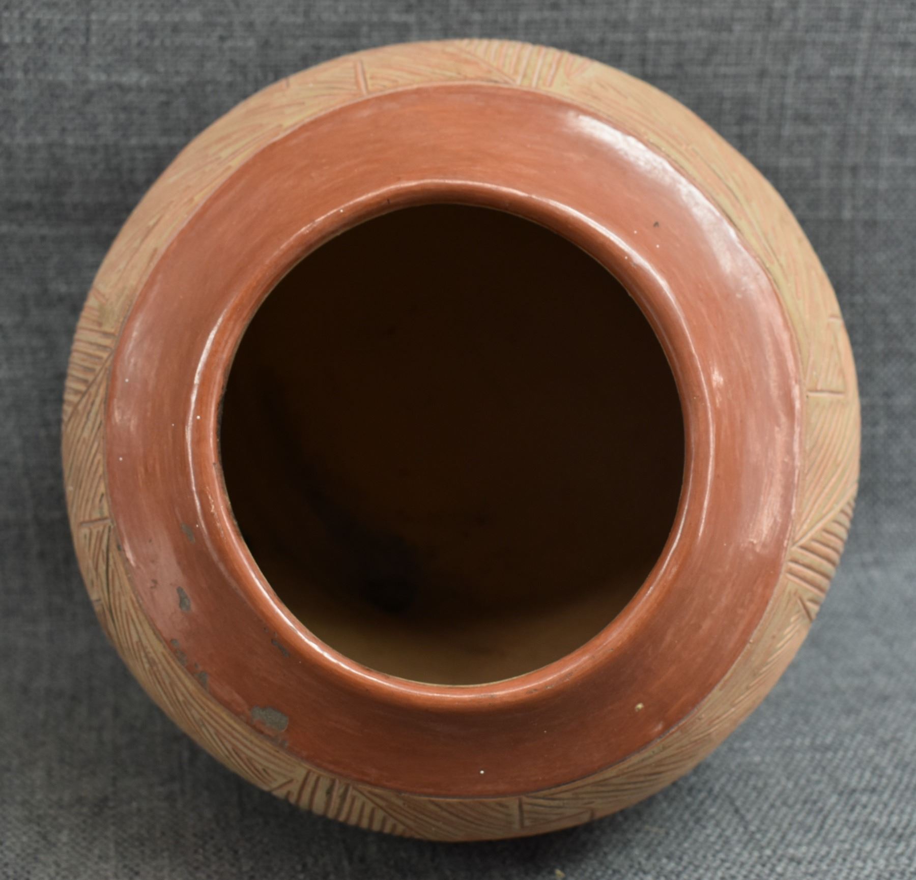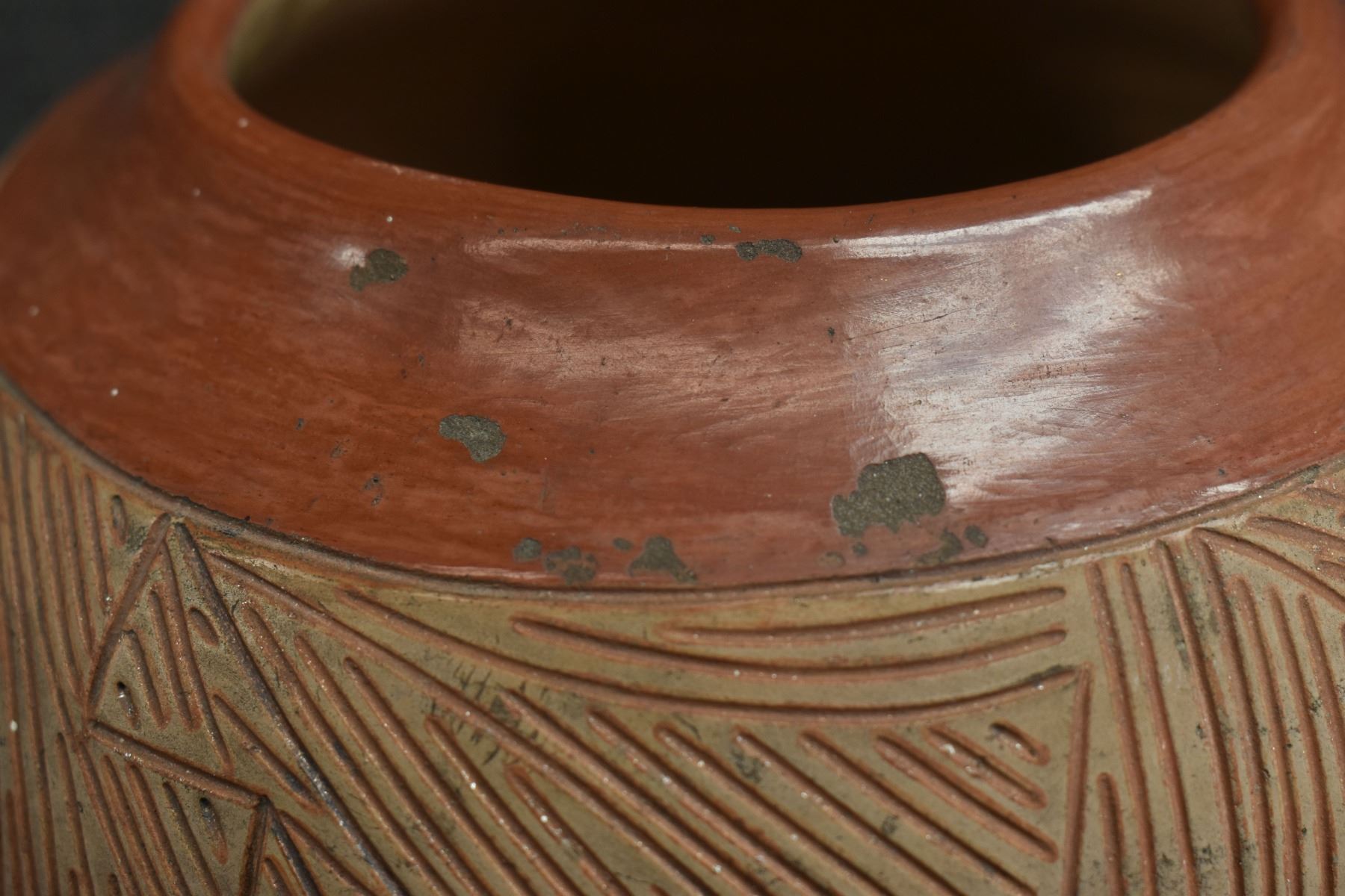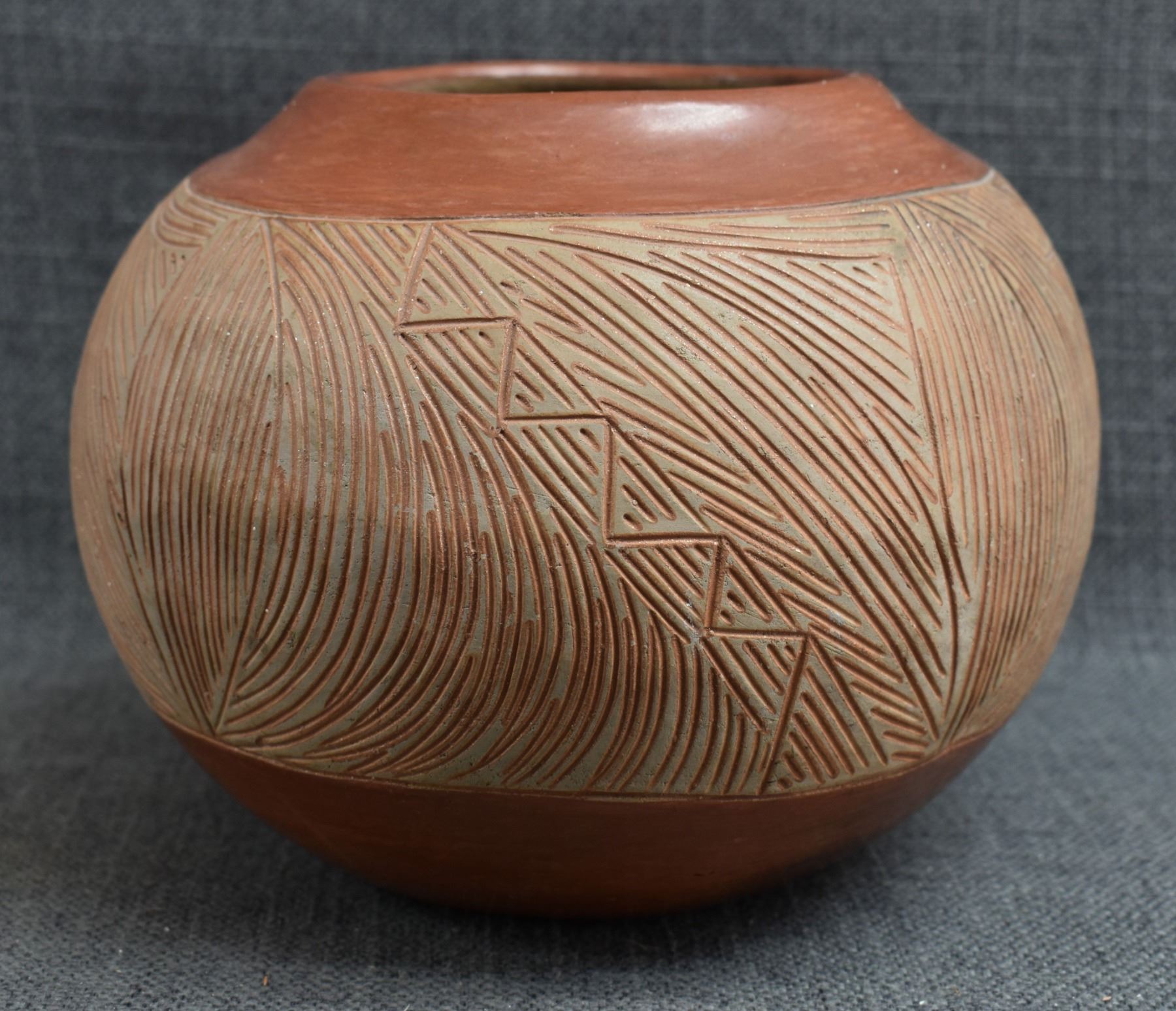 1960-70's San Juan, hand coiled with carved and polished design by Tomasita Montoya 6" x 7.25"