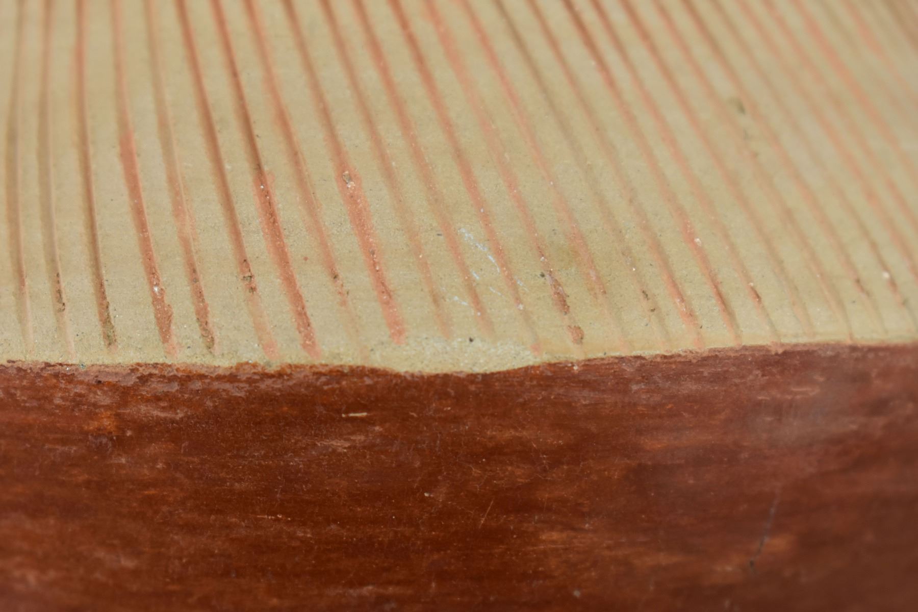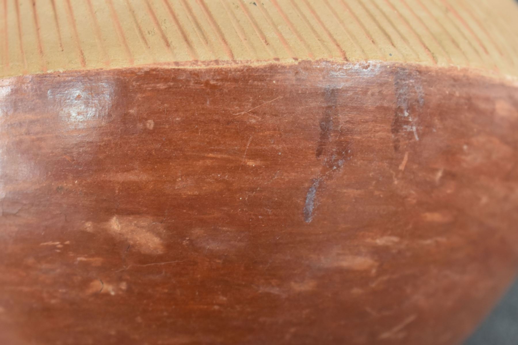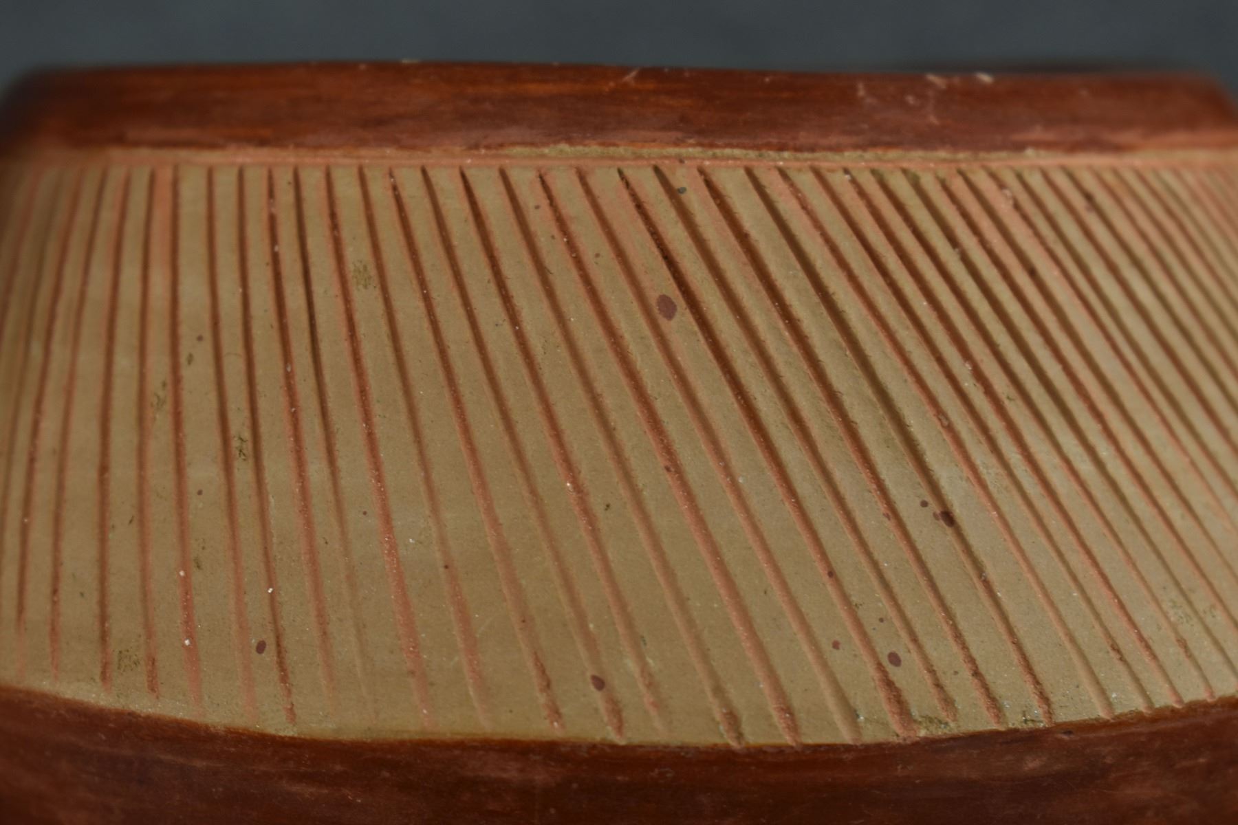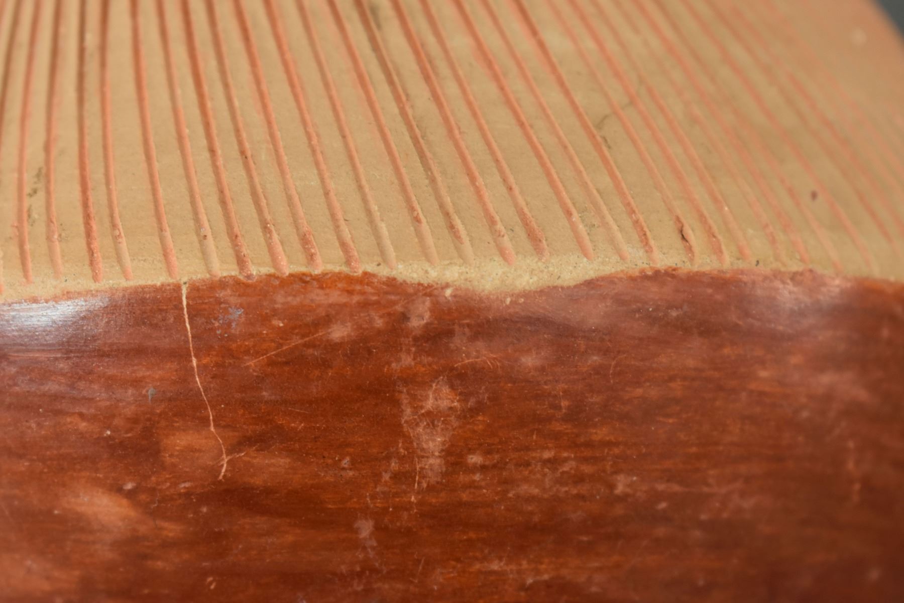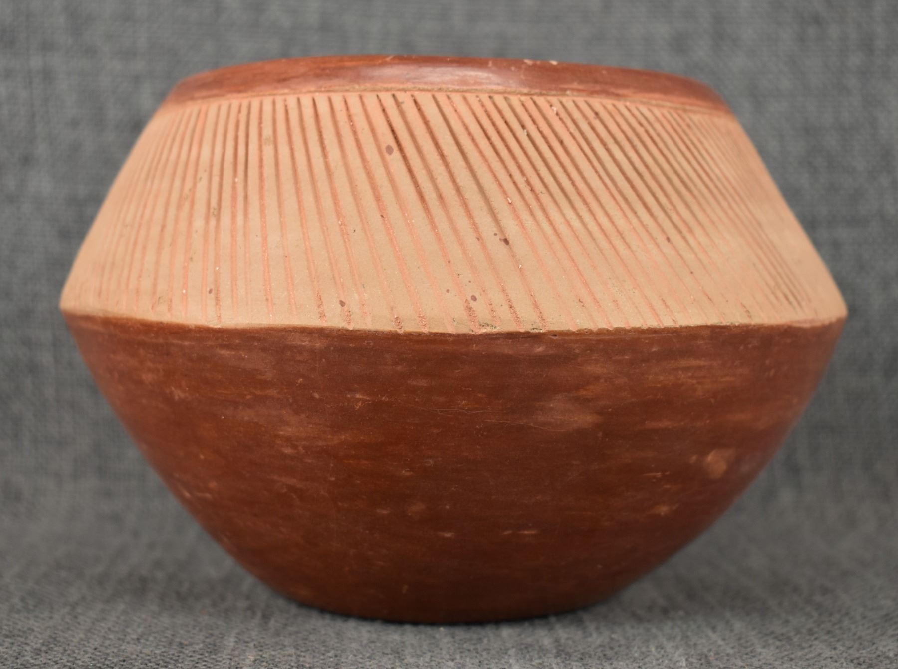 1950's San Juan, hand coiled with polished and carved design by Tomasita Montoya, 4.75" x 7".
