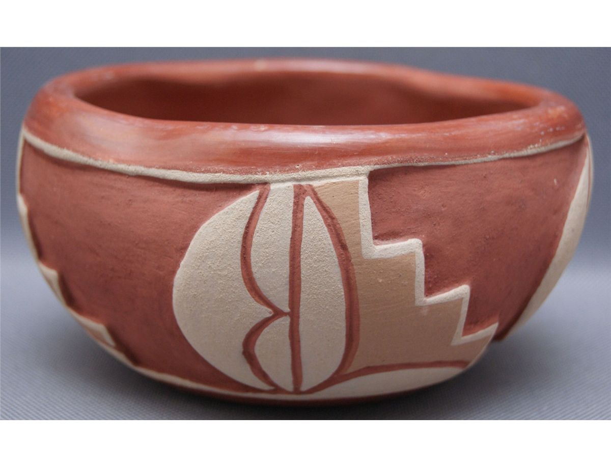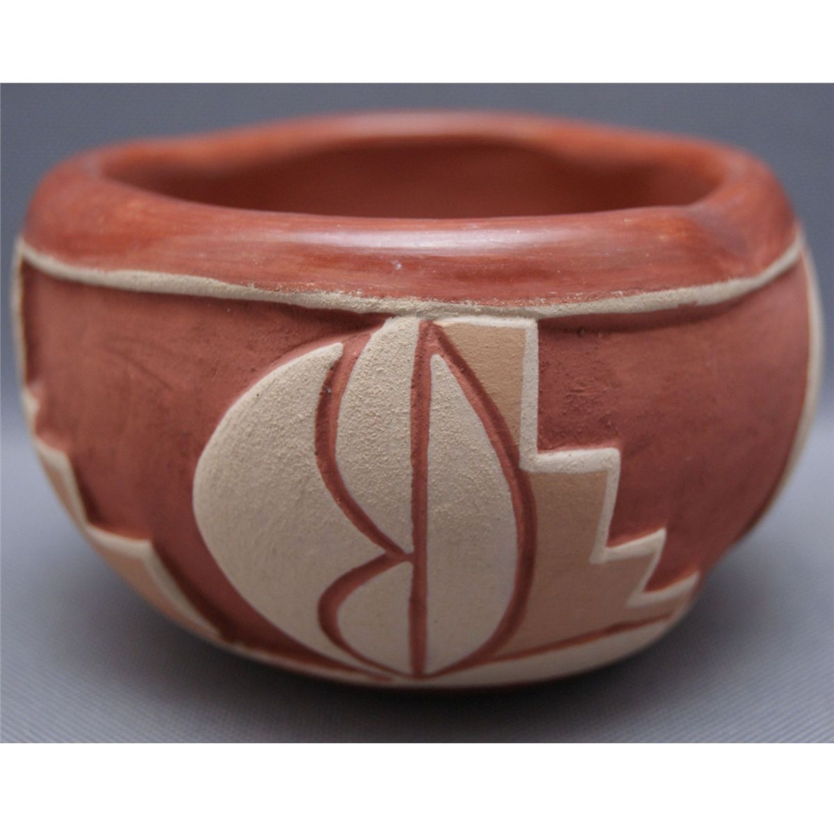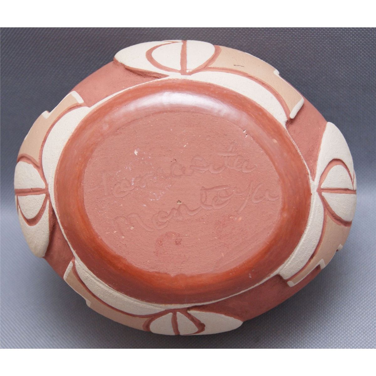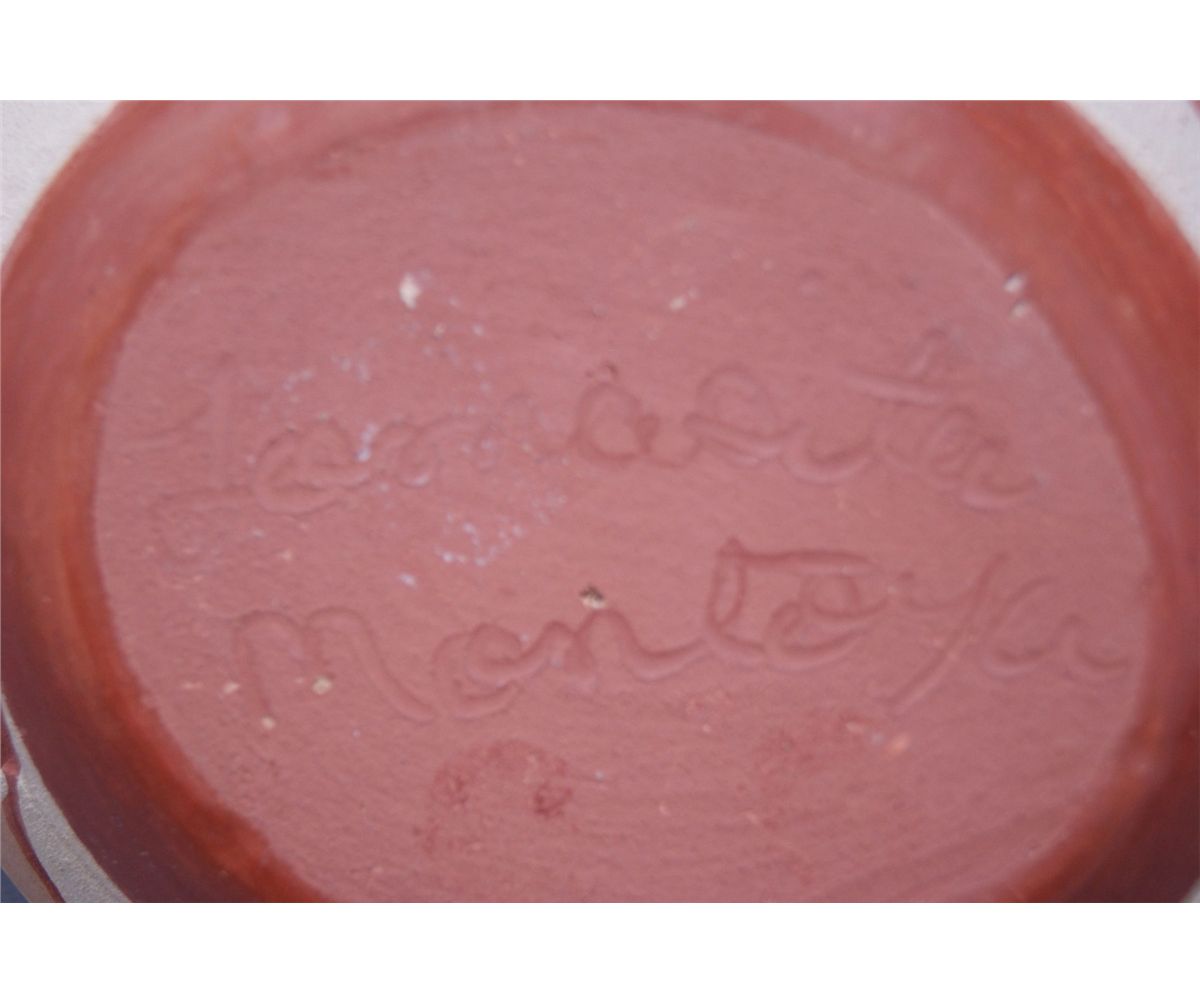 1980s 90s carved and painted design signed Lomasita Montoya, 2.75" x 4.25" x 5.25